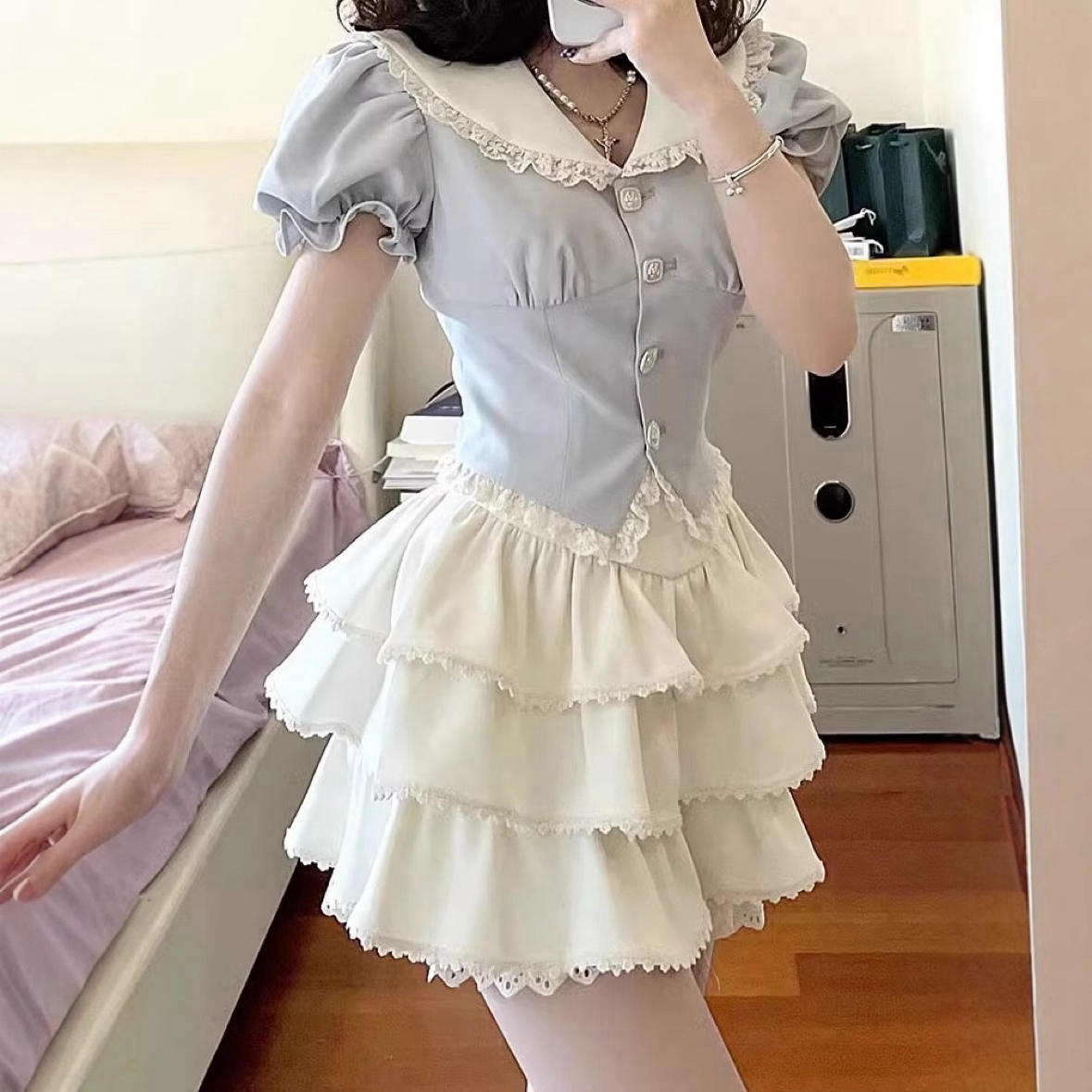 ✨ 是谁把巴黎学院的浪漫穿在身上了? ——立体海军领+泡泡袖设计 瞬间解锁贵族少女感 蛋糕裙摆层层绽开 每一步都踩在甜度爆表的节奏上! 🍰「显瘦心机三连」: ✅ 收腰剪裁掐出蚂蚁腰 ✅ 泡泡袖遮住拜拜肉 ✅ A字裙摆显腿长2米8 🎀 细节暴击: 珍珠纽扣透着轻奢感 100%纯棉刺绣领结 裙摆暗藏防走光内衬 ⚠️警告:穿它出门会被追着要链接! 闺蜜聚会/约会斩男/毕业典礼 直接美成焦点C位
