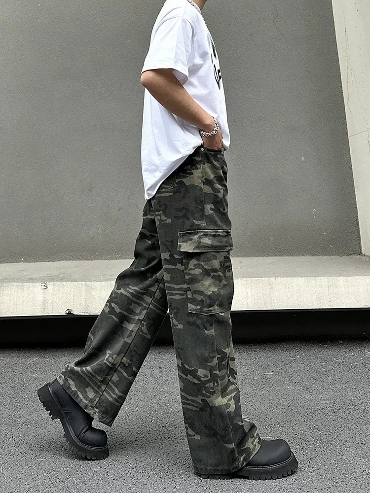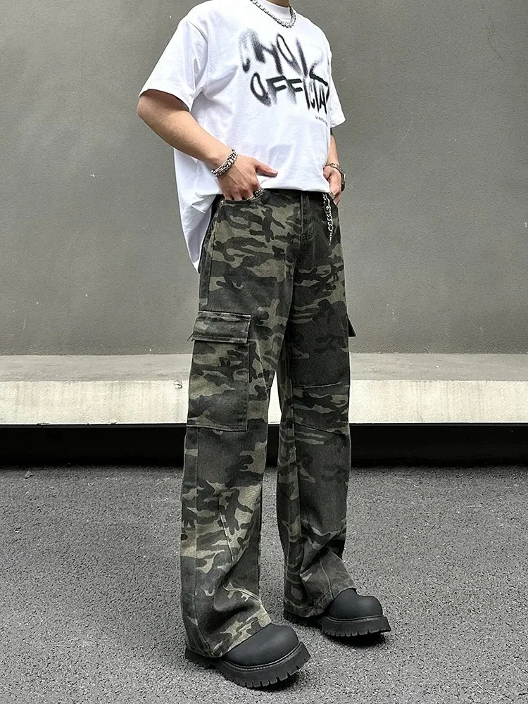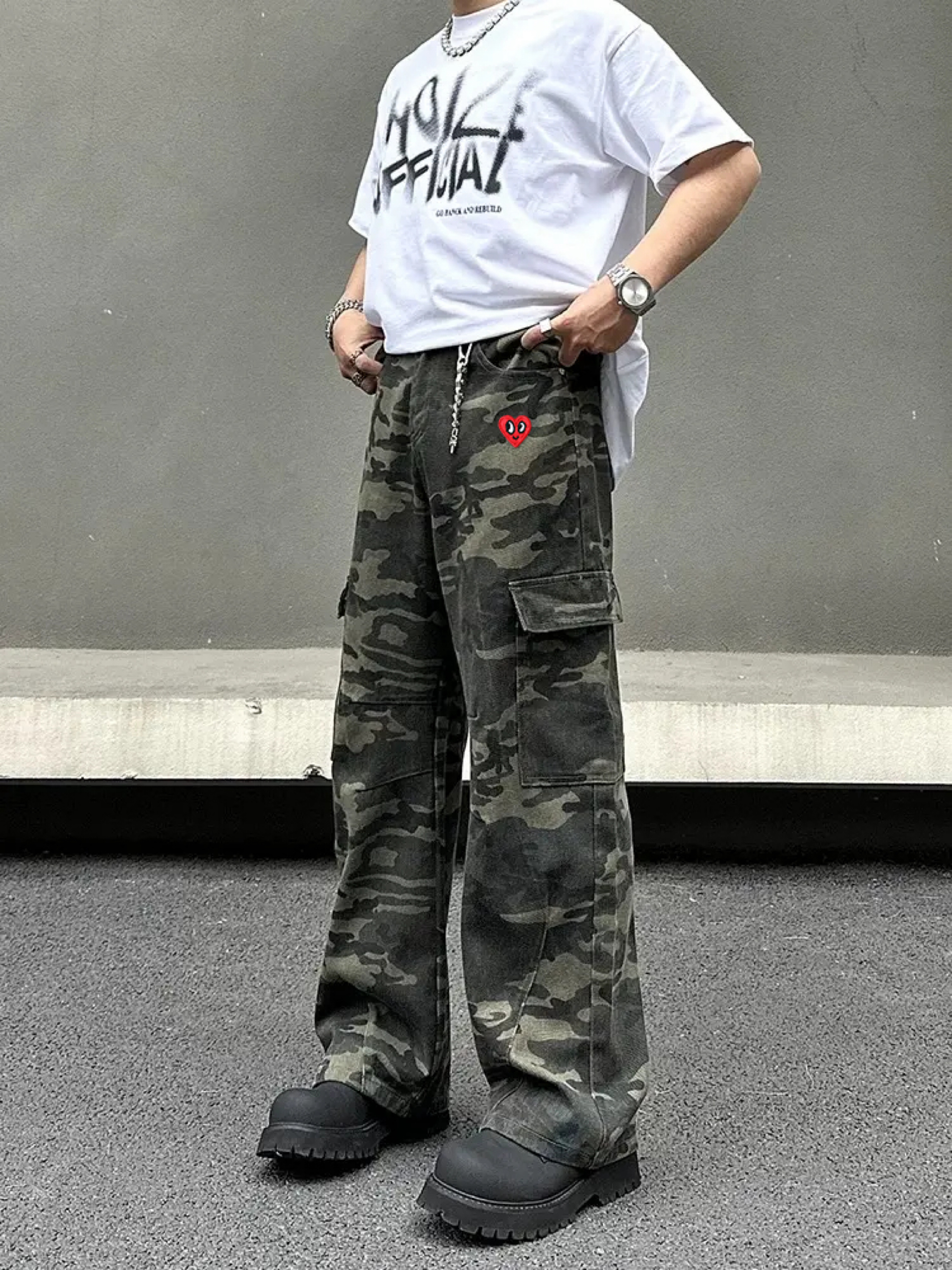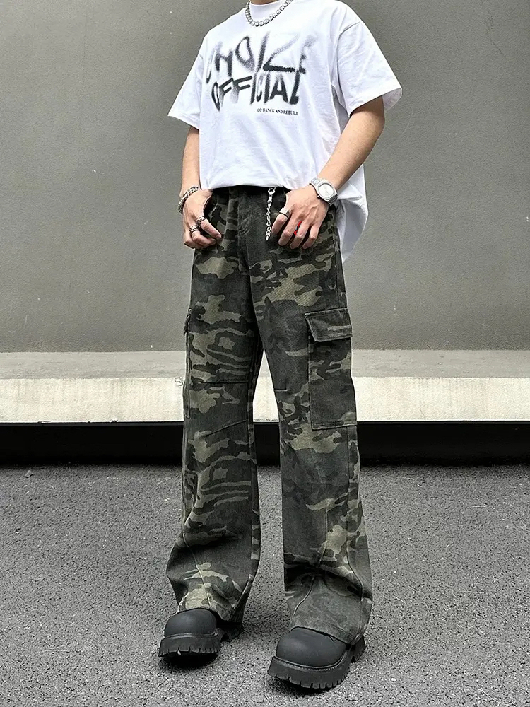 直筒的版型超遮胯,腿粗也能够轻松的驾驭,迷彩元素自带潮酷感,搭配白色短袖真的太帅咯!真的很型男