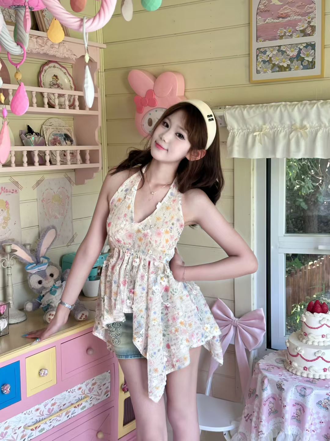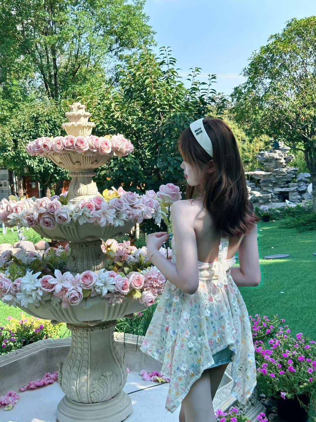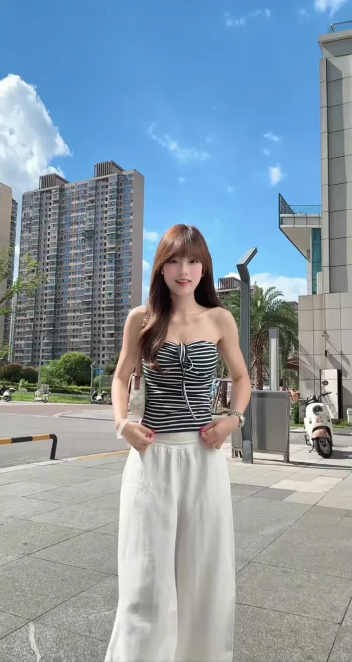 小清新穿搭 吊带上衣➕半身裙➕人字拖 拖拖的夏日风 再配上发箍呼应色系 整体直接next level