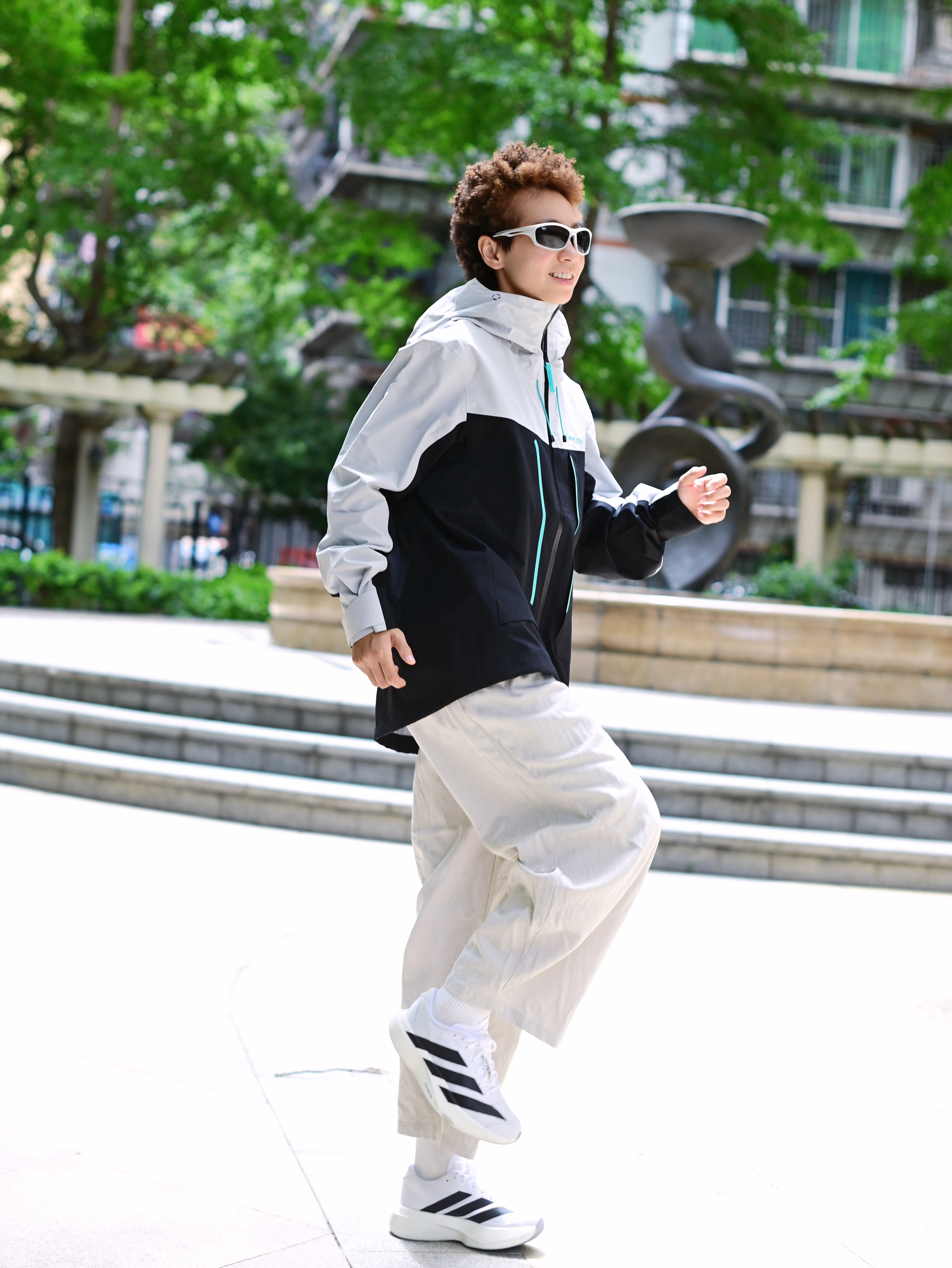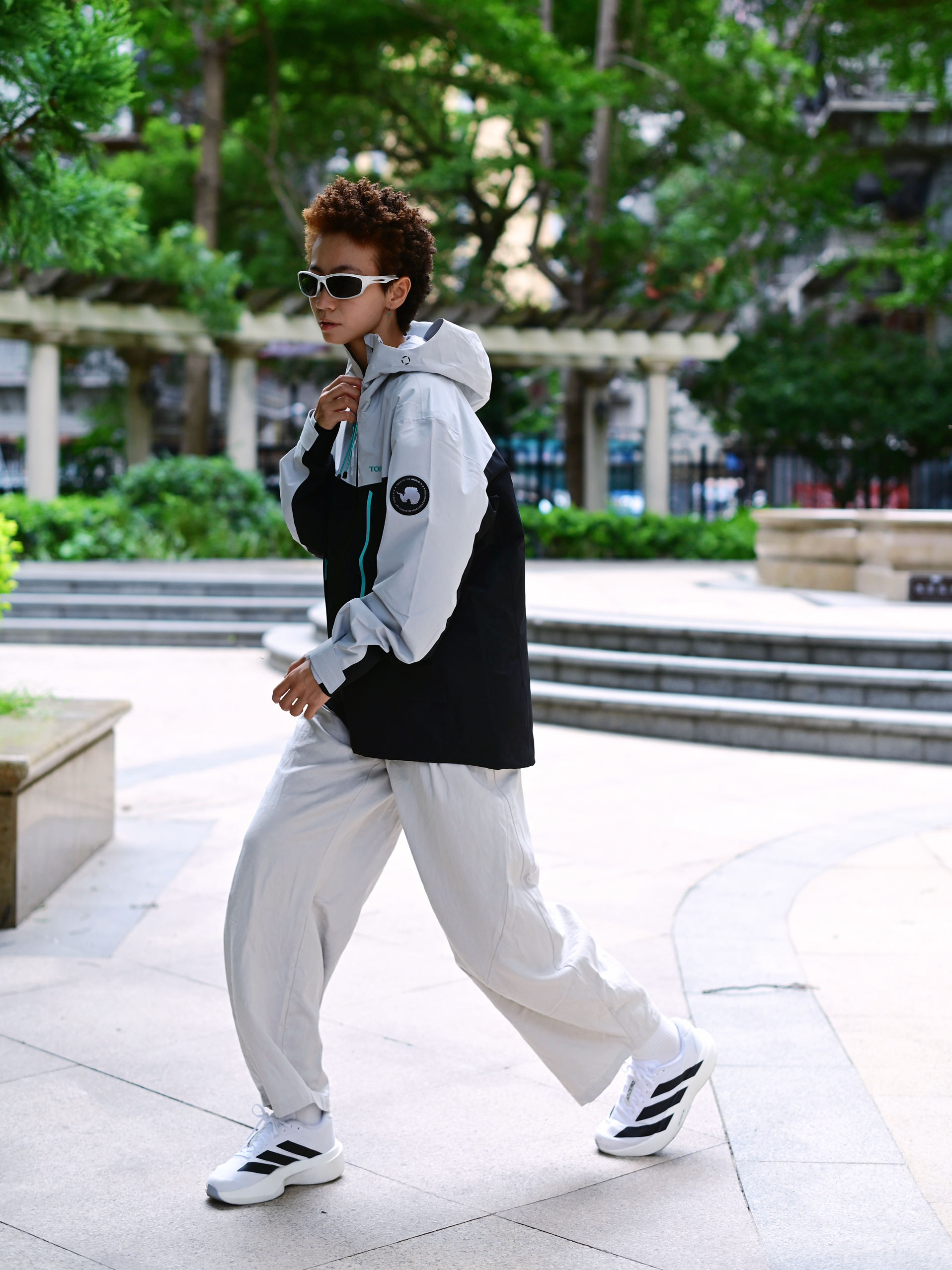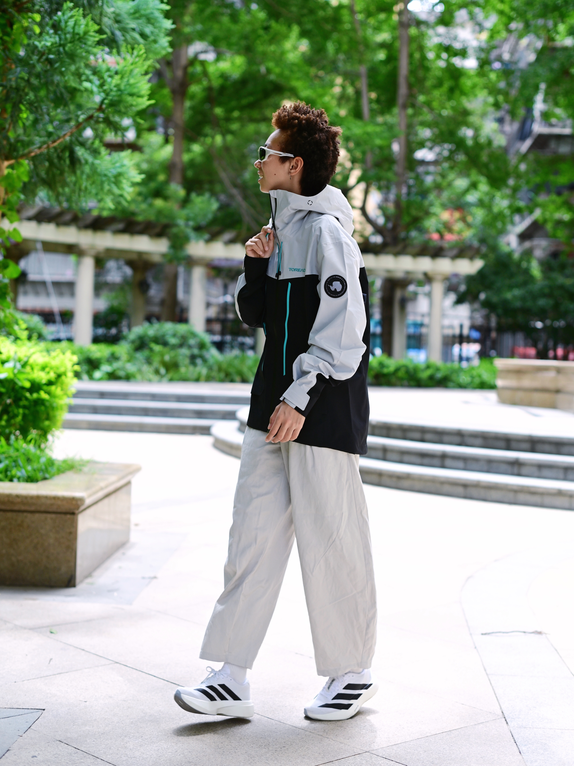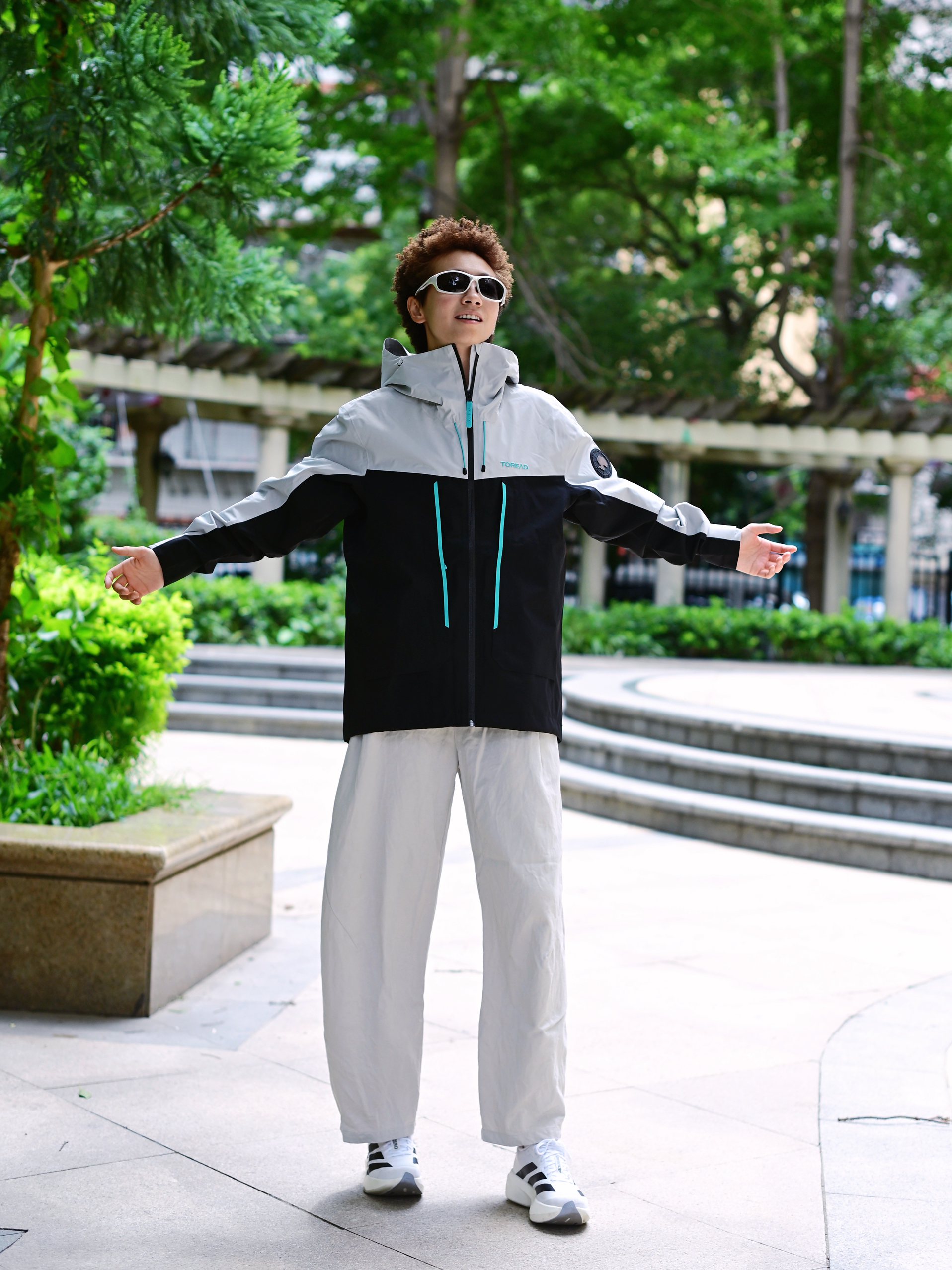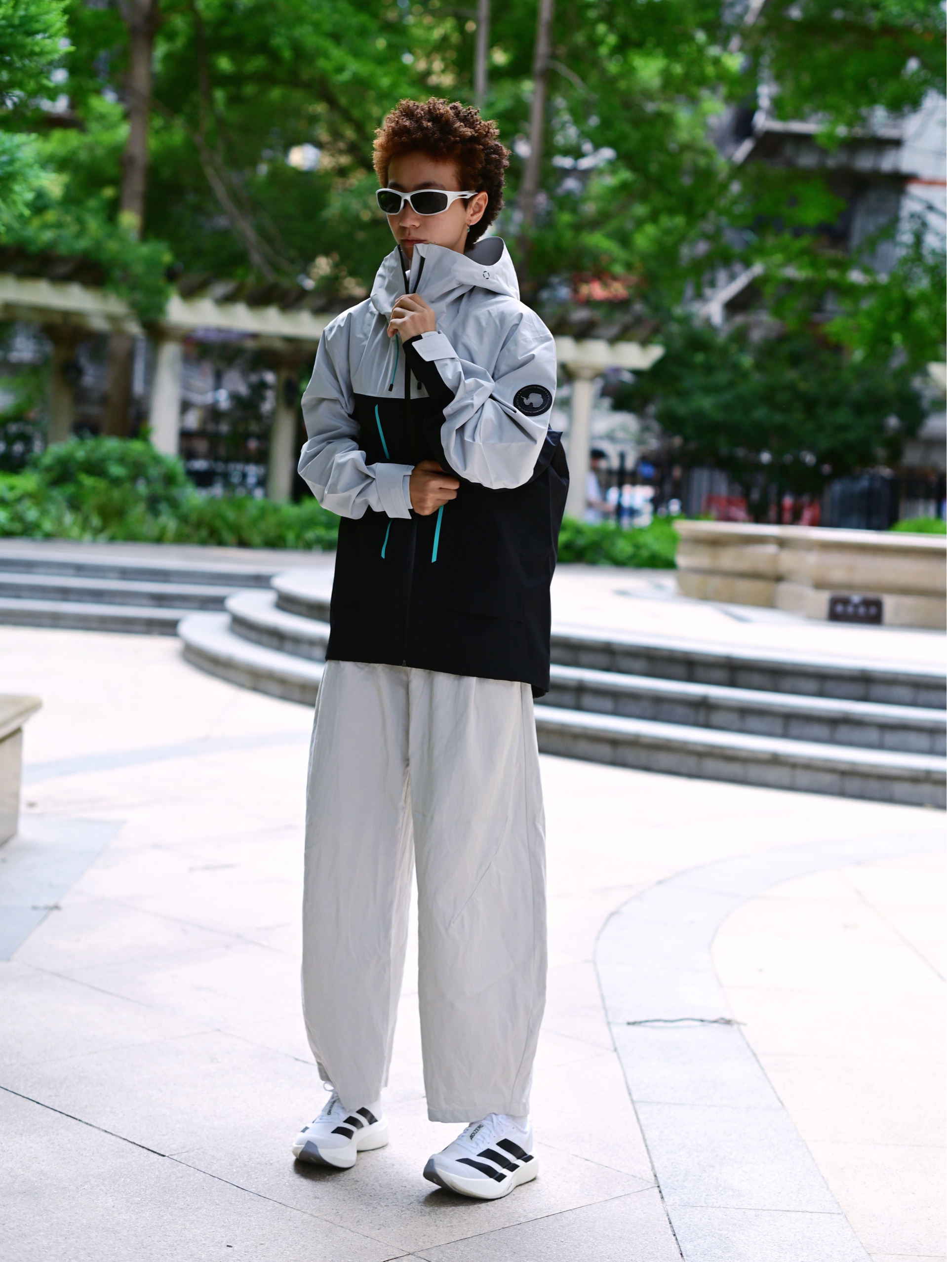 欢迎进入无敌小圆哇子的穿搭分享频道 172CM|55KG 👔:m👖:m|👟:39码 今日份上身山影灰冲锋衣 防水防风还透气🌬️,应对城市突如其来的天气变化够用啦 下半身搭配浅色系工装裤 再加一双跑鞋 夏日轻松拿捏山系City Boy风