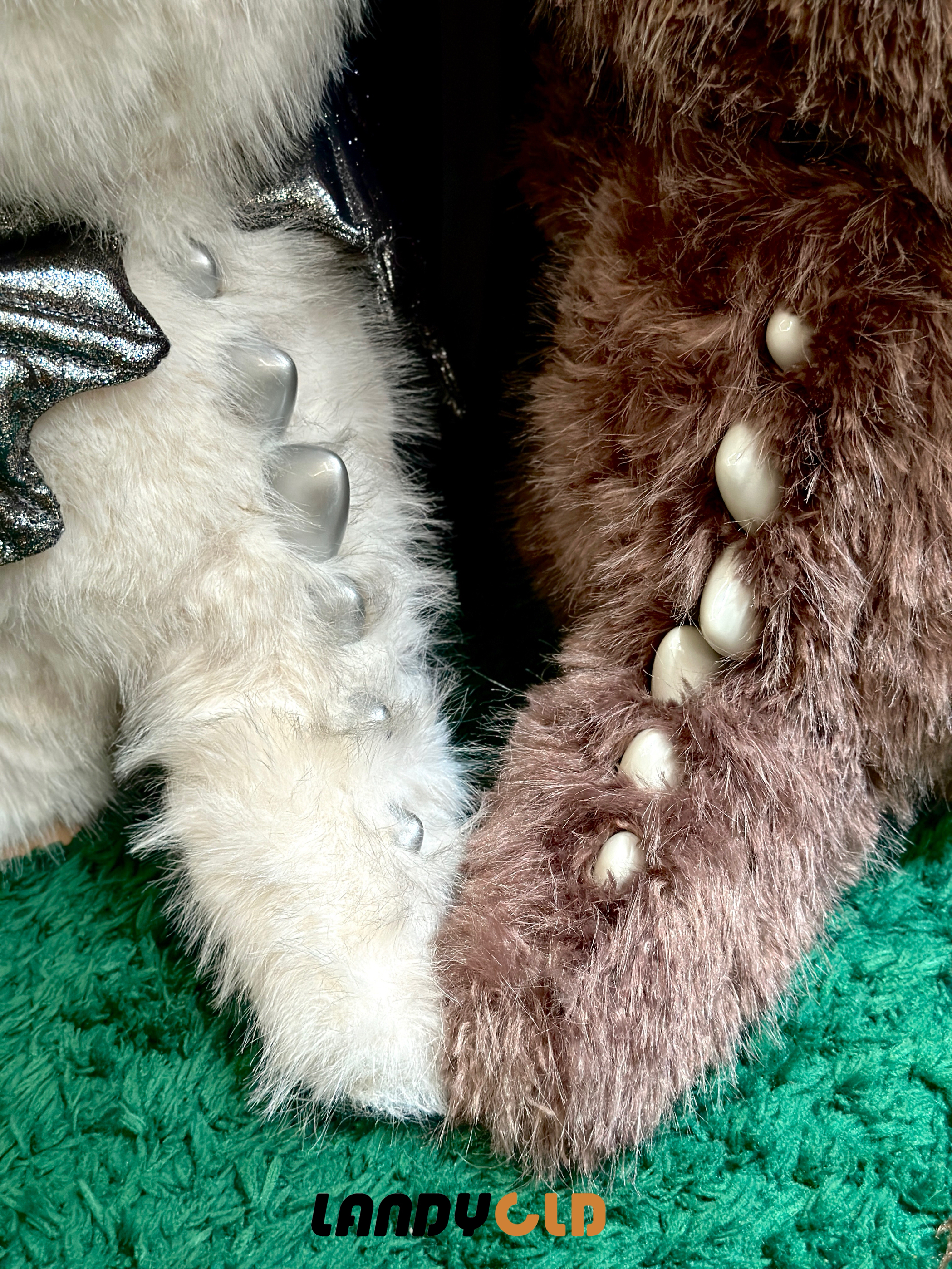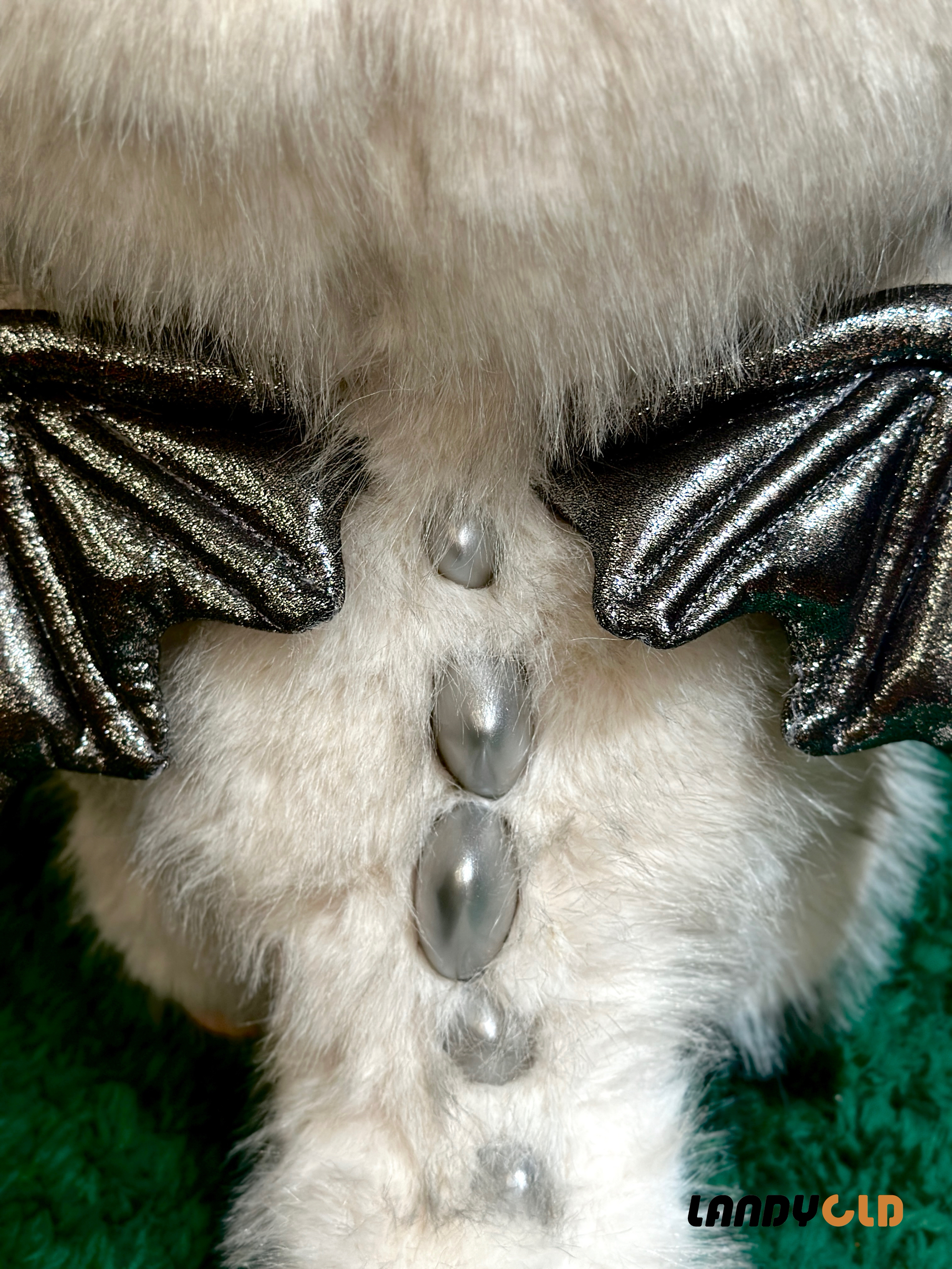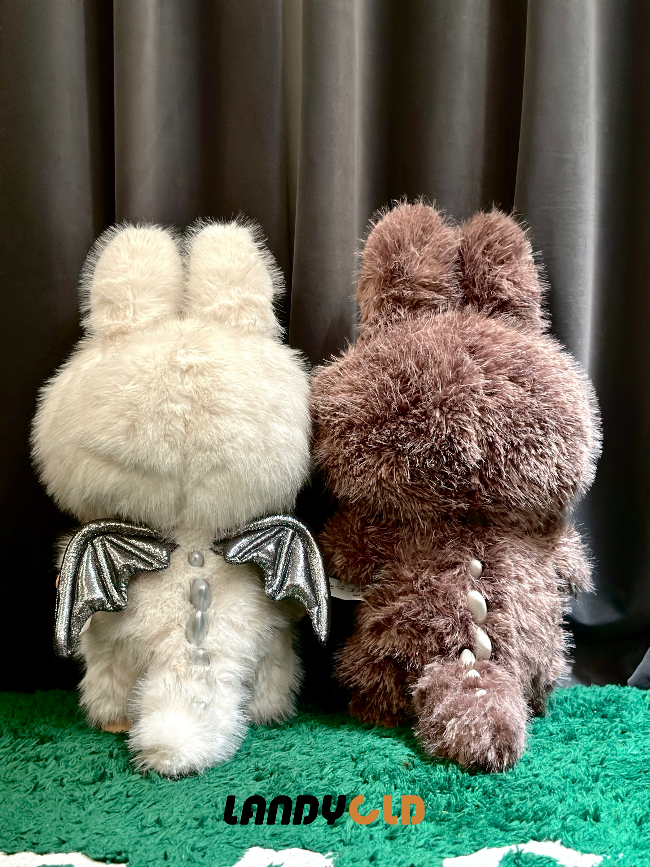 拉布布的大首领和阴晴天使,他们来了,他们带着两条长长的尾巴来了,带着一双翅膀来了,带着一颗银牙来了。 labubu大首领,毛茸茸的身躯,加上长长的尾巴,尾巴上的小尖刺,也是搪胶材质,任意弯曲,但也别太任意,我怕他痛,哈哈。 比较有意思的是他的左手,比的是这个👆手势,和其他都不一样,是不是意味着,我是首领的意思。 labubu阴晴天使,也有三个不同的小细节,除了与大首领一样的大尾巴,其他几个不...