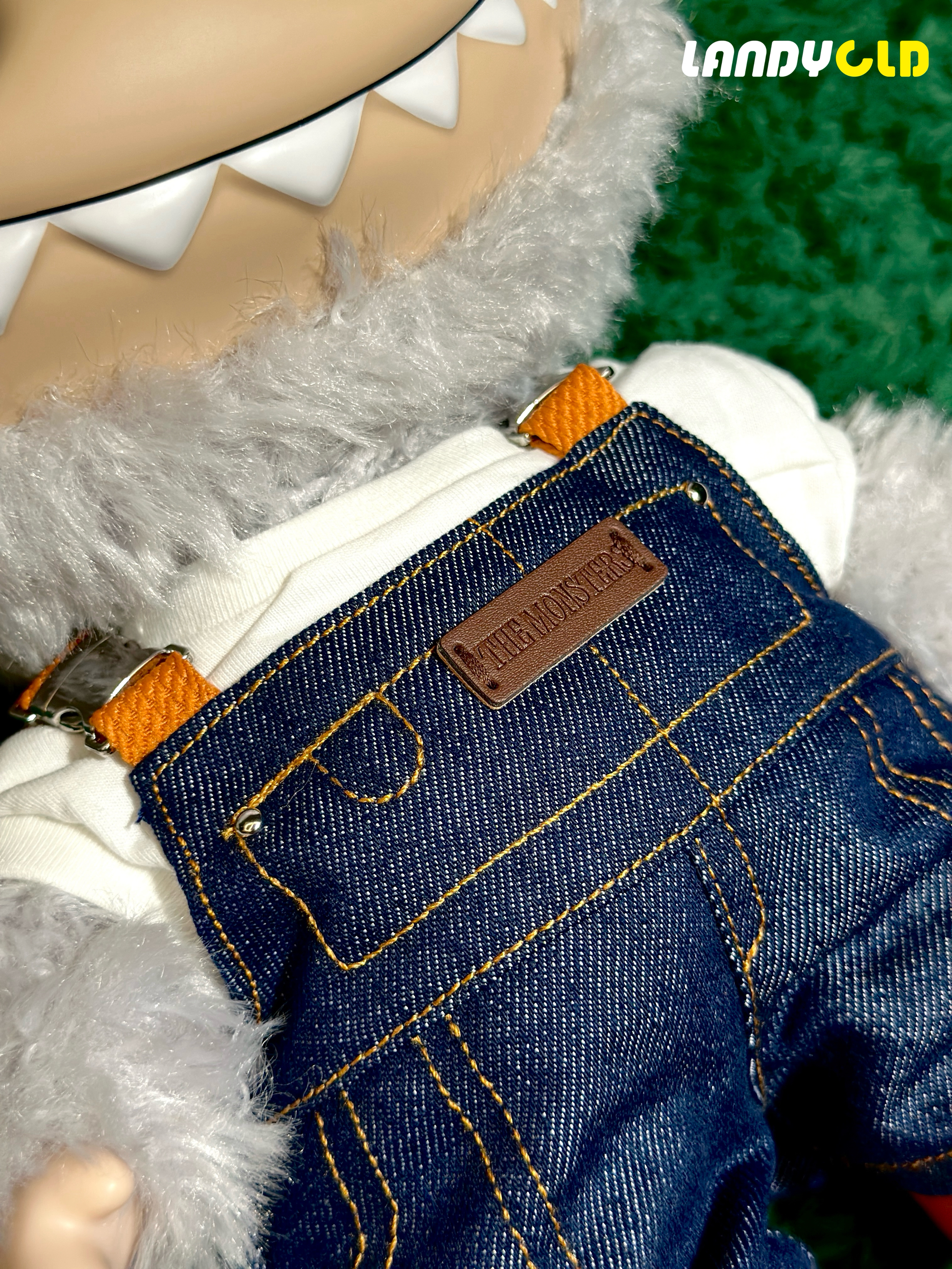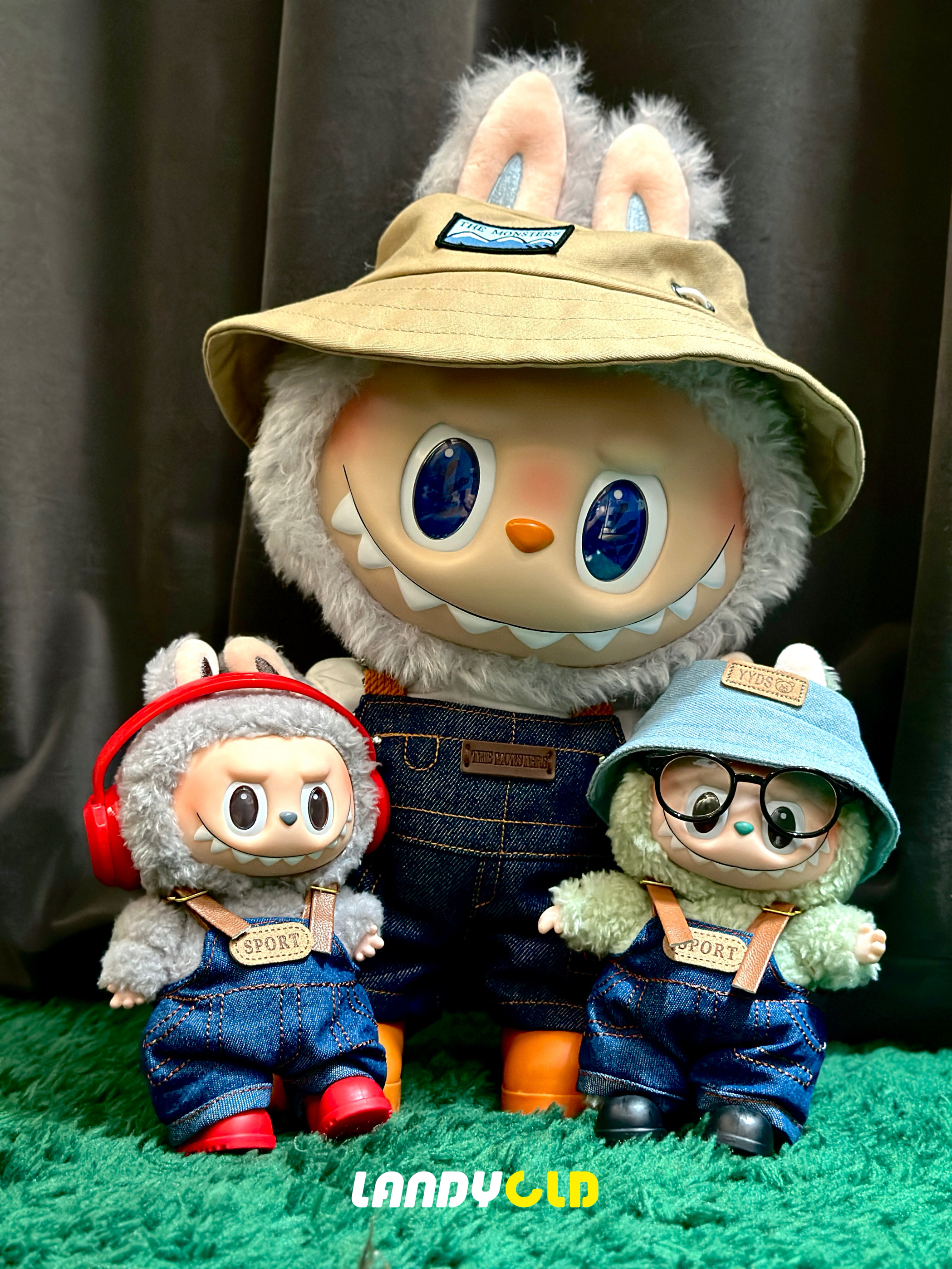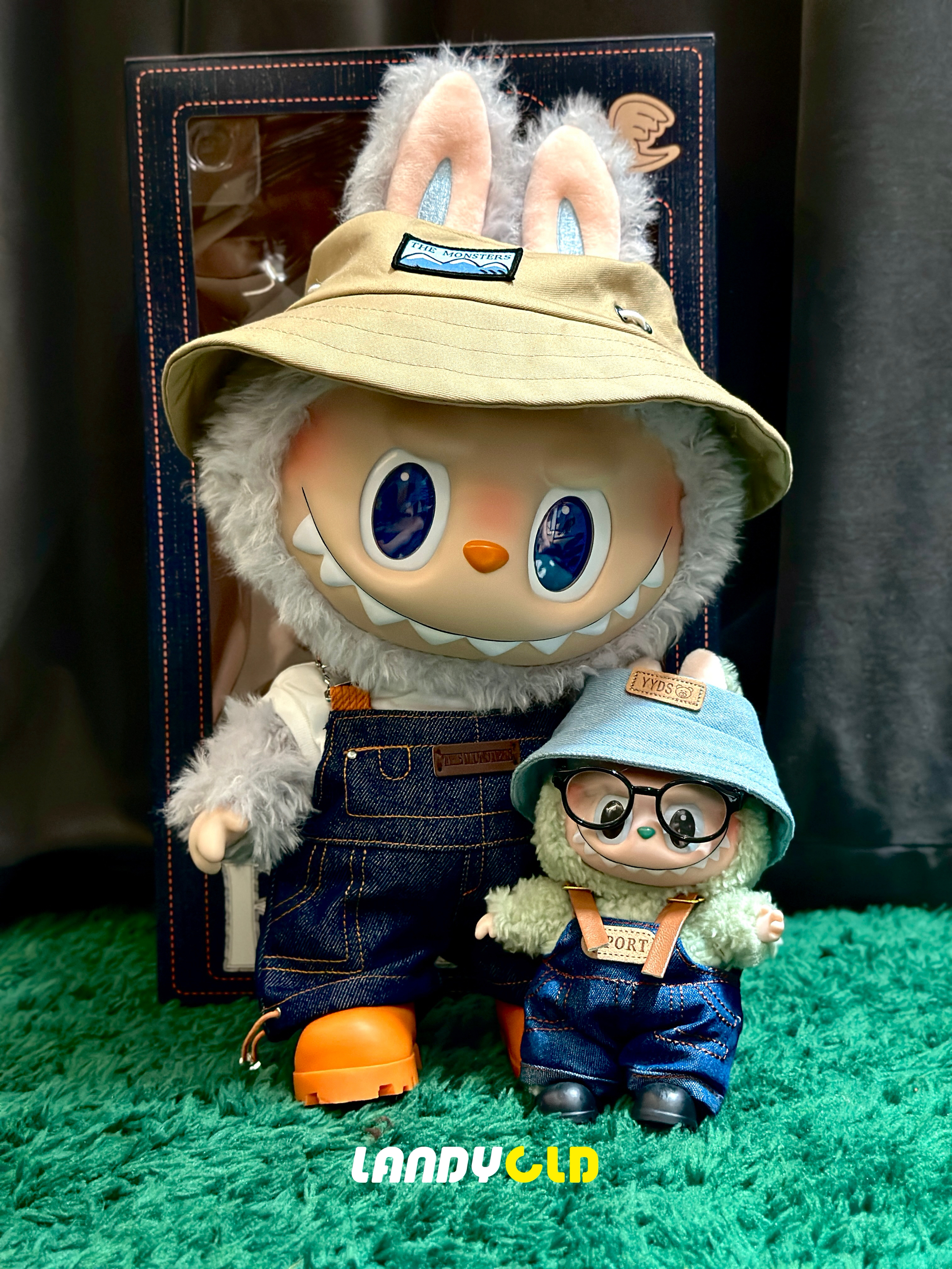 这是近期入手的LABUBU的之一,他的外盒,也是我比较喜欢的,牛仔质感的外包装,挺好看。 第一个,就是他的渔夫帽,卡其色的渔夫帽, 第二个,就是他的牛仔背带裤,金属的扣带,口袋,胸前小吊牌,带拉链的T恤,有点小心意 第三个,是他那双橡胶的鞋,后面特地做了一个开口处理,也是为了更好的穿脱。