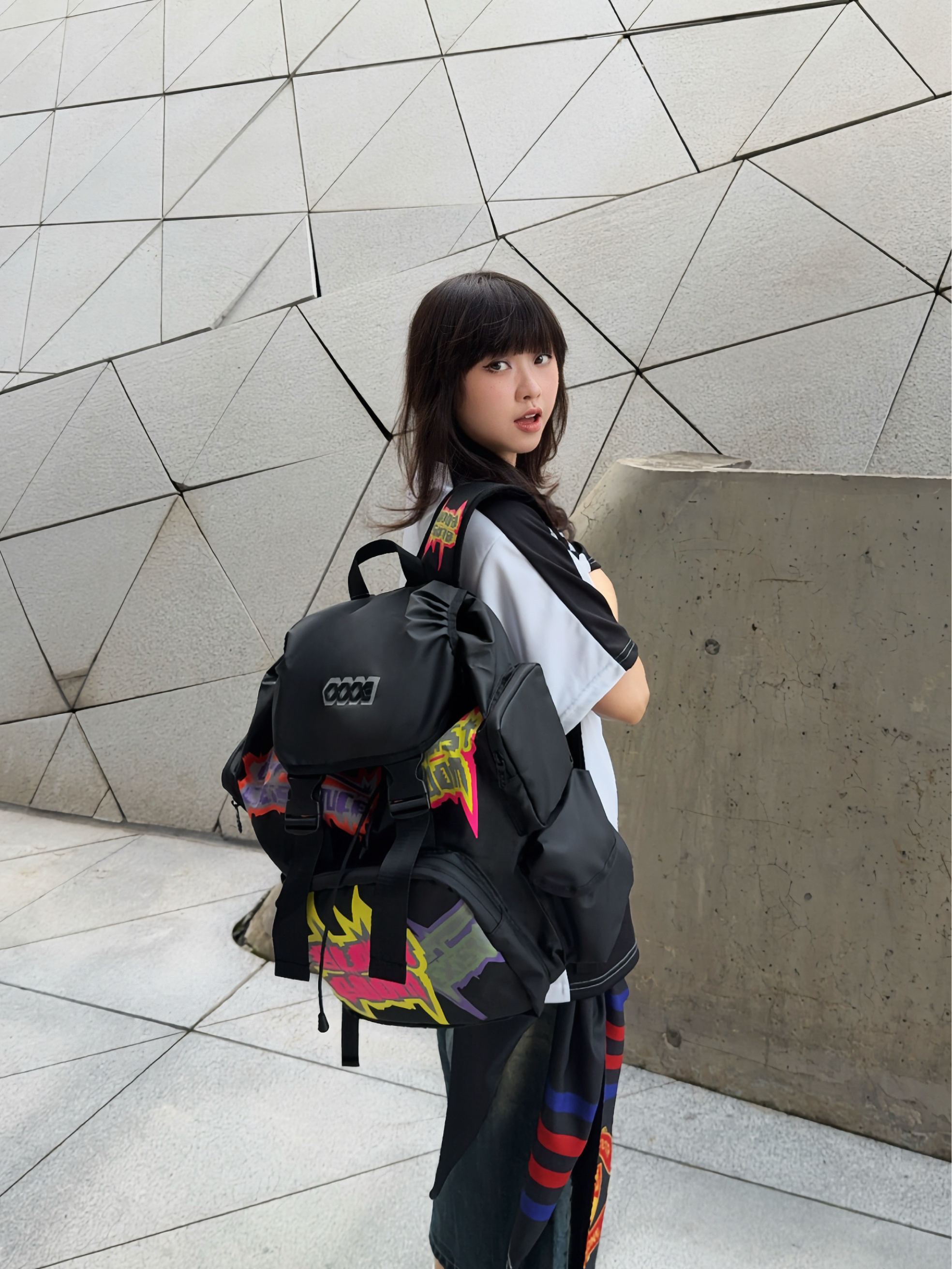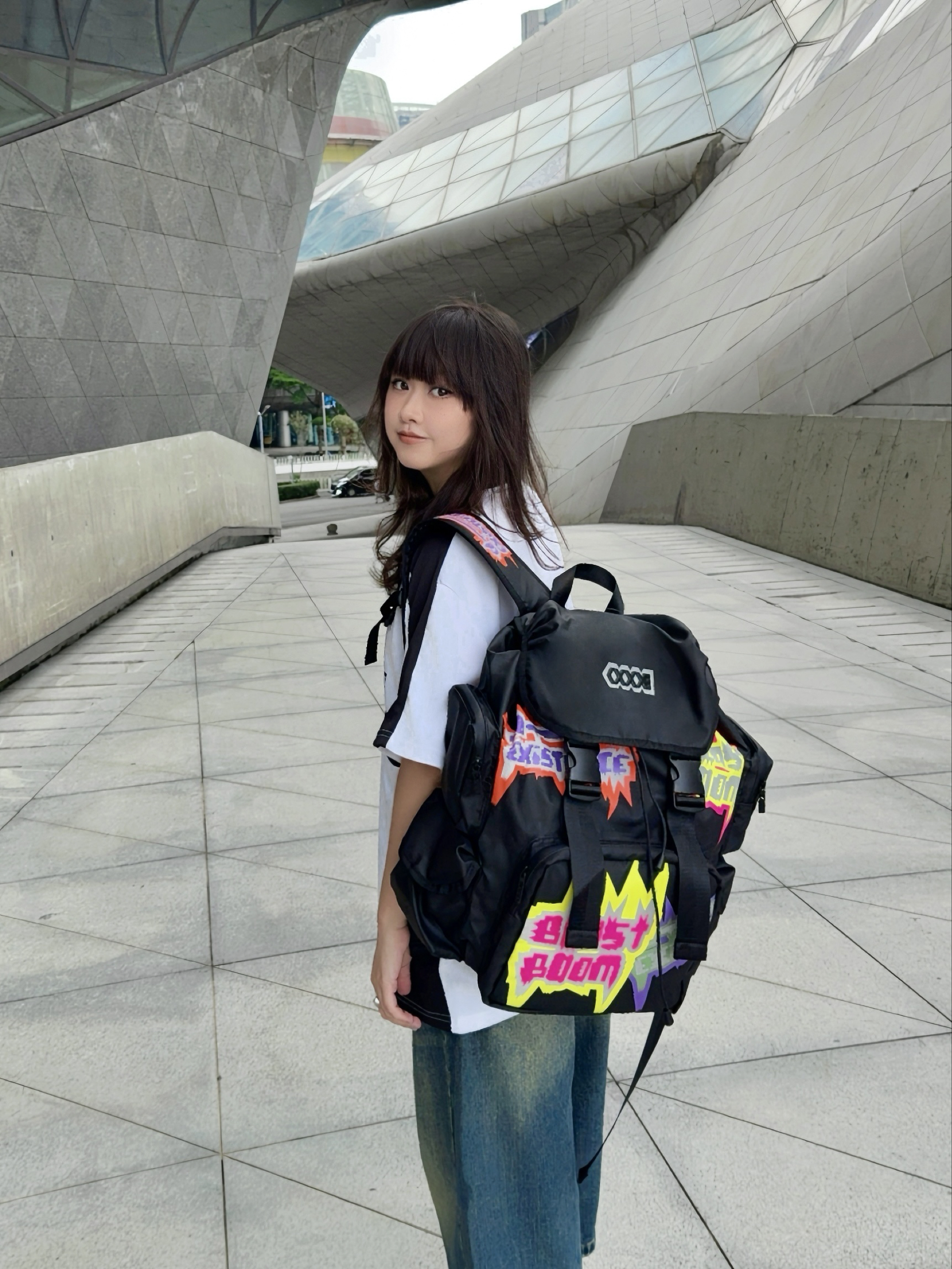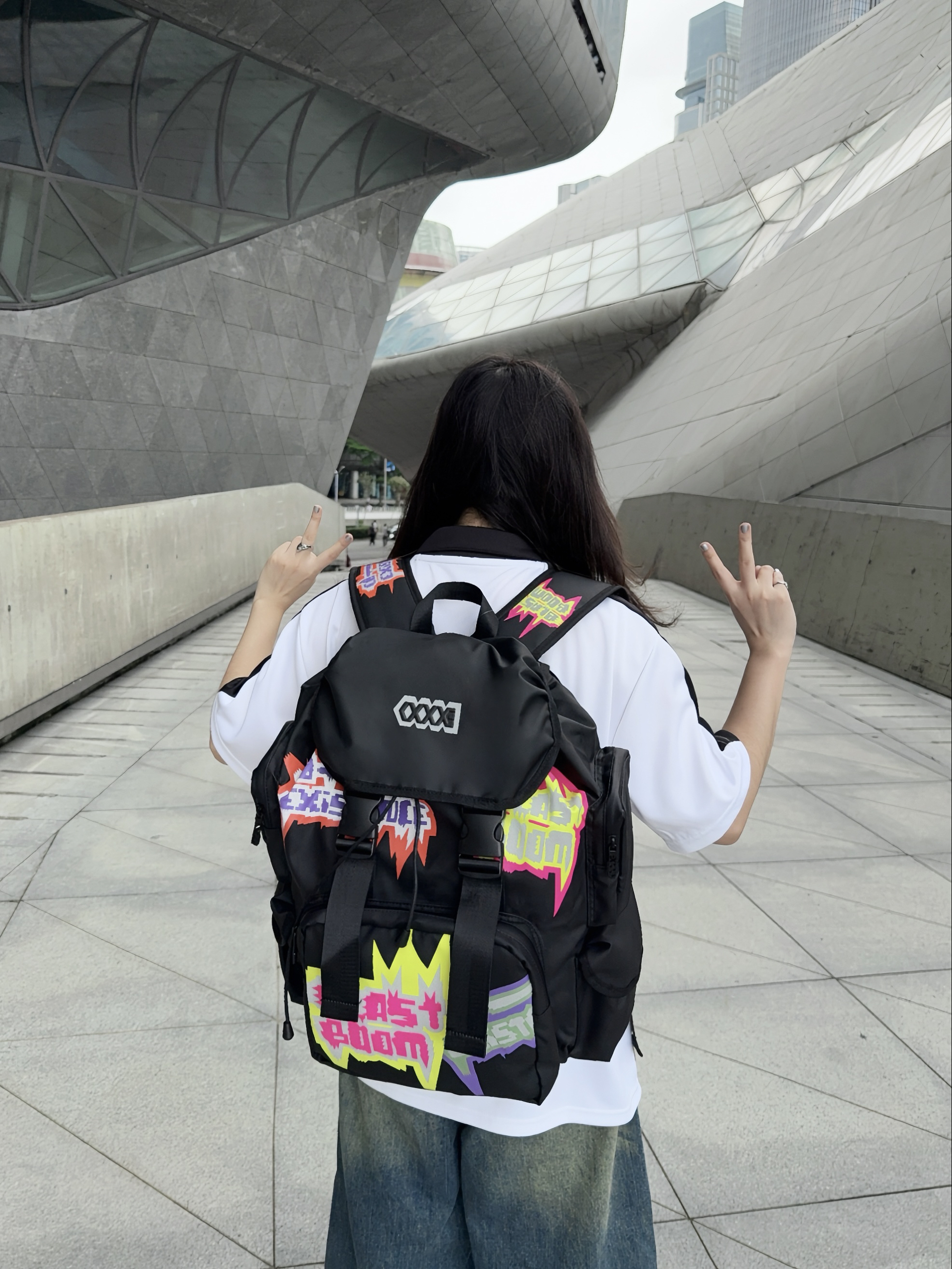 🛹夏日美式穿搭,酷就完了~背上美式双肩包出门Citywalk啦~ ☑️这个双肩包🎒✍️涂鸦印花潮酷💯,而且分区很多,容量贼大,感觉短途旅行都能装!像包口还是可调节der,细节nice ☑️背上身很酷也比较轻便,自重🉑