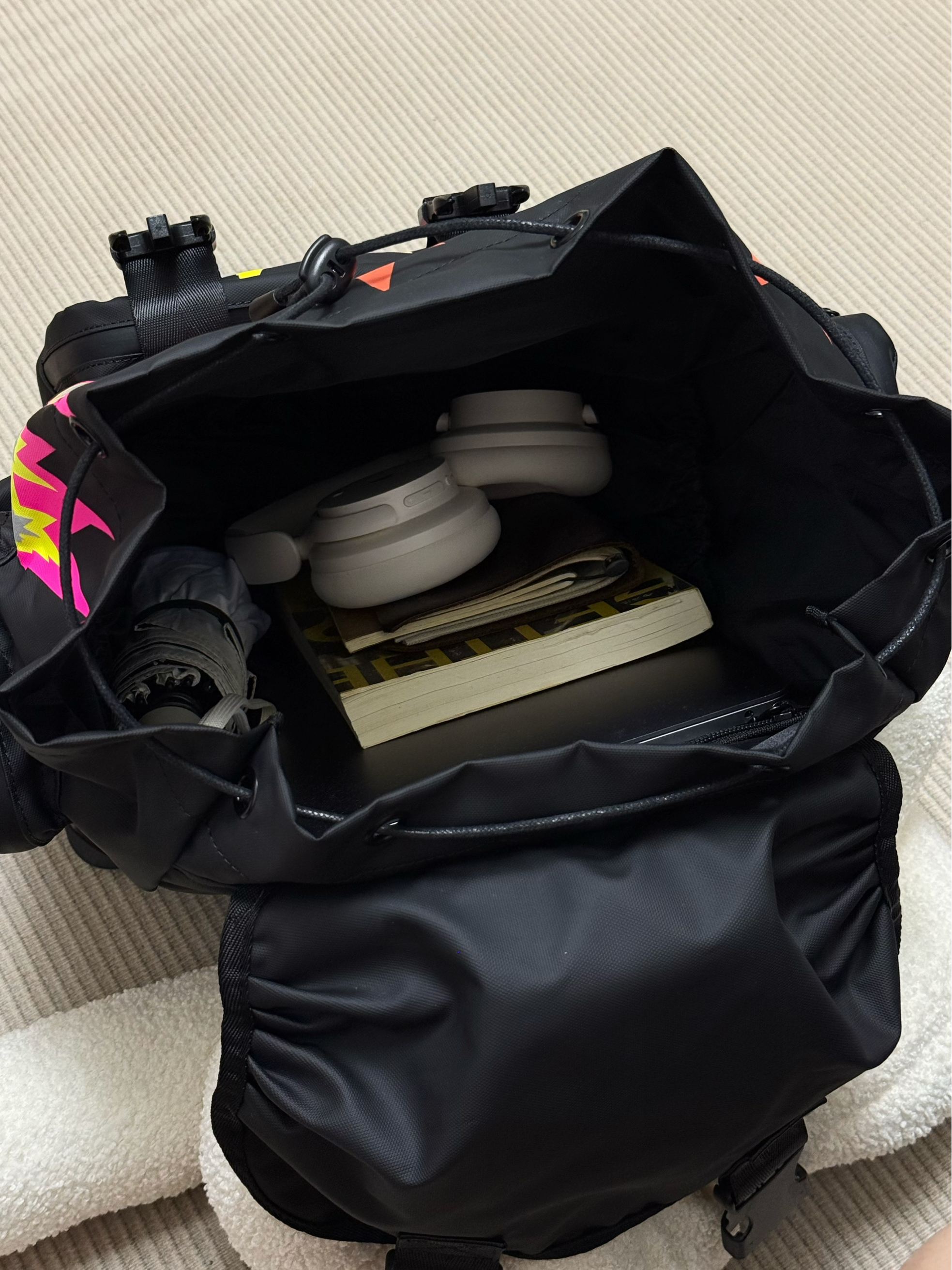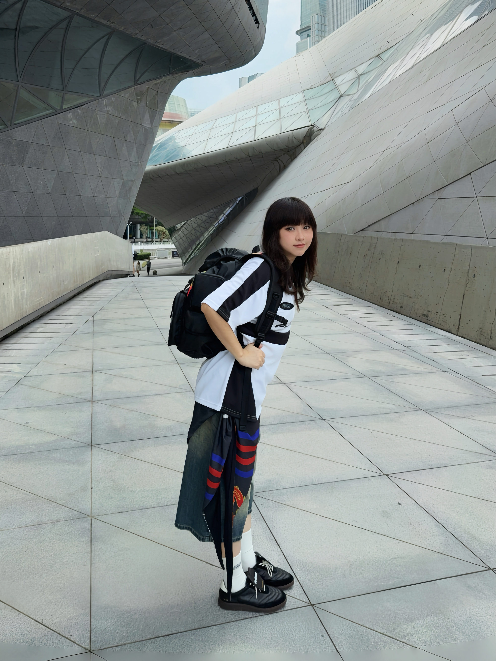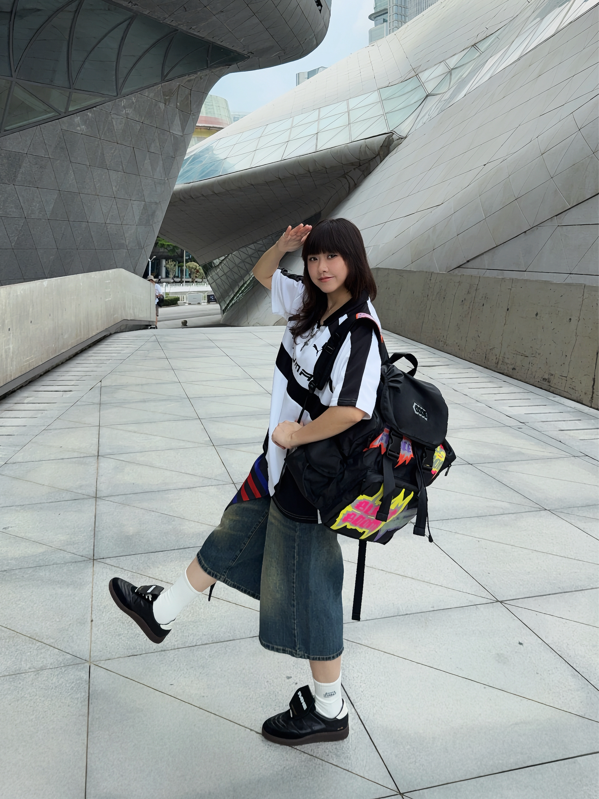 🛹夏日美式穿搭,酷就完了~背上美式双肩包出门Citywalk啦~ ☑️这个双肩包🎒✍️涂鸦印花潮酷💯,而且分区很多,容量贼大,感觉短途旅行都能装!像包口还是可调节der,细节nice ☑️背上身很酷也比较轻便,自重🉑
