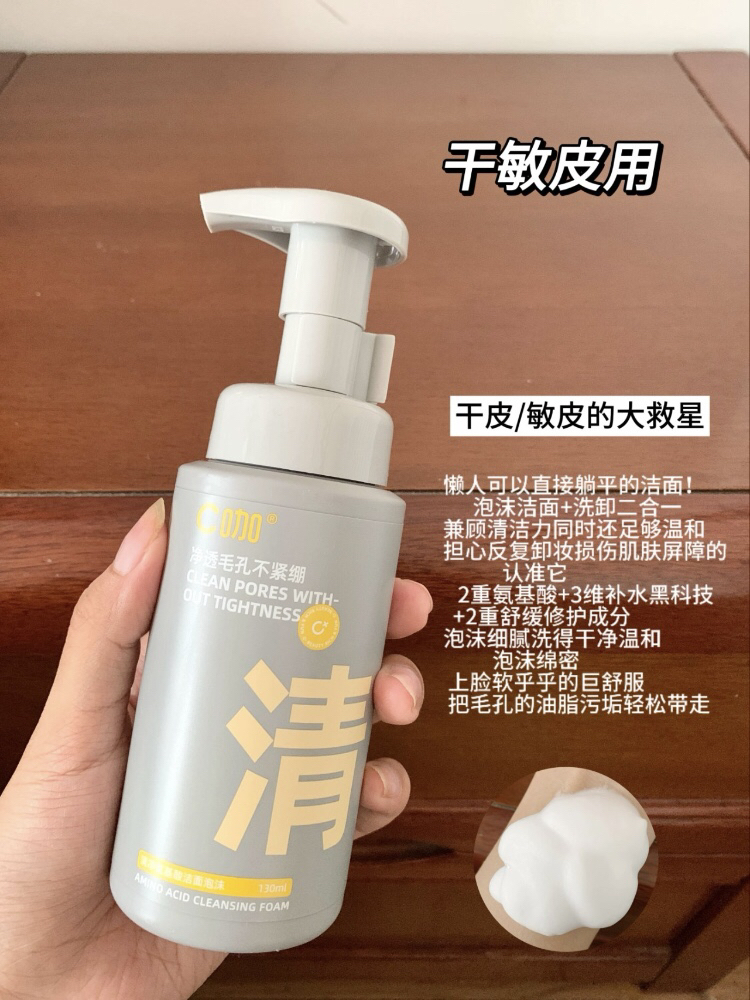全网国货洁面销量第一真不是吹的 现在又出了洁面慕斯把敏感肌也招呼到了 一直在用c咖洗面奶每一款都巨巨巨好用 之前的双管洁面就把我的大油田治理的服服帖帖的 每一款都适用于不同的肤质