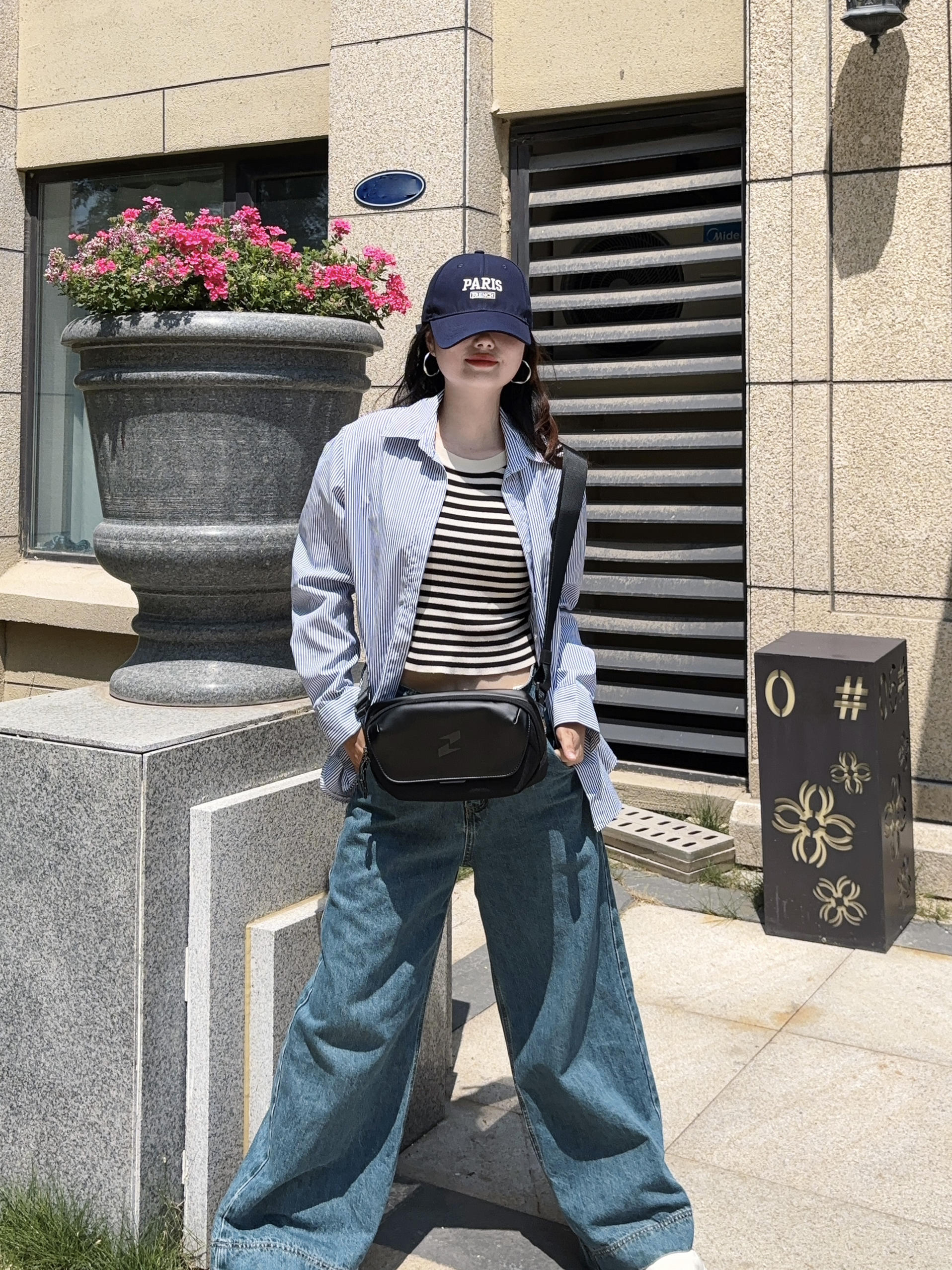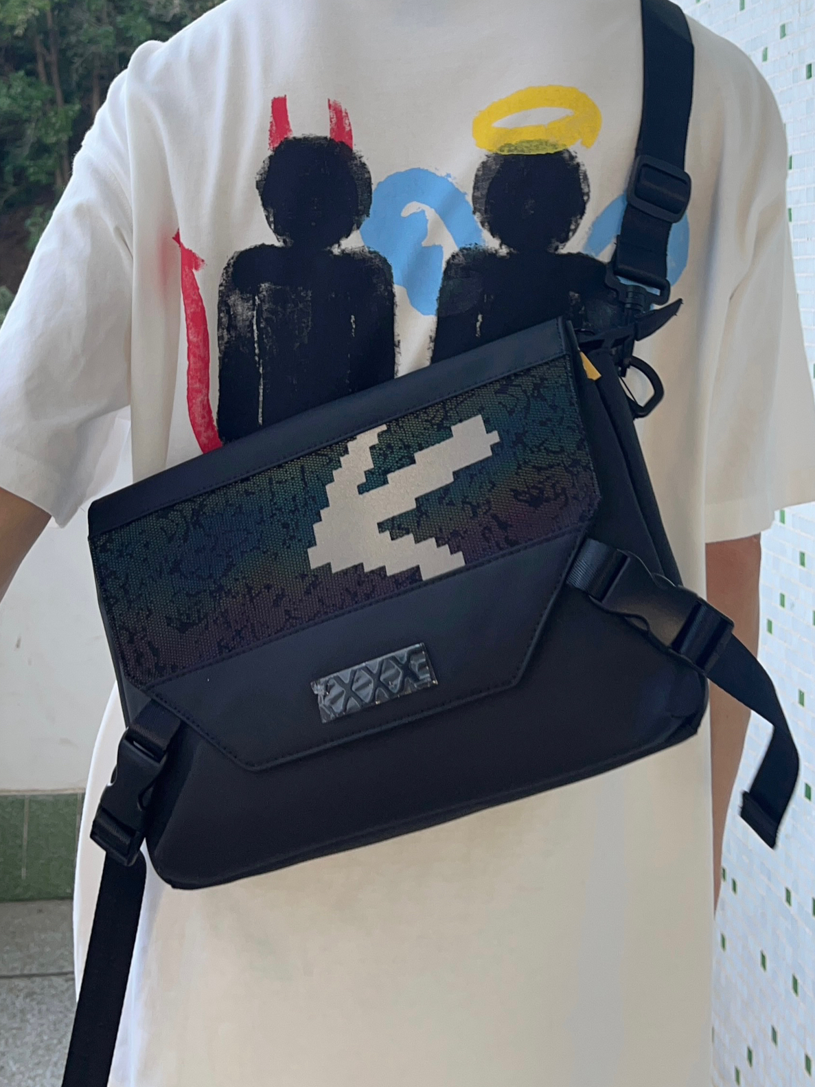 我很喜欢这种有质感的包哇 耐磨防泼、抗撕扯,还很气派 探记者 这款pvc机能风的包包生身背很有个性 黑色的颜色也很酷感🆒 款式很简约大方,男女都可背同款哦 容量也不小 有磁吸前仓,拿取更方便快捷 拉链内空间很足 充电宝、手机小物品都没问题的 包包能背的方式也多 可斜挎可单肩还可做胸包,一包多用 今天搭配的蓝格衬衣➕宽松牛仔裤来背 很潮流风时尚感很强 👍 不论是通勤还是运动出街 不挑穿搭风...
