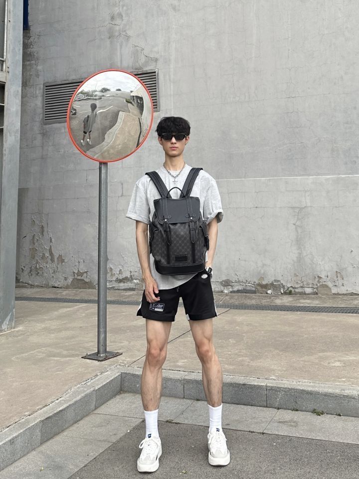 👔上衣基础刺绣短袖 版型偏宽松 左肩处的刺绣图案设计很帅。 🩳下半身速干运动四分裤 面料轻薄透气 运动打球穿都没问题! 🎒是来自马克华菲的双肩包,纯黑配色背上很显质感,翻盖抽绳的开合方式挺有风格,包里是多隔层的容量很大,笔记本日用品都能放的下,平时旅游 通勤背都可以!