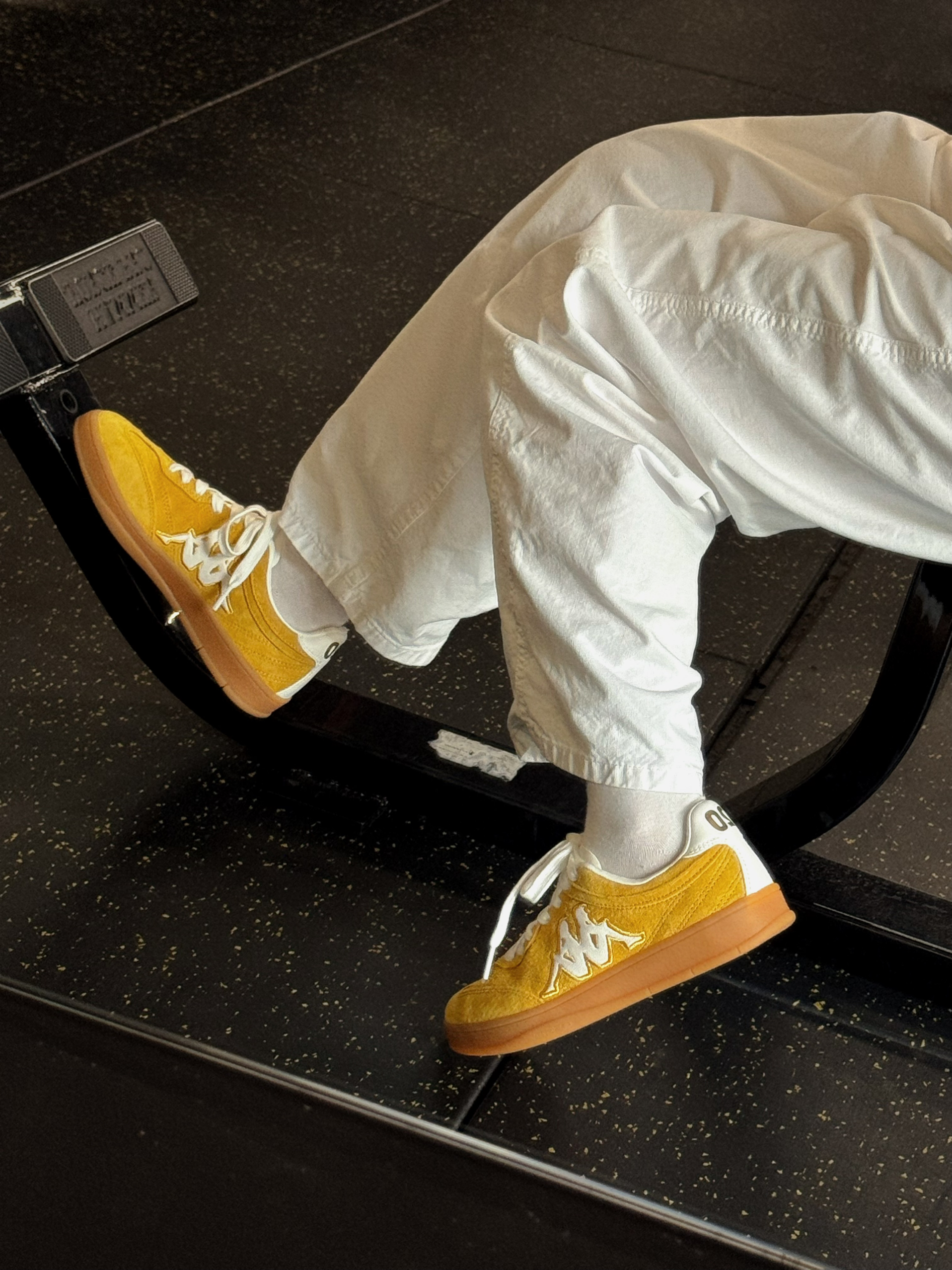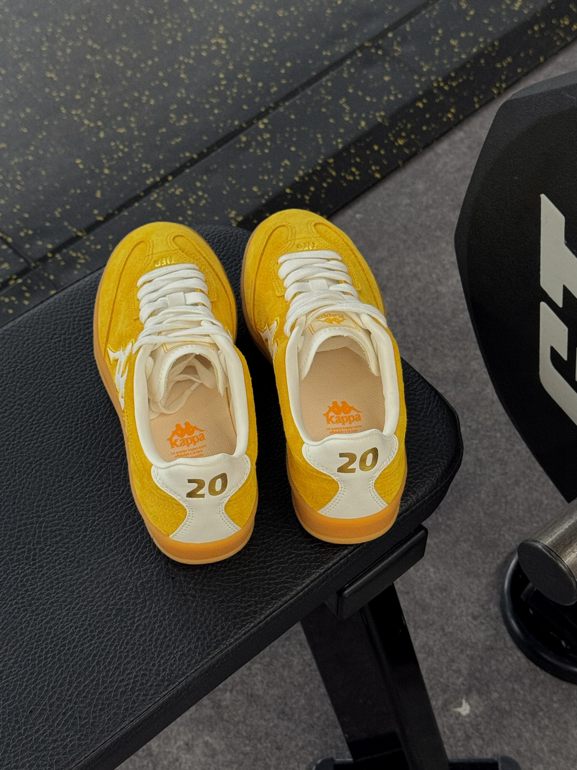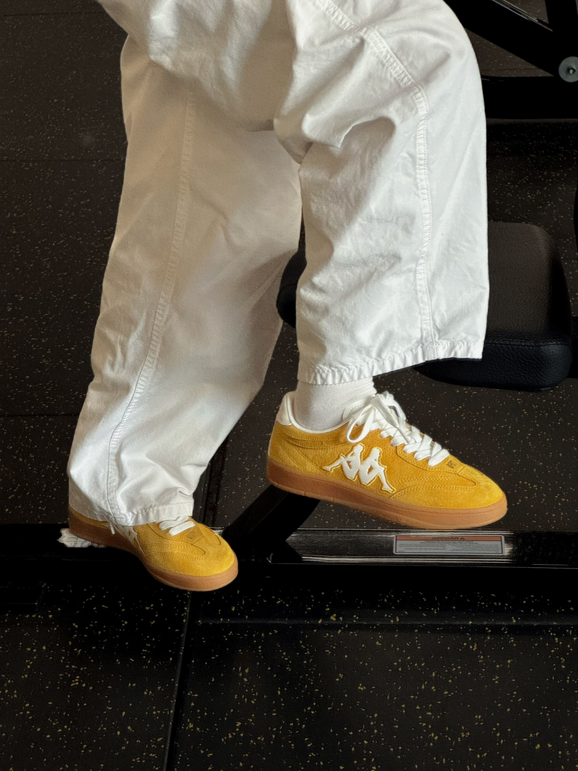 周末的快乐🥰 是Kappa这双复古黄德训鞋给的 芒果布丁配色写着我皮卡丘的名字 黄白撞色设计百搭不单调~ 在健身房的阳光下看着活力满满 搭配长裤短裤都会很好看!