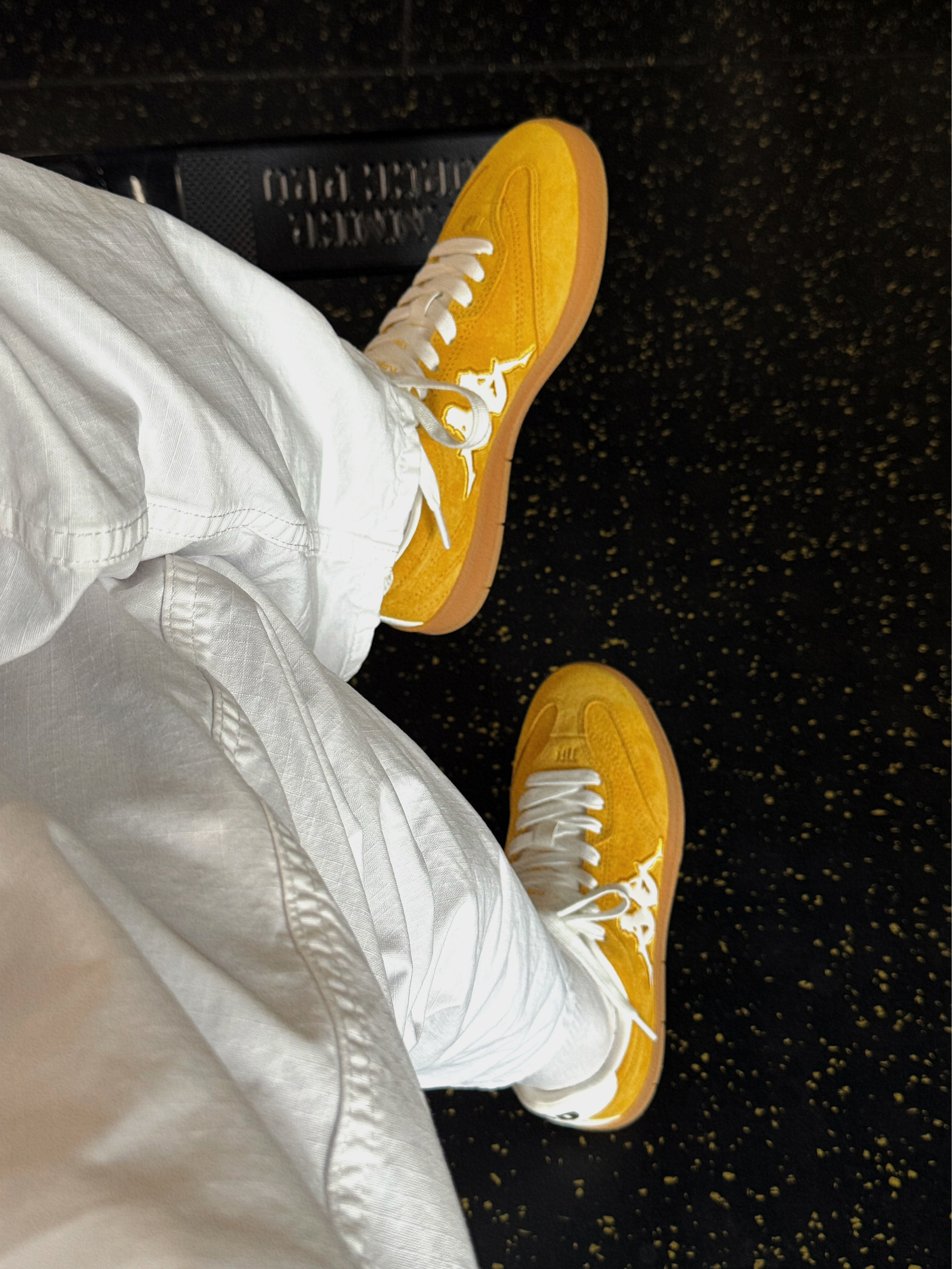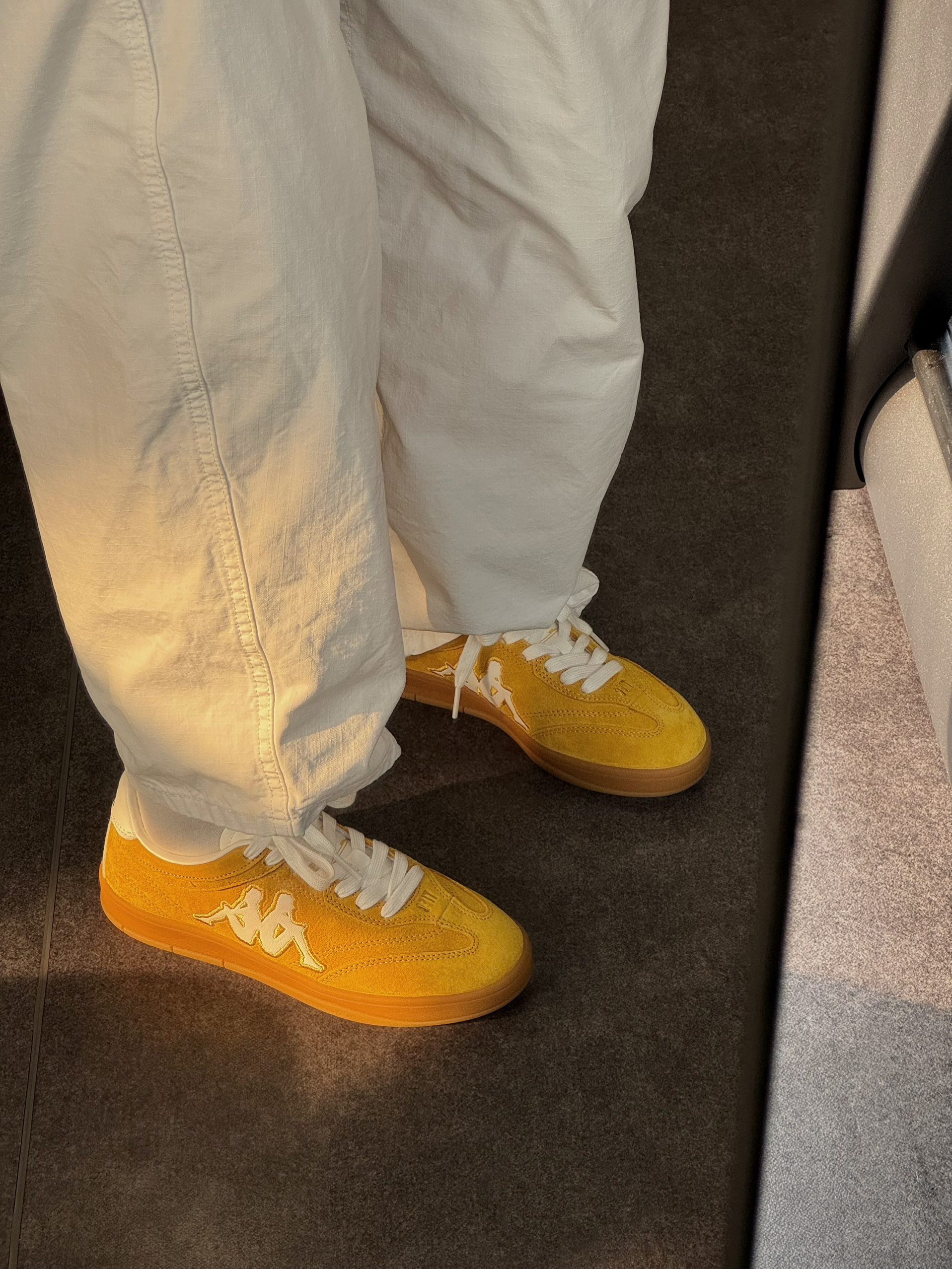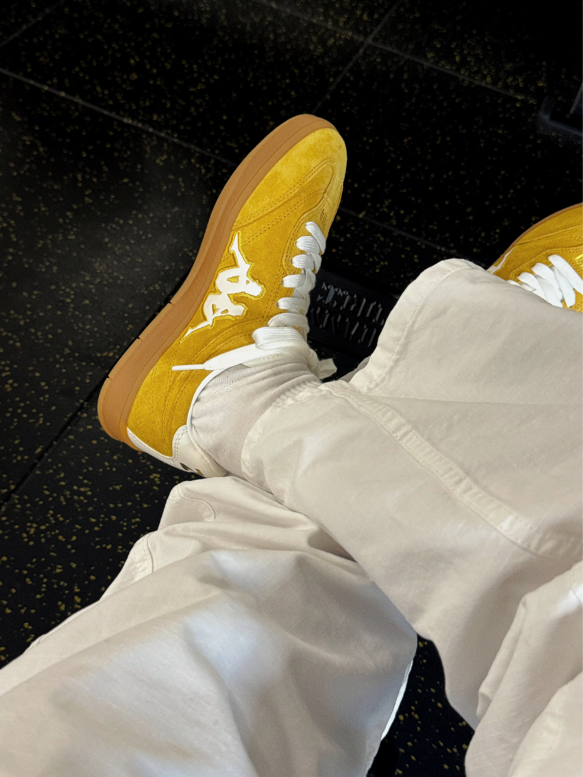 周末的快乐🥰 是Kappa这双复古黄德训鞋给的 芒果布丁配色写着我皮卡丘的名字 黄白撞色设计百搭不单调~ 在健身房的阳光下看着活力满满 搭配长裤短裤都会很好看!