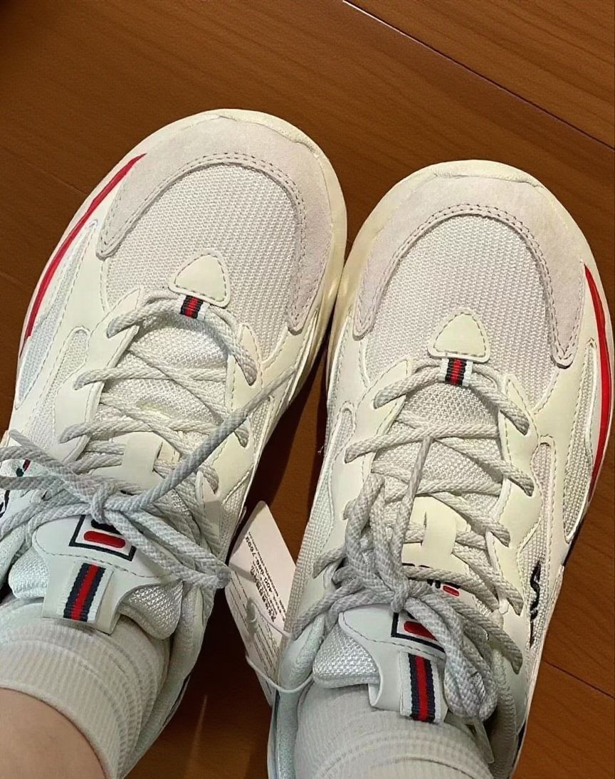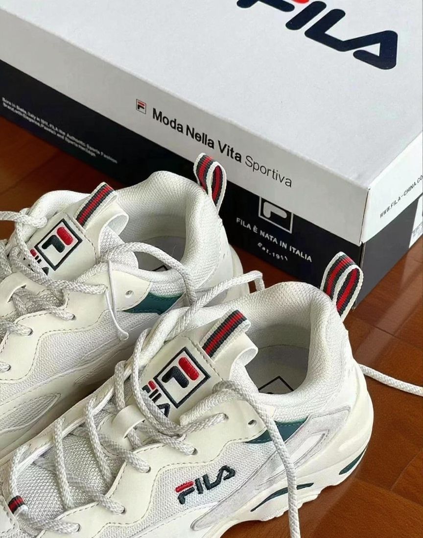 这双FILA真的越穿越爱!纯白鞋身配上红绿小标,像给极简画布点了一抹意式风情🇮🇹 网面透气到能感受到风,38℃穿去逛街也不闷脚(亲测有效)。 最爱后跟的拉环设计——着急出门时一蹬就走,鞋舌的红绿条纹还会偷偷露出来,给穿搭加了几分俏皮感✨ 记忆棉鞋垫软得刚刚好,遛狗半小时像踩在云朵上~ 配浅色牛仔裤特别干净,连闺蜜都问"这双鞋看着就很舒服吧?"