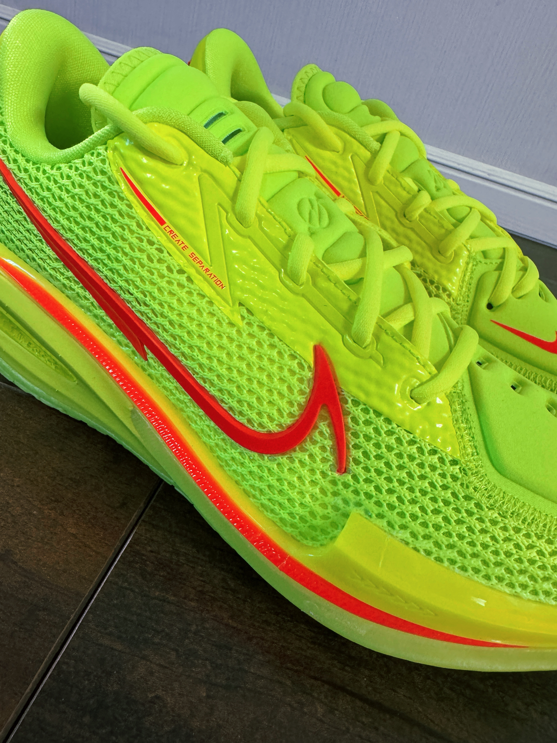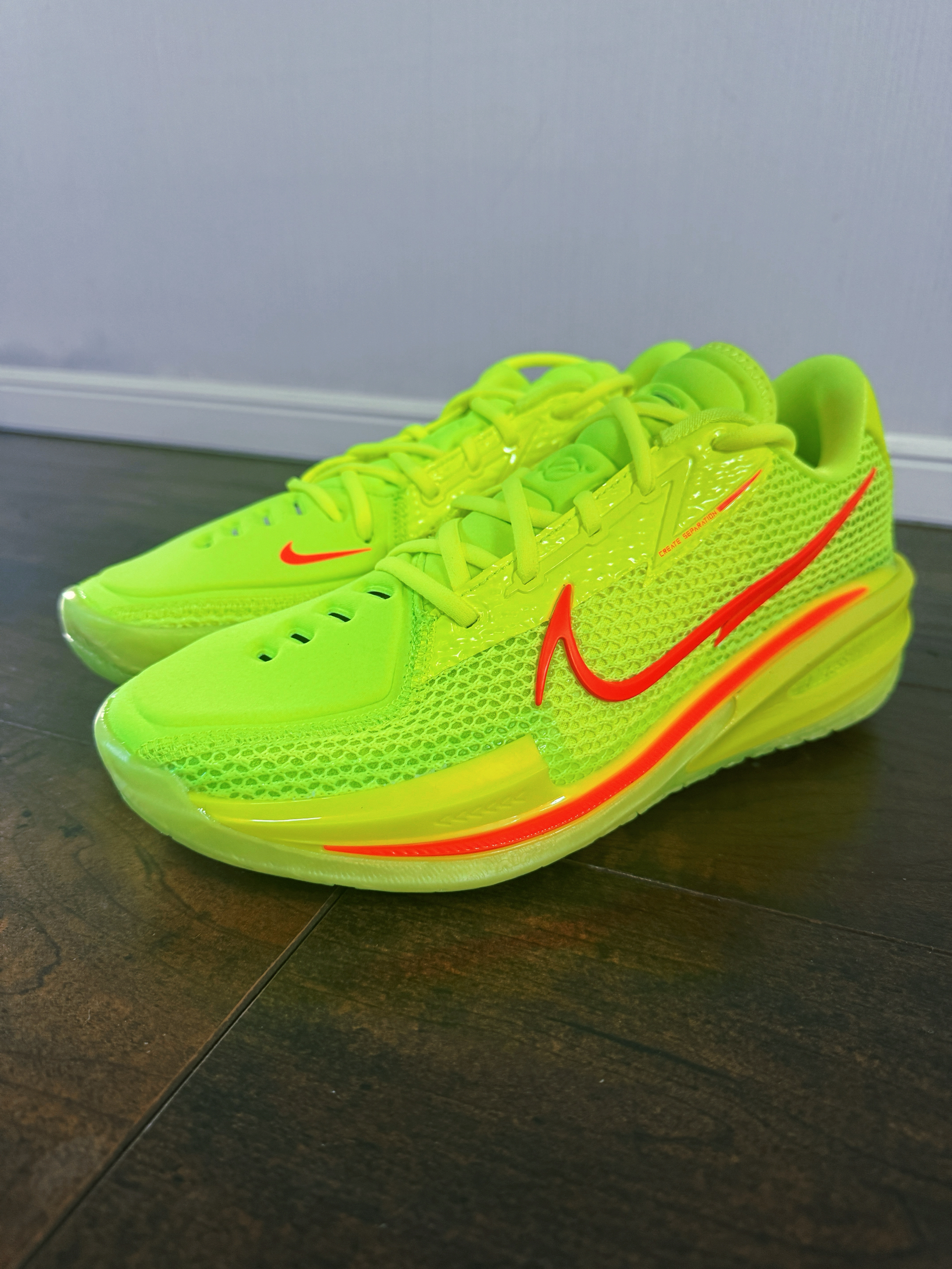 终于原价 中了一双 Nike 的GT CUT 1 这个配色也是很漂亮 很亮眼的荧光色搭配橘红色的EYBL配色 很有质感 期待下一步实战