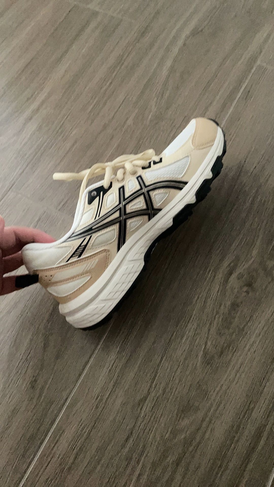 发现一双宝藏鞋!Asics的Gel-Venture 6女款,白米色真的好温柔,像加了点奶茶调的白,看着就清爽。 平时上班搭阔腿裤、周末逛街配牛仔短裙都合适,低帮设计露脚踝,显得腿细细的。最惊喜的是脚感,网面布料很透气,最近三十多度穿也没闷出汗,鞋底软软的,每天走一万多步脚也不酸。 现在基本天天穿,已经成鞋柜里的“劳模”了~