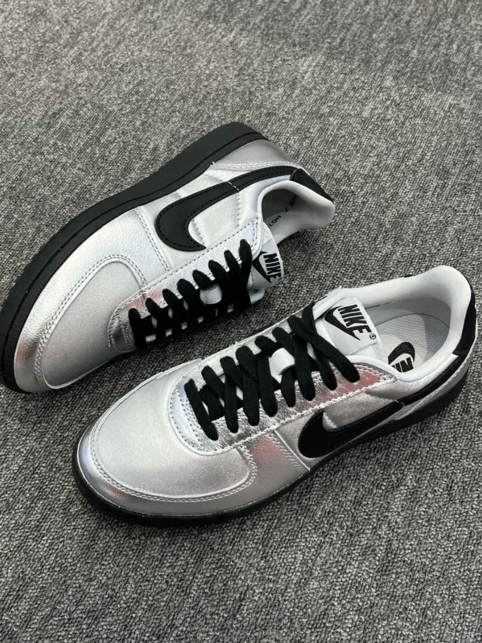Nike这双银黑复古鞋,未来感拉满 银面反光+酷黑钩钩,低调又吸睛,搭卫衣/西装都能炸场~ 脚感舒服到想焊在脚上,复古与潮流的碰撞,出街被追着问 #Nike复古鞋 #银黑配色 #鞋控日常 #酷女孩必备 #Nike #耐克女鞋 #银色