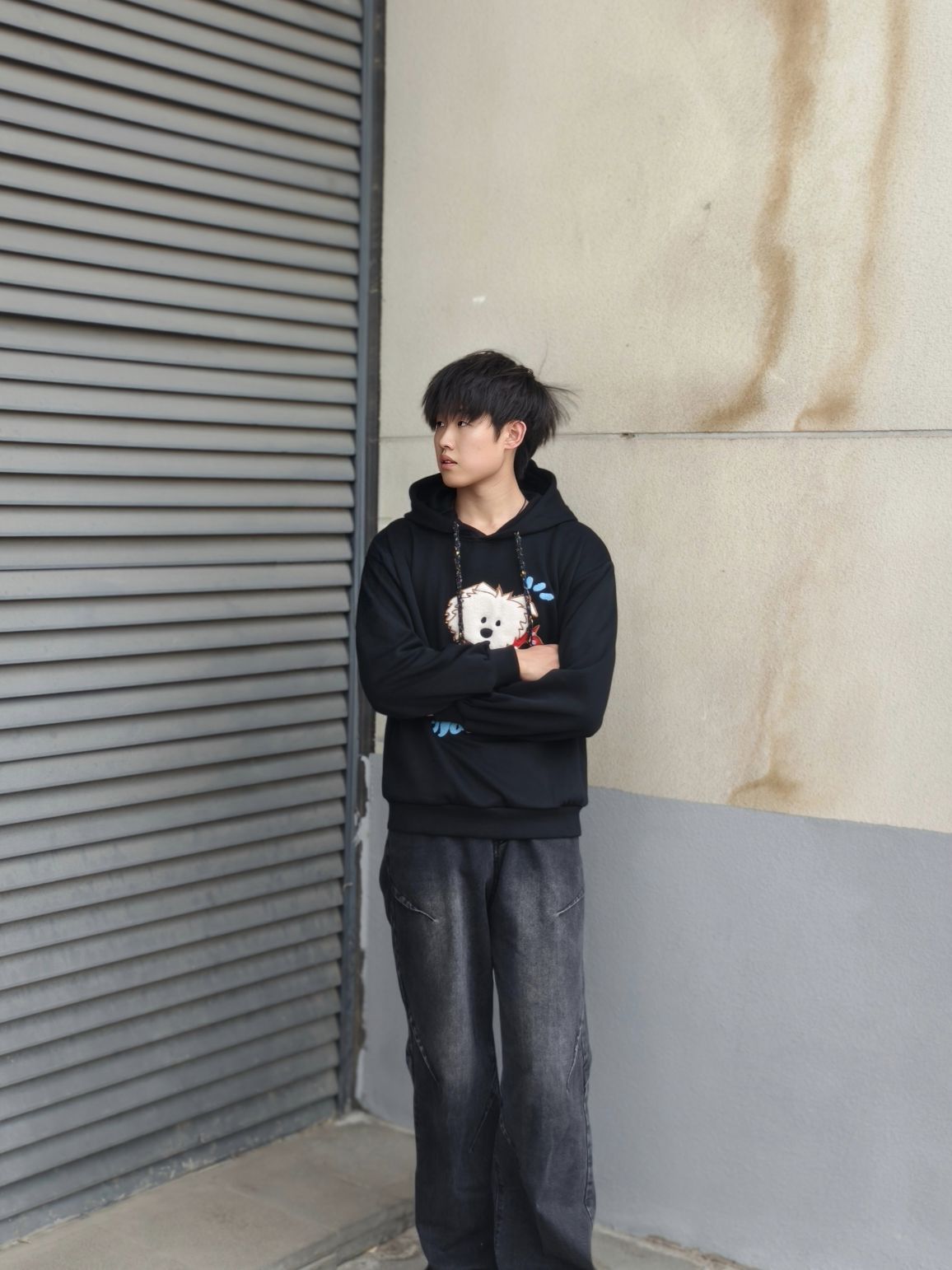 NO Tears 的这款小狗系列卫衣好可爱 前面的刺绣是毛巾立体的 很有质感 短款的版型穿上也很显腿长 日常通勤穿的时候 简单穿一个卫衣搭配一条牛仔裤 真的就很不错[耍帅_blue] 身高体重:178 140斤 尺码:XL