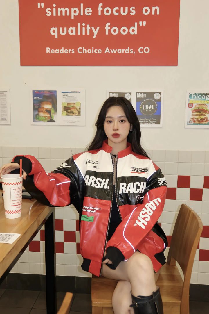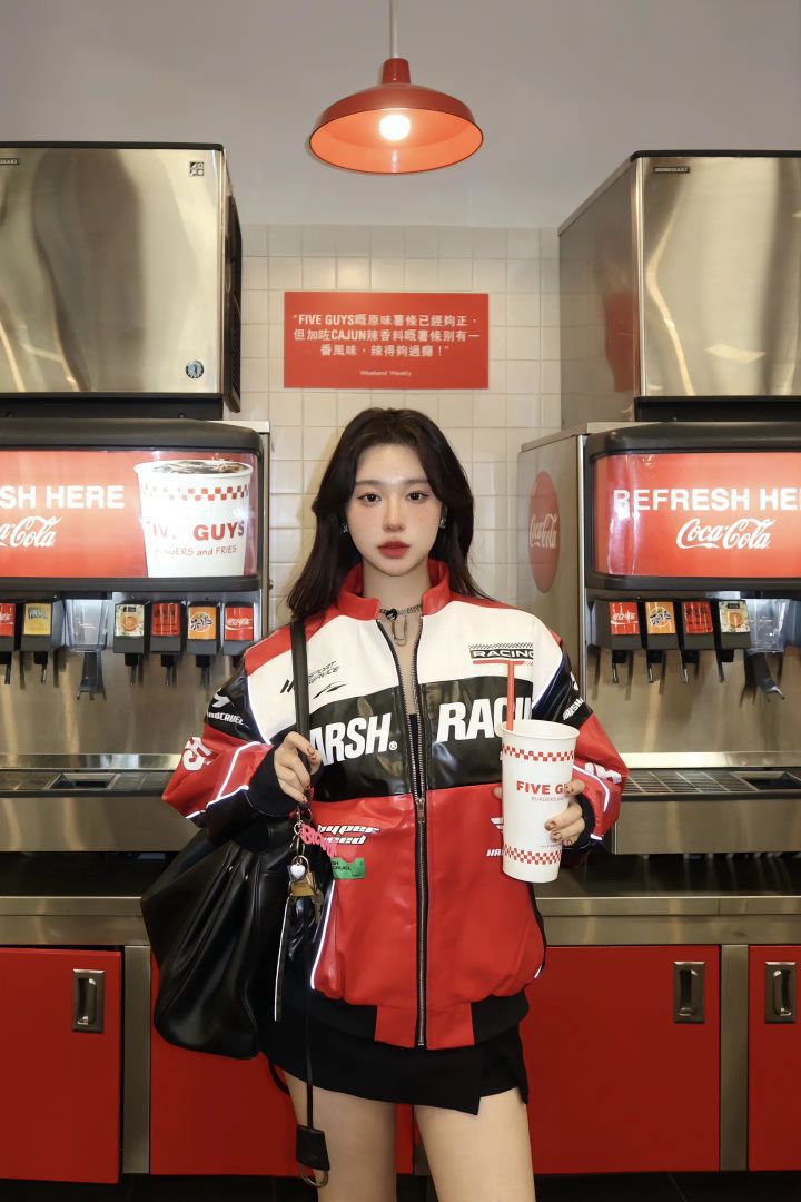 谁懂啊!!!最近挖到一件超绝的赛车夹克,直接把街头酷飒感拉满,穿去Five Guys吃饭被追着问🔗 今天必须给姐妹们分享这份「赛车夹克炸场穿搭公式」,辣到飞起还巨好搭👇 🔥 赛车夹克的「街头基因」 赛车夹克自带「速度与激情」的DNA,鲜明撞色、皮质面料、立体剪裁,把美式街头的狂野和时髦狠狠拿捏🤏 红黑白配色超经典,亮面材质在灯光下会反光,走路都带高光特效,随便一拍都是街头潮人既视感,出片率...