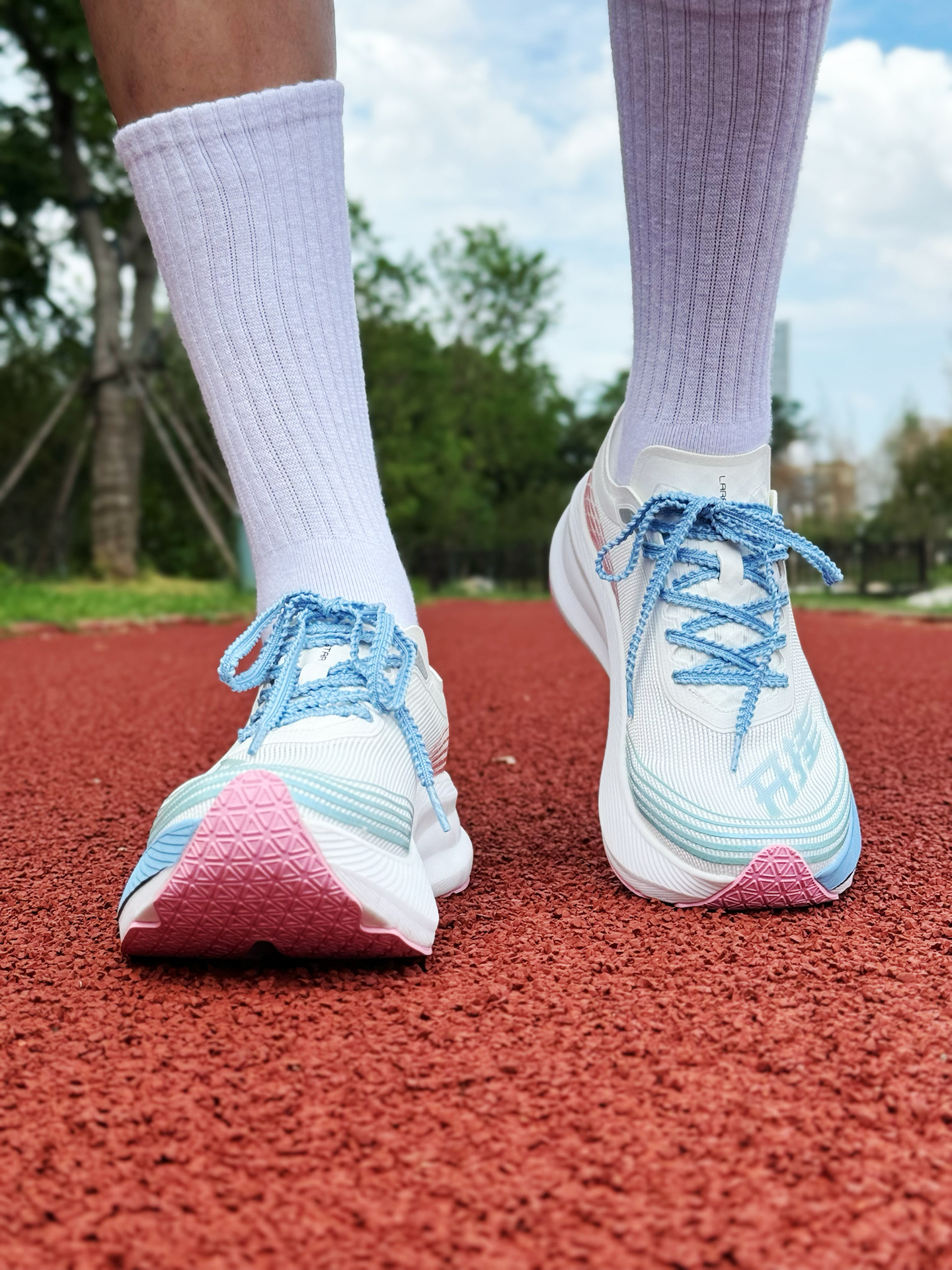 halo 阿迪来了,本期的跑鞋分享是这双 #LARA STAR/劳拉之星 的开挂系列马拉松跑鞋! 该说不说,这双鞋颜值还是挺高的!鞋头印着“开挂”两字!辨识度拉满! 配色上以白粉色为主色调!搭配粉色的麦穗鞋带,整体还是挺帅气的! 配置方面,中底是厚底的EVA发泡材料搭配全掌的铲型尼龙板,上脚轻盈软弹,前后都有上翘的弧度,滚动感十足! 鞋面采用透气的绞综材质!搭配超薄的鞋舌以及自带小枕头的后跟,上...