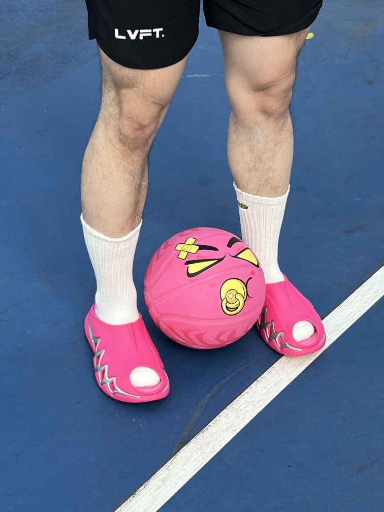 这双 #准者 RIGORER 鲨鱼3️⃣银河🫧上脚真的太帅啦😎 果粉的配色给人一种眼前一亮的感觉 再搭配上他们家的粉色篮球真的太搭了 鞋子上脚很舒服很柔软侧边的设计很贴合脚型防滑耐磨很贴心🥰 #准者鲨鱼拖鞋3 #一双拖鞋穿遍夏天 #百搭休闲宝藏拖鞋分享 #买鞋抄作业 #得物我要上热门拖鞋吧