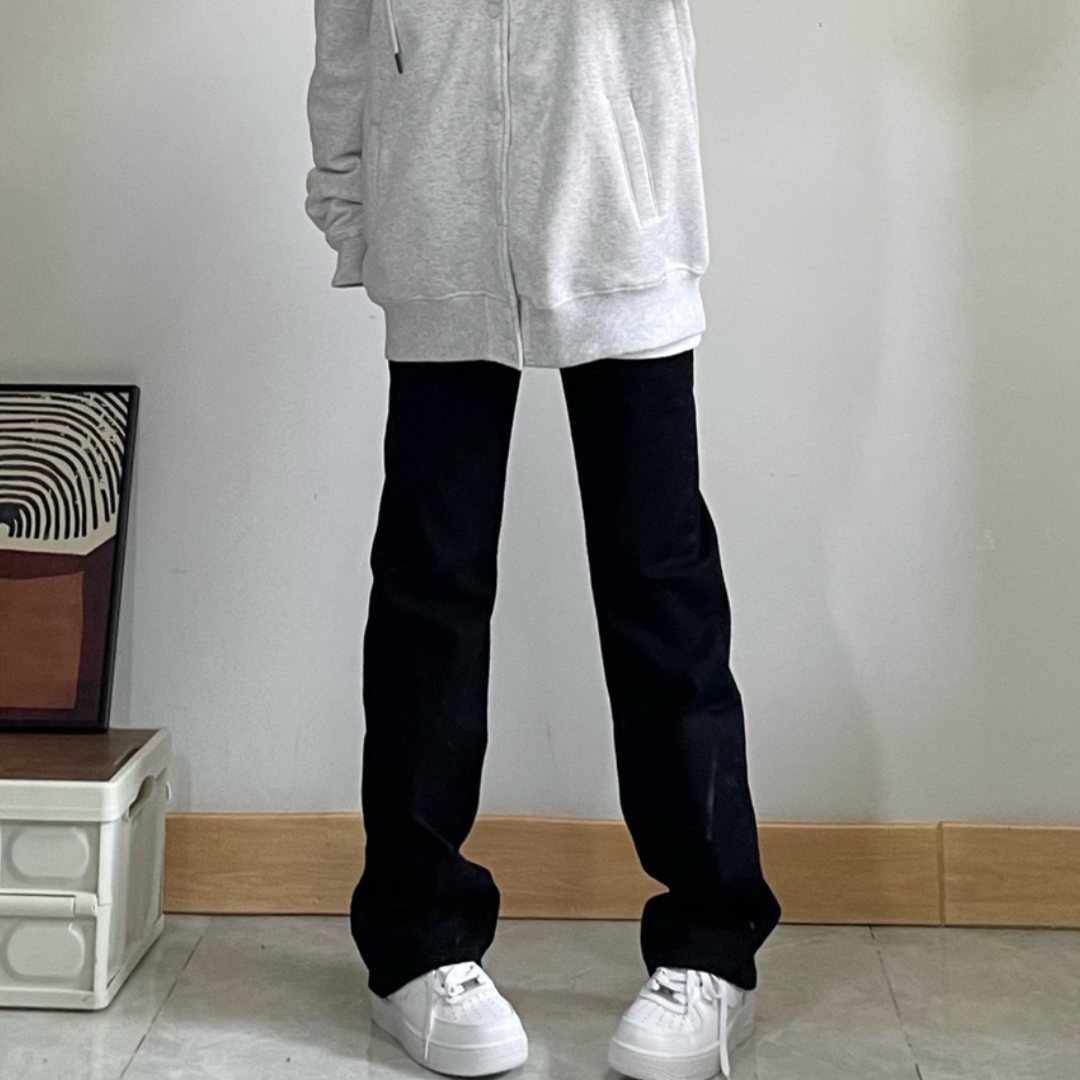 救命!这条黑牛仔裤真的绝到飞起💥 高腰+微喇设计,把腿型修饰得笔直修长,像开了自动拉腿特效🦵 面料软乎乎又有筋骨,日常穿完全不勒,舒适度直接拉满✨ 搭配简单的白T就很炸,清爽又街头,走在路上感觉自己是酷盖本盖😎 不管是配运动鞋、板鞋还是小皮鞋,都能搭出不同风格,一裤解锁N种穿搭,谁穿谁爱上,妥妥的衣柜刚需神裤👖