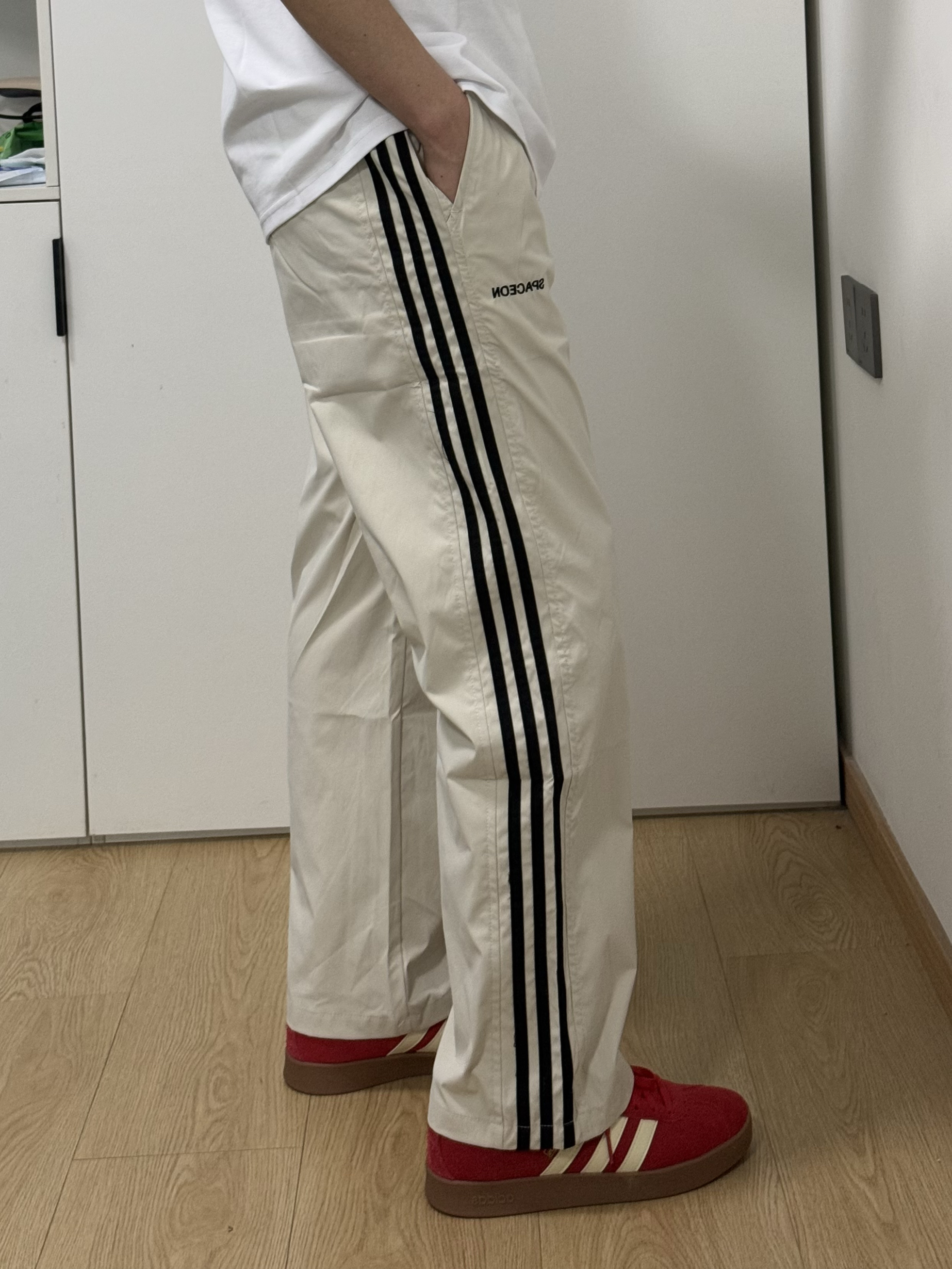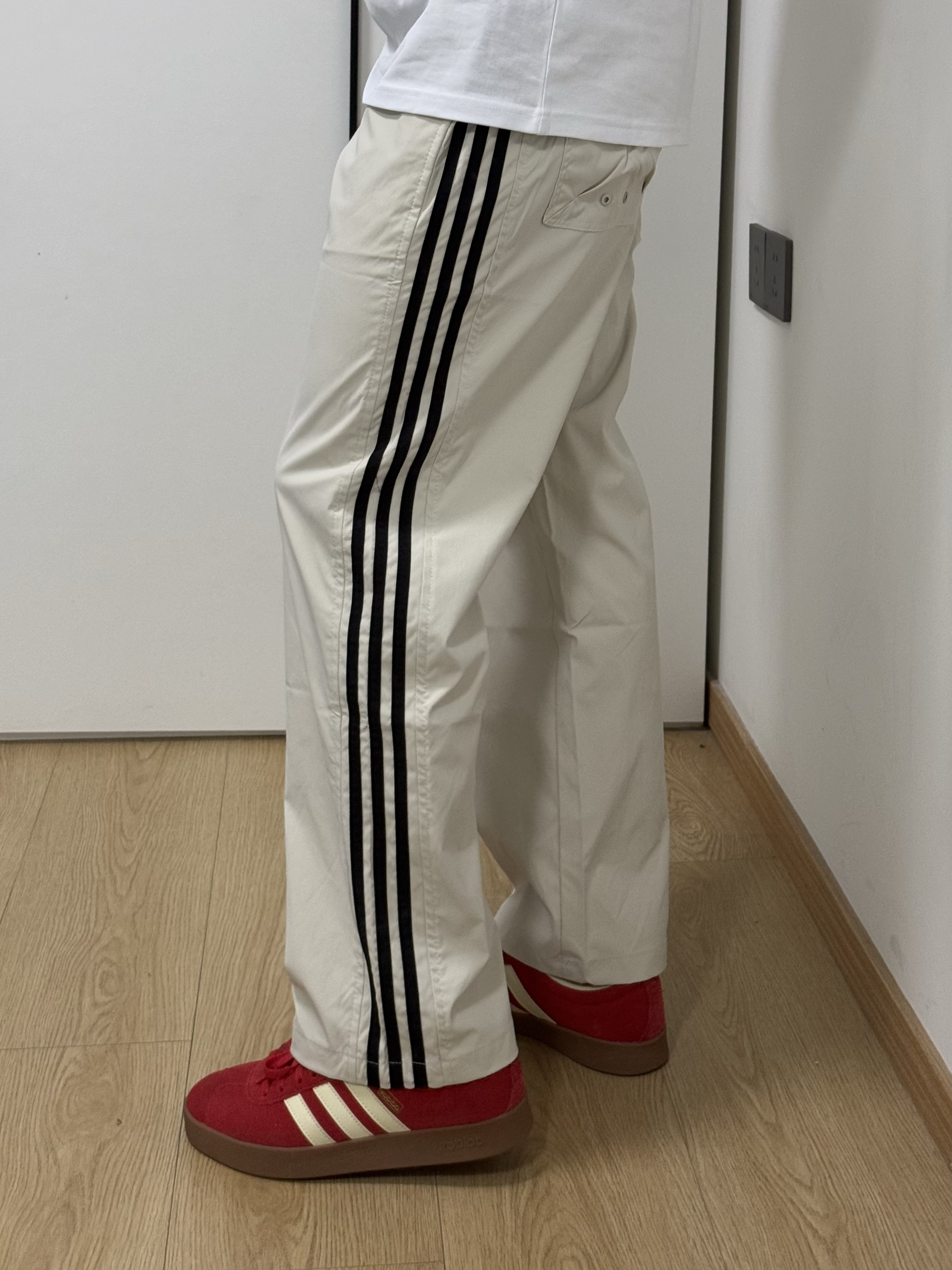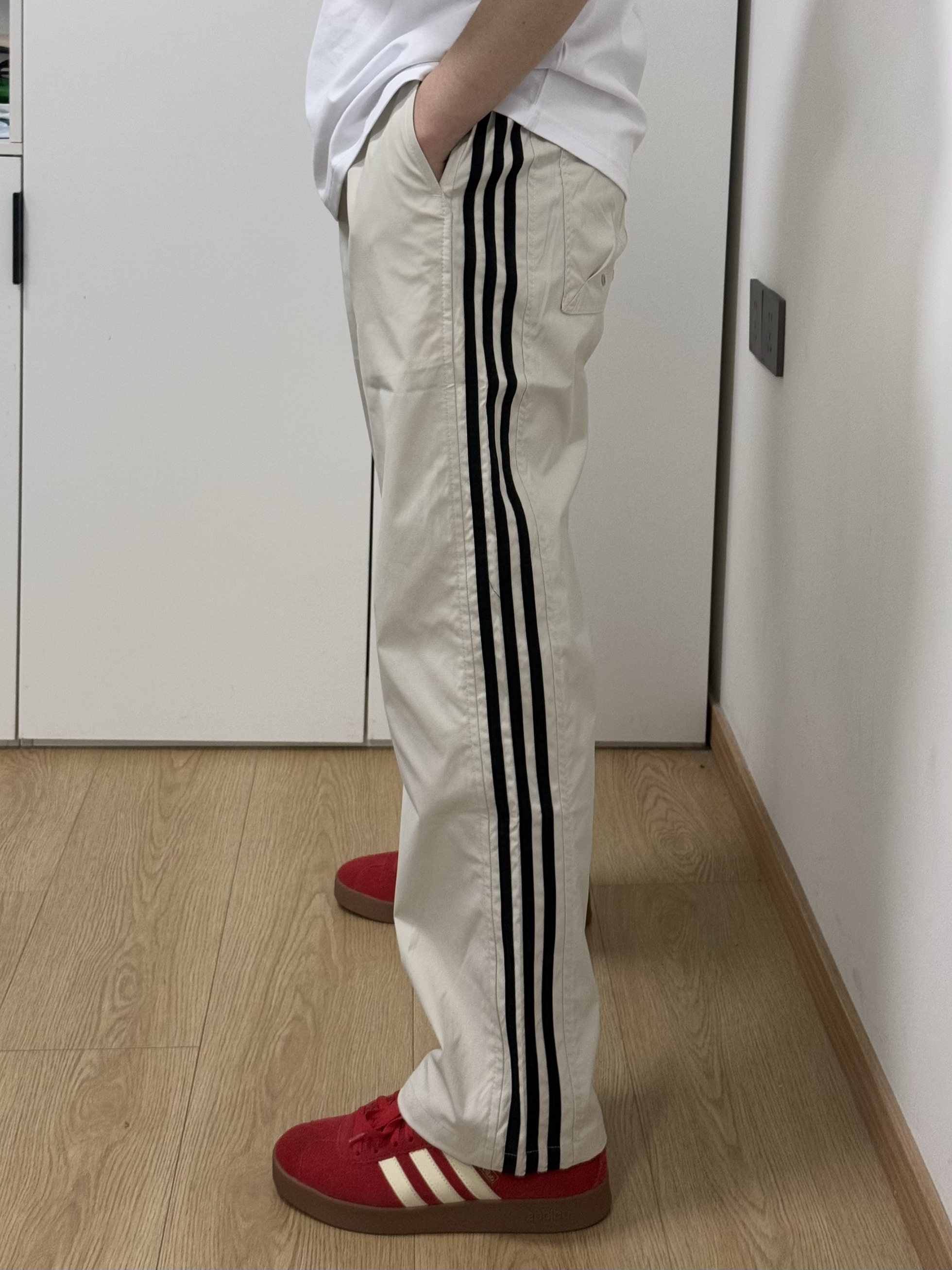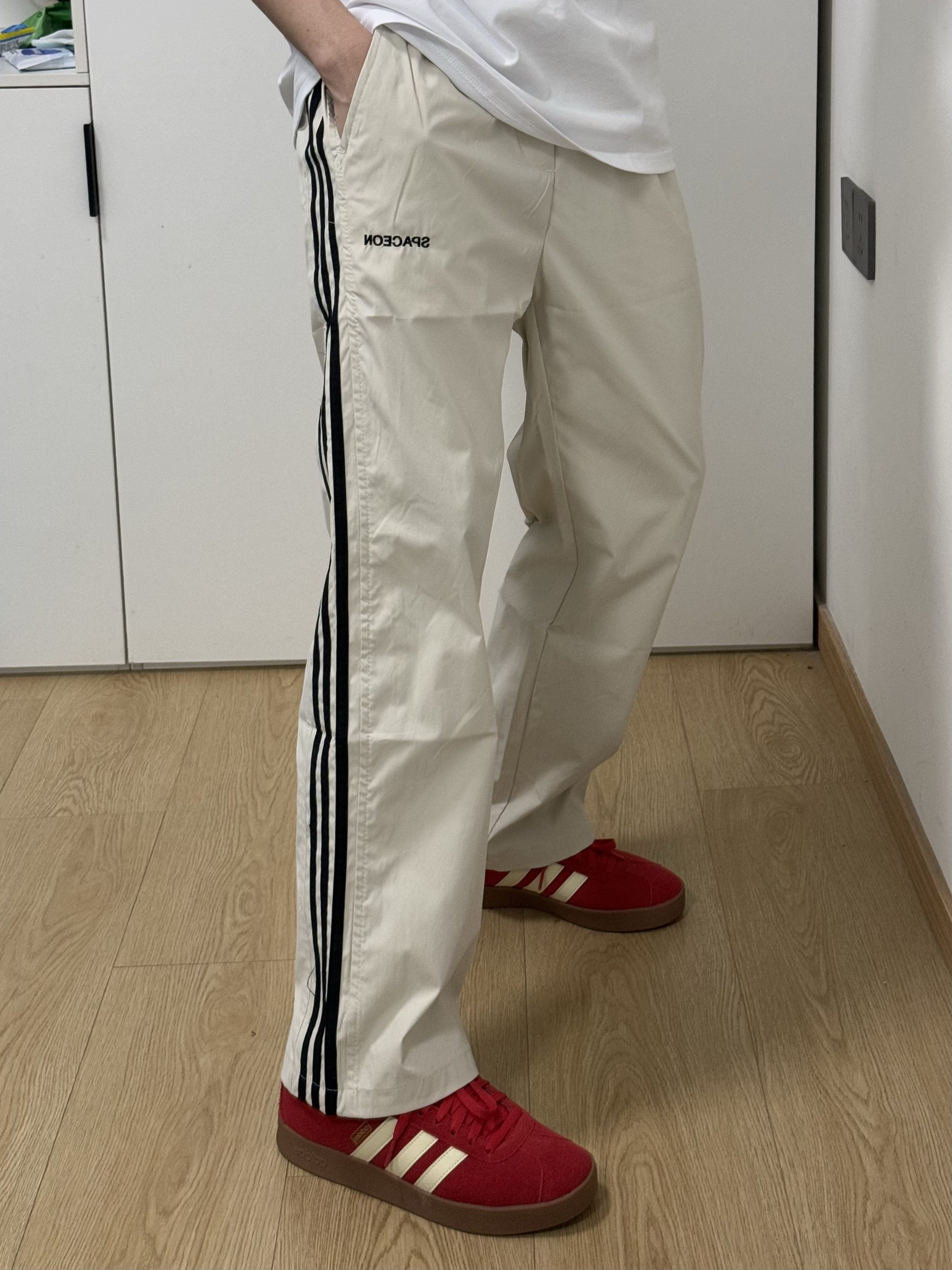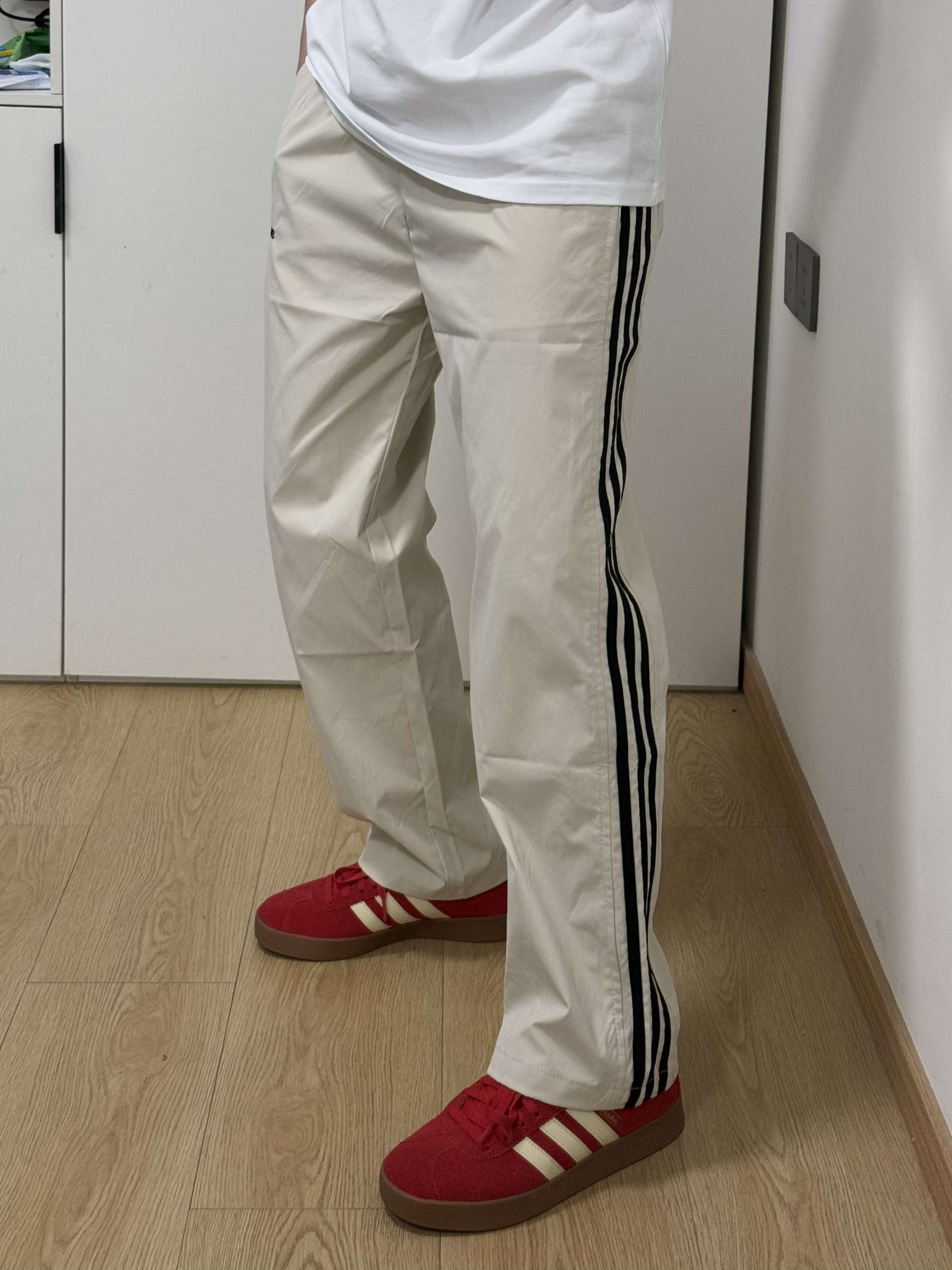 啊啊啊随手买的条纹休闲裤好好看啊😻搭配一双红色阿迪德训鞋真的绝了!!!