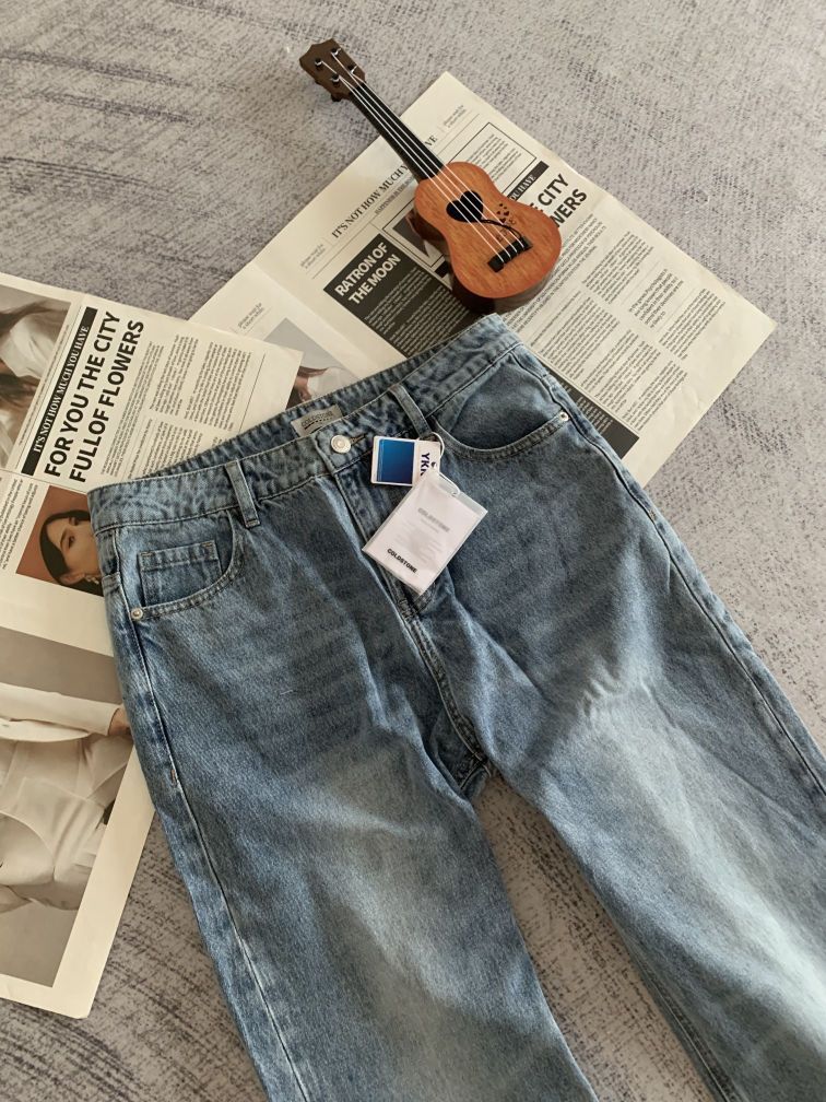 绝了!!! 这条COLDSTONE雪花牛冰蓝牛仔裤棉质面料软乎乎,夏天穿透气不闷。宽松阔腿直筒显腿长,整体的颜色跟版型非常不错搭短上衣、T恤都好看,裤兜、缝线细节也精致,四季穿都合适~