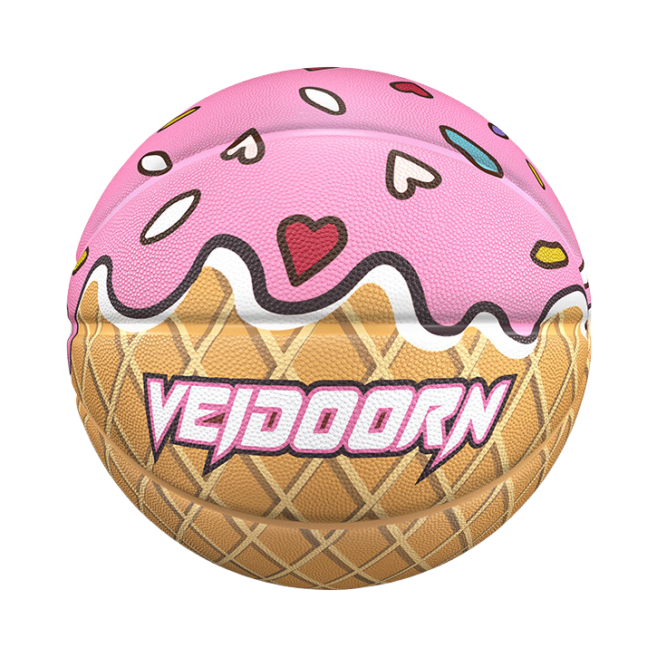 今天打球,来一个冰激凌甜筒篮球🏀 黄色拼粉色,图案好炫酷🆒 橡胶手感非常细腻 篮球的弹性适中, 户外篮球场或者室内木地板球场都可以! 快来一起打球吧 #维动VEIDOORN #维动 @维动穿搭助手