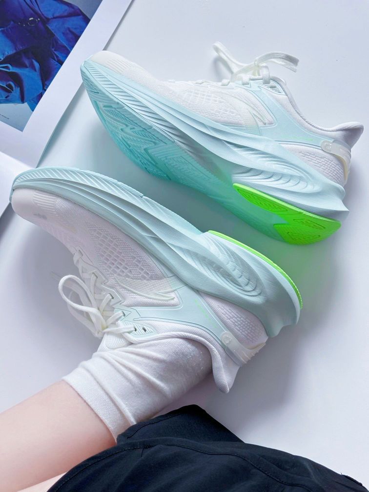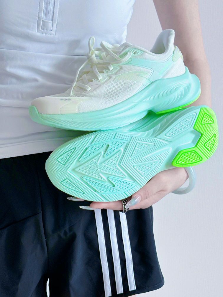 谁懂这种感觉!夏天选跑鞋真的像在“渡劫”——😮💨要么捂脚闷汗像穿棉鞋,要么鞋底硬得像踩砖头,直到上脚这双安踏毒刺6,直接被圈粉到舍不得脱下来!💖 先尖叫一下这个配色!✨薄荷奶绿+白的组合,像把整杯加冰的青提气泡水穿在了脚上!🍹夏天光脚穿(或者搭白袜子),露脚踝那截清爽到发光,配运动裤、短裤都不占地,每次穿出门都被问链接,颜值党直接狂喜!🥳 但最绝的还是上脚体验——真不是吹,这鞋底软弹到像...
