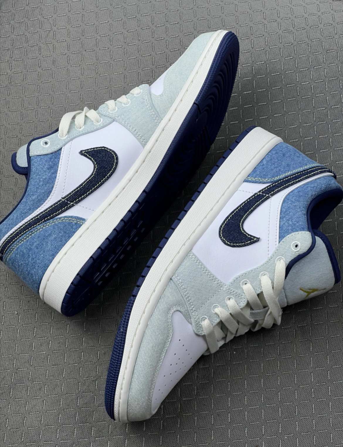 颜值即正义,百搭不挑人 这双的白蓝配色真的长在审美点上!干净的奶白为主色调,鞋头、鞋身侧边和后跟点缀清爽的浅蓝,像把蓝天白云踩在脚下,清爽又利落,完全不挑季节——夏天配短裤清爽透气,春秋搭牛仔裤、运动裤慵懒随性,甚至冬天配束脚裤露个鞋边都超有层次感。低帮设计利落不拖沓,能悄悄拉长脚踝线条,脚型看起来更修长,日常出街、上学通勤回头率绝对稳了!鞋身经典的飞翼logo和Swoosh标志低调又有辨识度,...