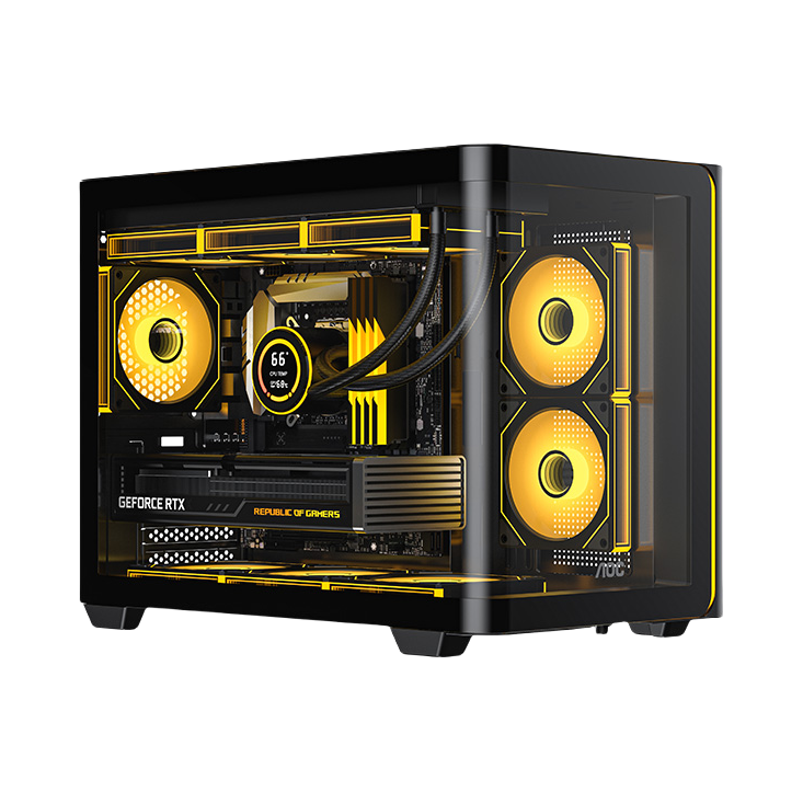 AOC震天弓CG355B黑色机箱体验超预期!全黑化设计搭配硬朗线条,质感沉稳大气,电竞风范十足。内部空间规划合理,支持ATX大板和各种长显卡,安装过程顺畅无压力。优秀的散热风道设计,前后上下多风扇位,夏天运行也保持清凉。细节到位,理线槽丰富整洁,侧透钢化玻璃清晰稳固。用料扎实,稳固耐用,无论是颜值还是实用性都无可挑剔,非常值得推荐给追求品质的电竞玩家!