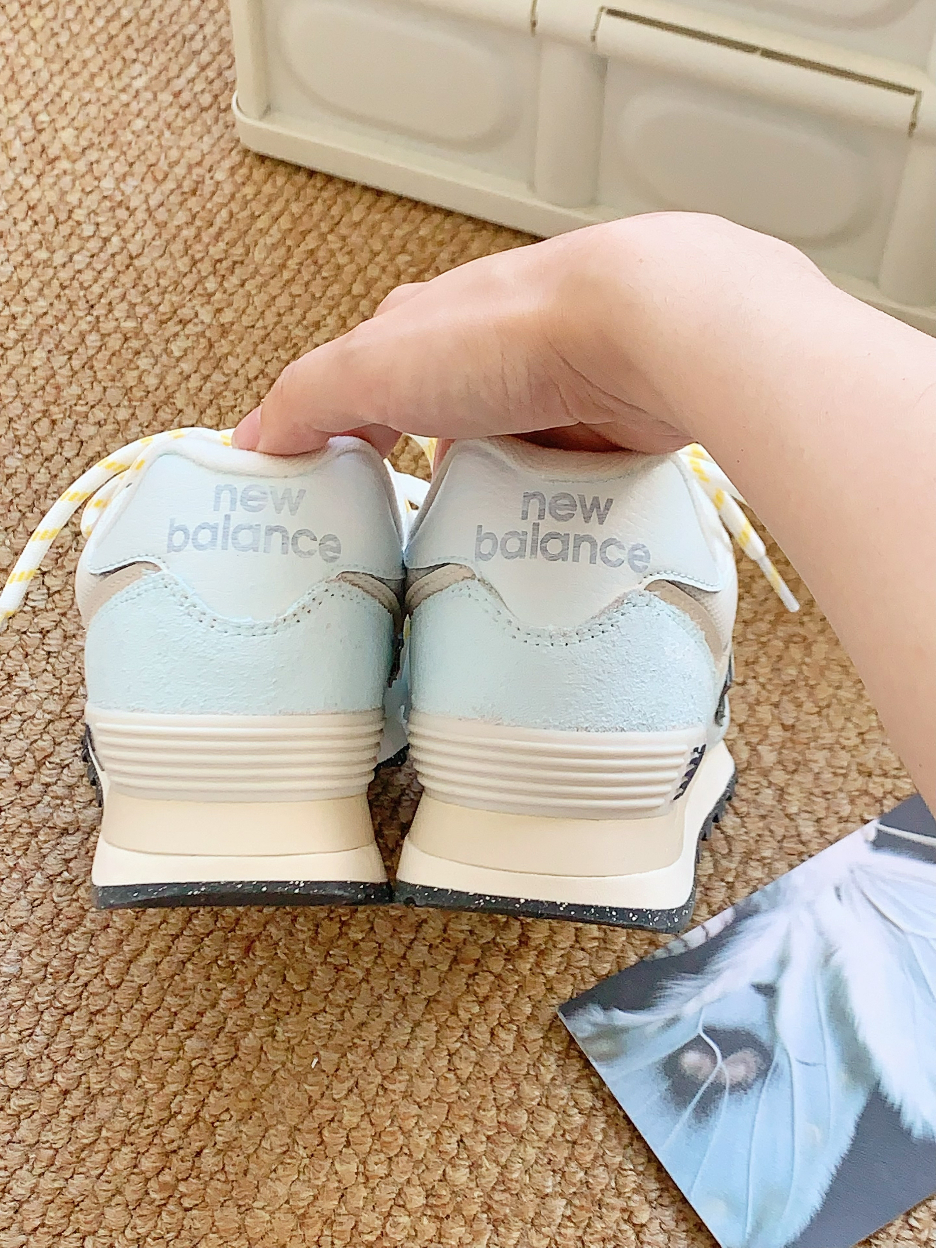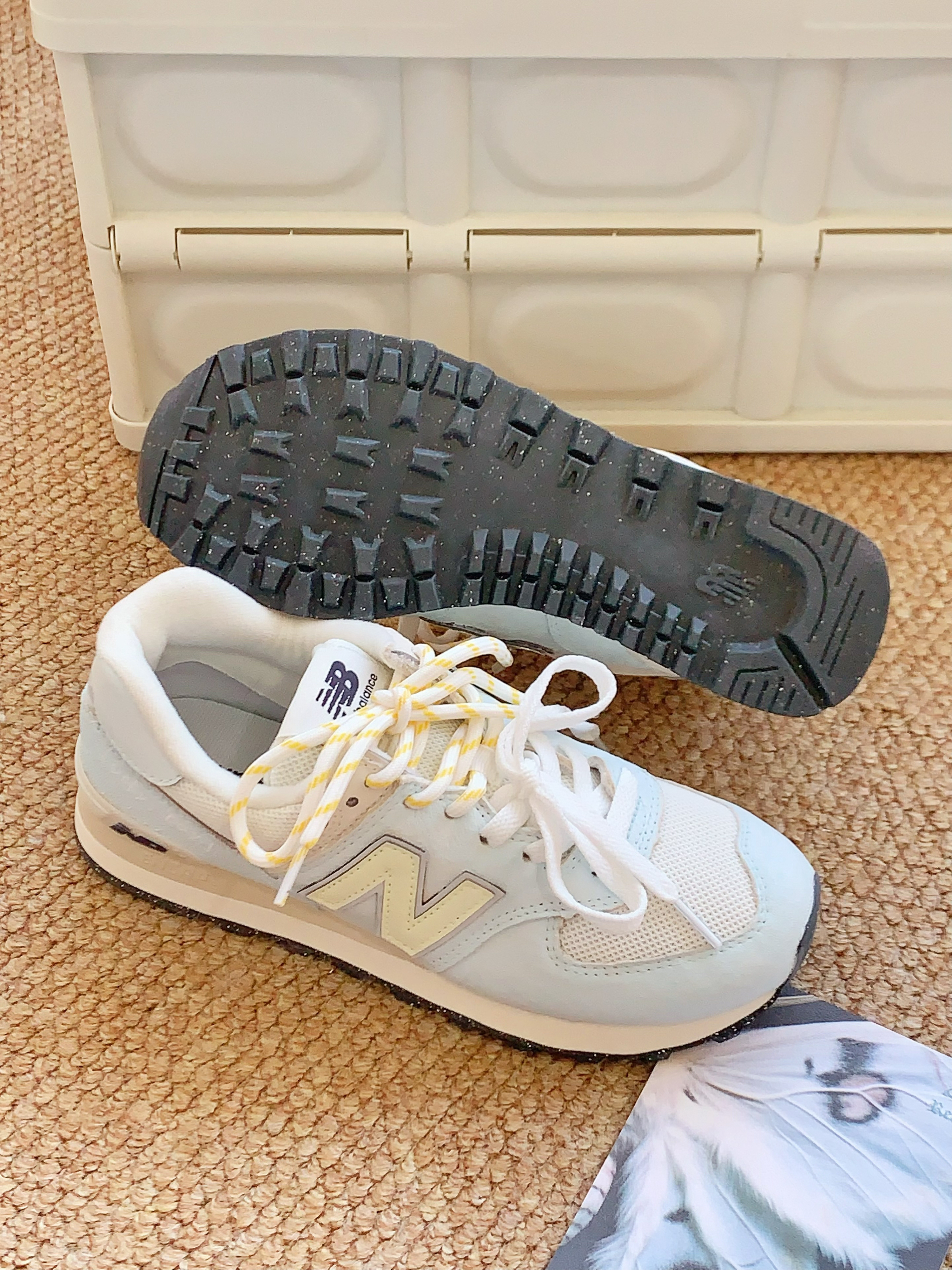 New Balance 这双运动鞋,简直长在我的审美点上! 浅色系的鞋面超温柔,搭配上经典的“N”字logo,简约又不失辨识度。鞋面材质也很绝,网面拼接皮革,透气又有质感,走路的时候,能明显感觉到风在脚边穿梭,夏天穿一点都不闷。 再看看这鞋带,黄白相间的配色,一下子就打破了纯色鞋面的单调,增添了几分俏皮感。鞋底的纹路很深,抓地力超强,不管是日常压马路,还是偶尔小跑一下,都超稳当 。 而且上脚巨舒...