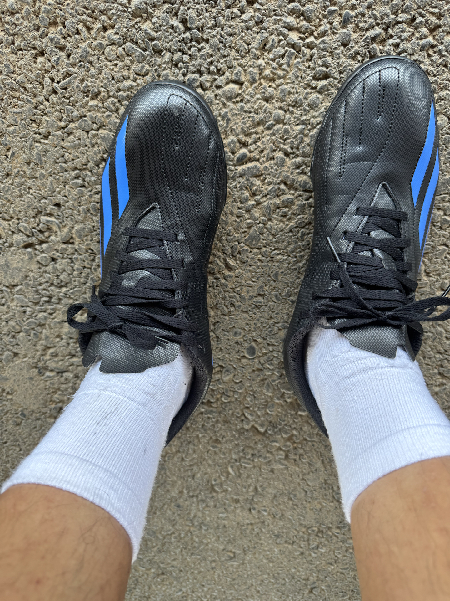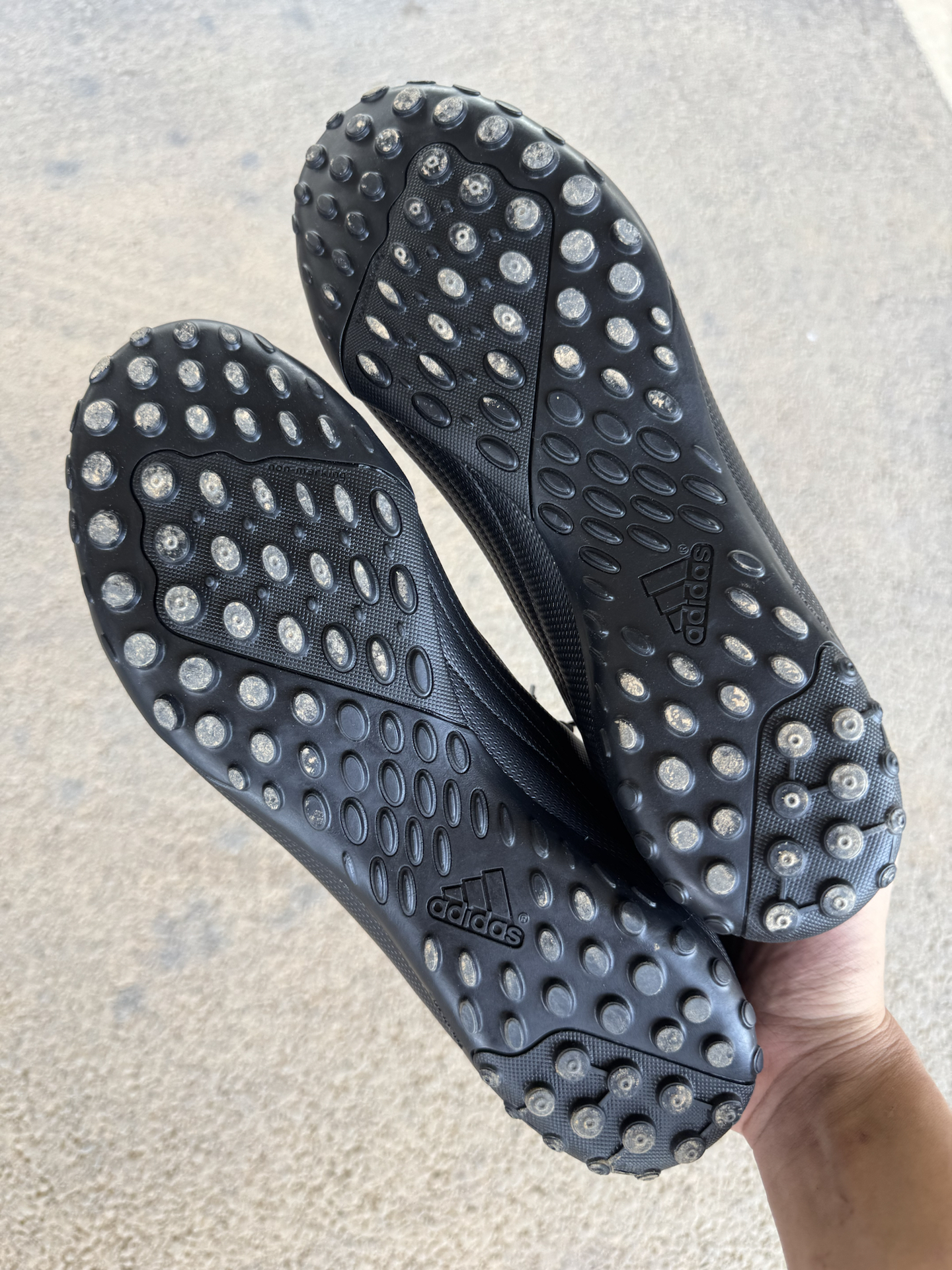 Adidas Deportivo 2 TF 阿迪达斯 碎钉足球鞋 ✅鞋面部分:整体以黑色为主色调,鞋头有阿迪经典三条杠的设计,辨识度还是很高的,也很耐脏。鞋面使用的是合成革材质,这种材质贴合脚面,我上脚后比较舒服,没有磨脚的情况,鞋面还采用了印压车线纹理工艺,不仅增加了鞋面的耐磨性,在触球时还能提供更清晰的反馈。 ✅大底部分:采用密集分布的TF碎钉,纹路很深,抓地力是很不错的,这种碎钉的布局也兼顾...