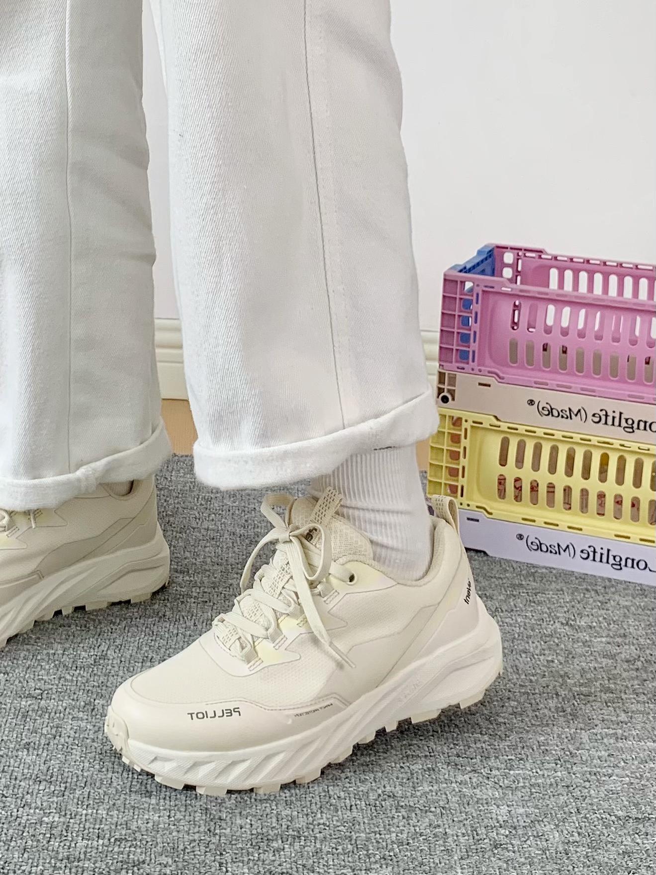 我最近发现了一双超棒的运动鞋👍。奶油蛋糕配色,巨乖~鞋身线条很有设计感。鞋底软弹,走路毫无笨重感👏。而且搭配小裙子、牛仔裤都好看✨。不过浅色鞋底可能容易脏这点得注意。适合日常、户外徒步等场合~推荐给大家!