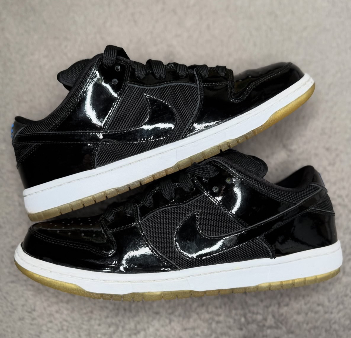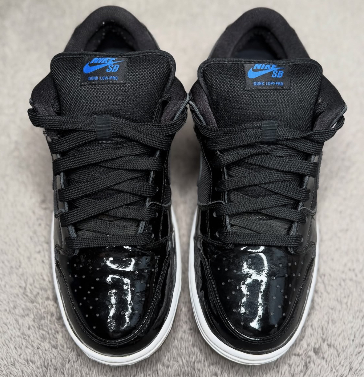 Nike Dunk Low Pro SB 黑武士💥 漆皮拼接网面超有质感,黑金白配色经典又炸场,鞋舌蓝标点睛✨ 街头酷盖必备,细节藏满小心思,谁穿谁是潮流信号灯,爱惨这复古街头感~ Nike标,细节到位,上脚好看又好搭,街头感拉满,爱鞋的别错过 。