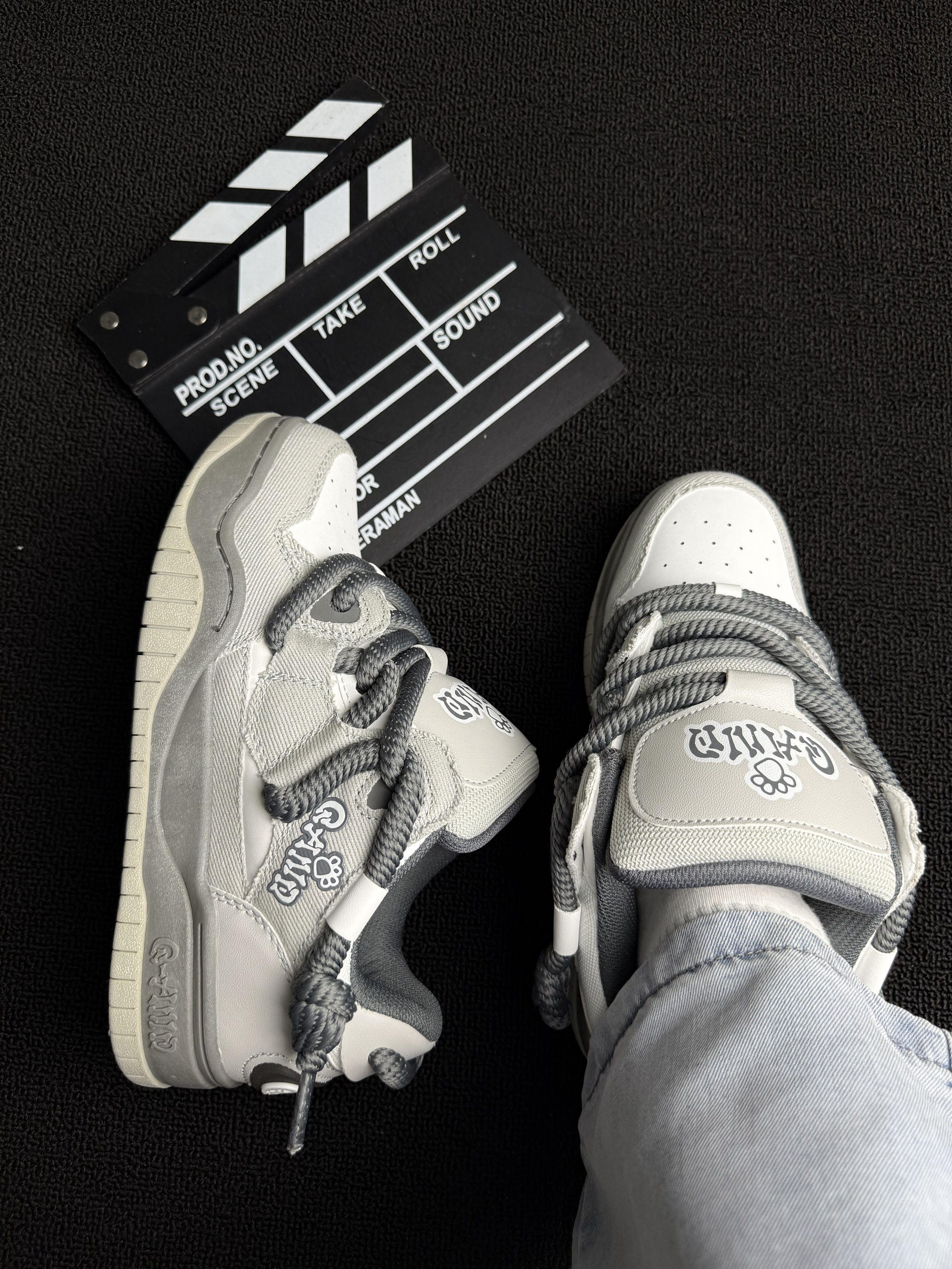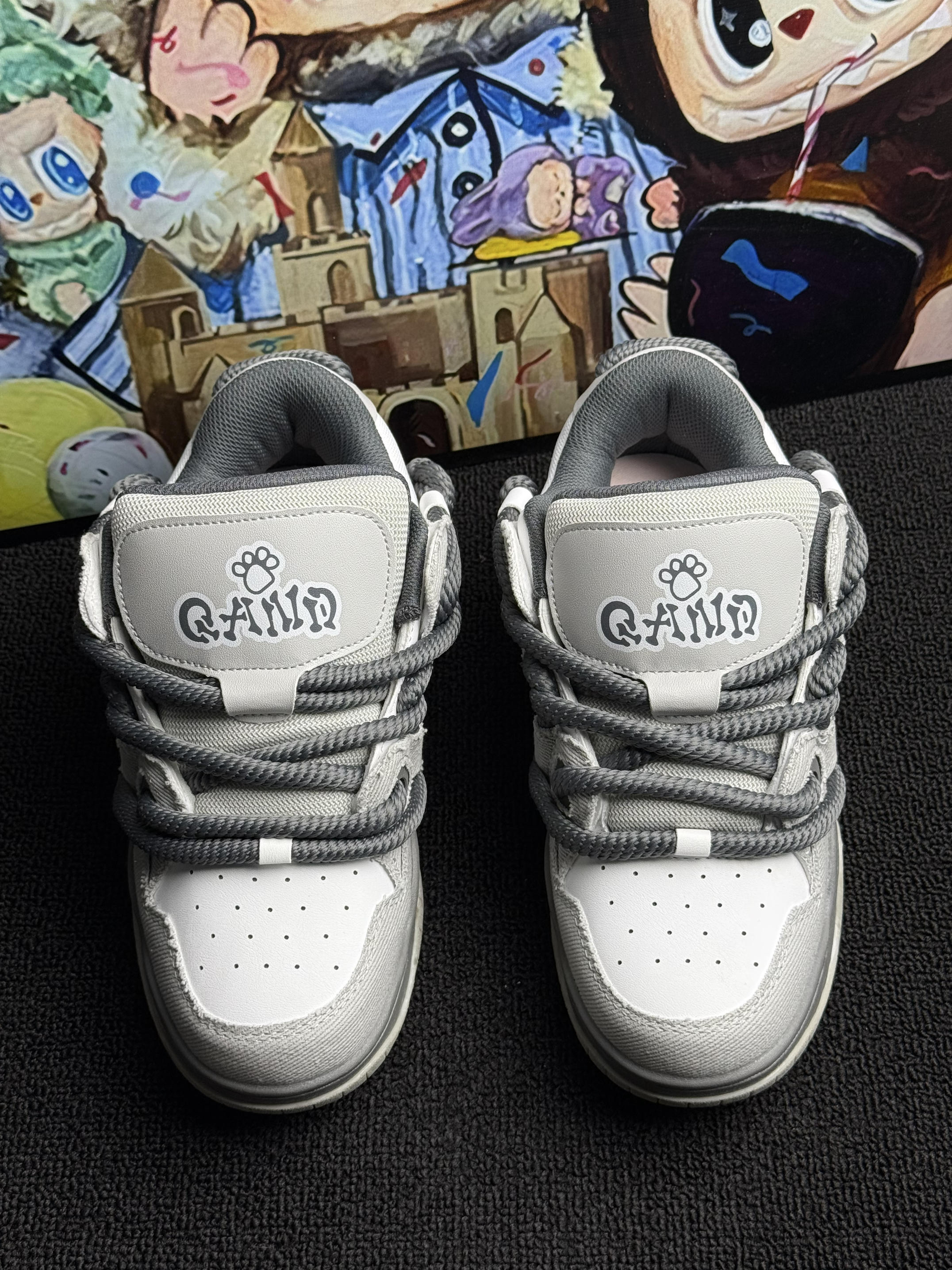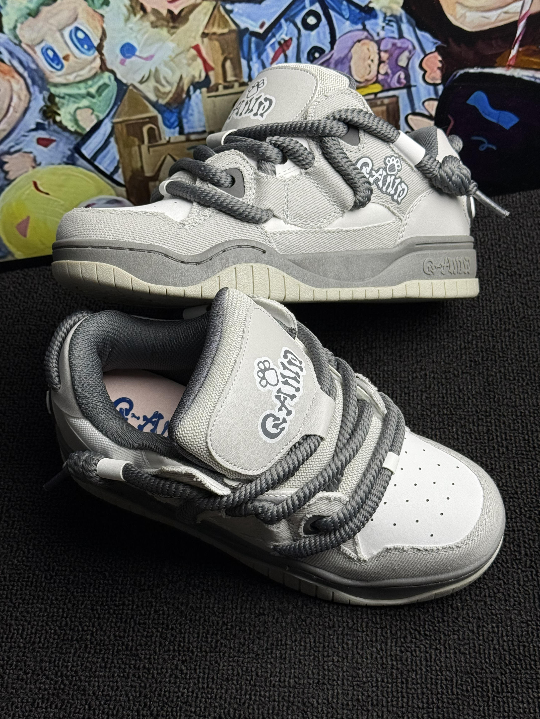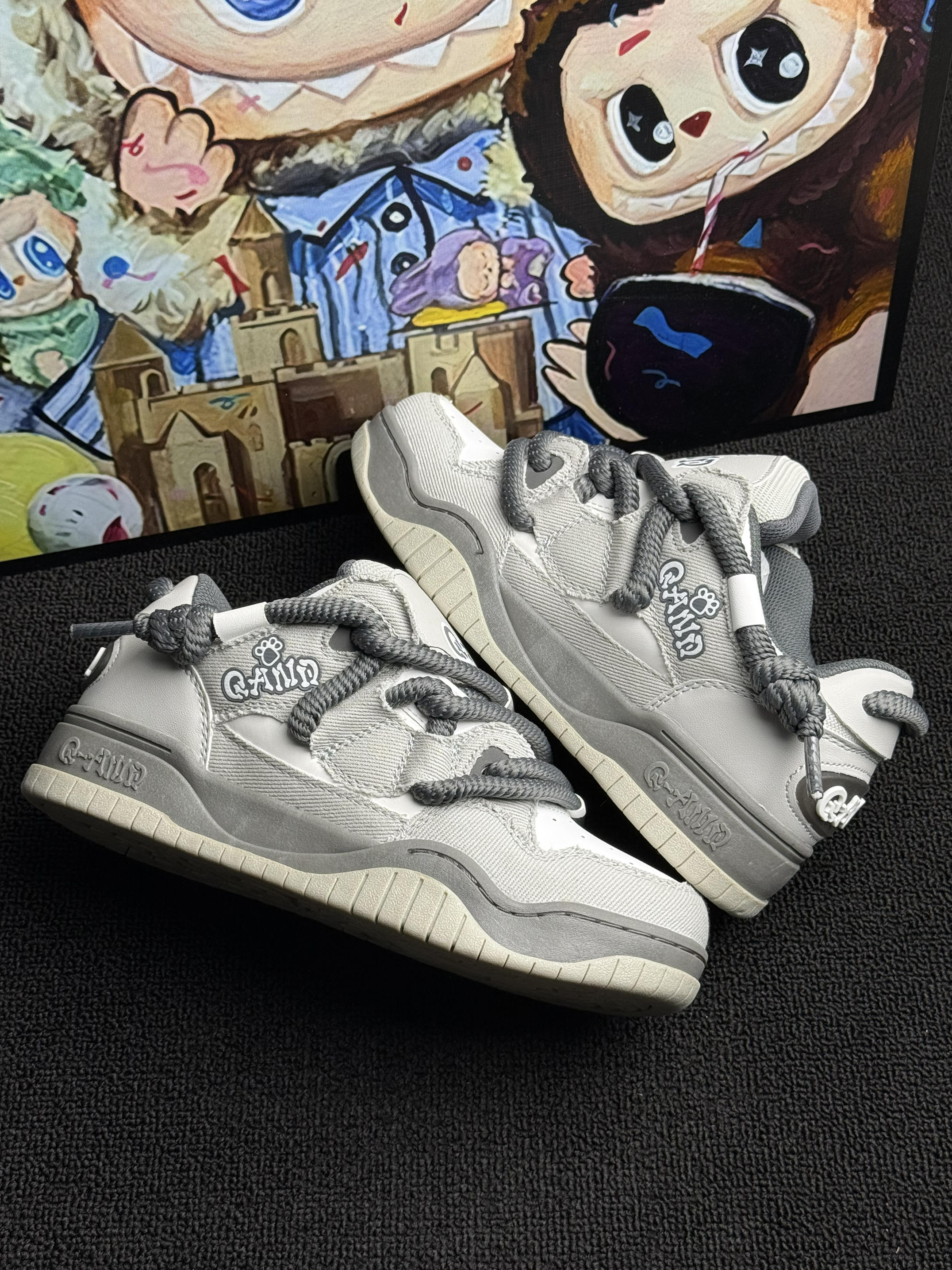 这双 Q-AND 板鞋👟暗影灰绝了!粗鞋带+后跟logo设计超戳我~奶酷奶酷的!上脚像踩舒芙蕾🍰软fufu不磨脚🦶,暴走逛吃都没在怕!配牛仔裤或者休闲裤就出门,学生党🎒上班族闭眼冲!可爱百搭还耐造,疯狂心动💓
