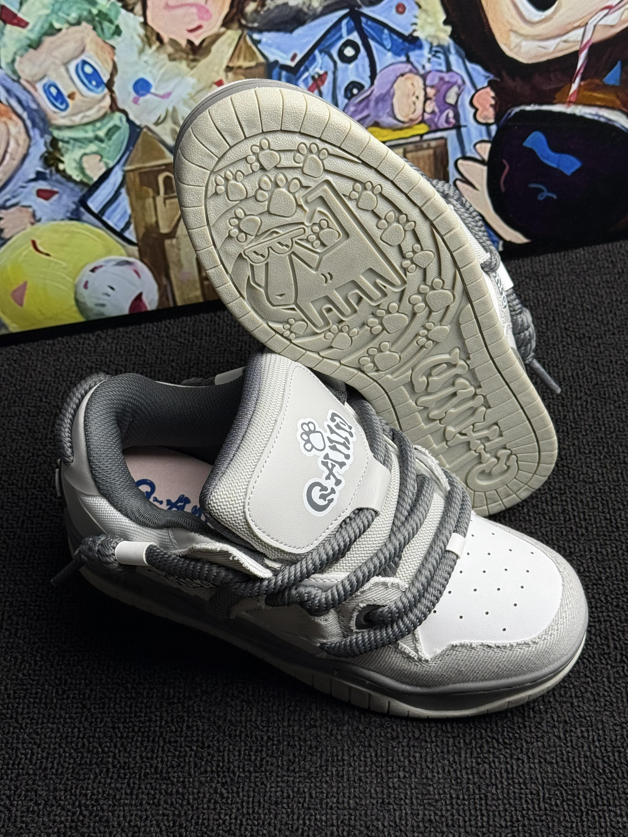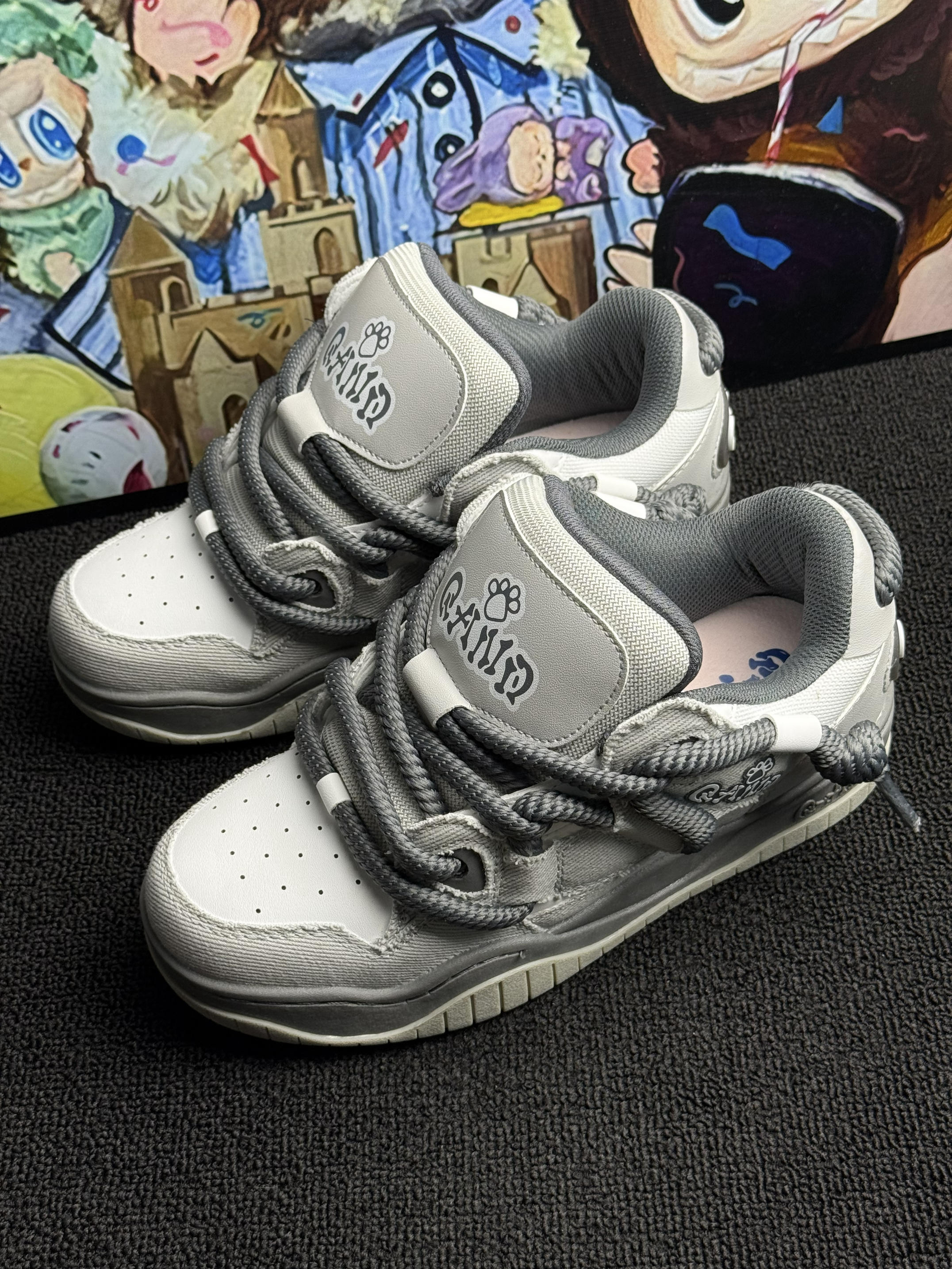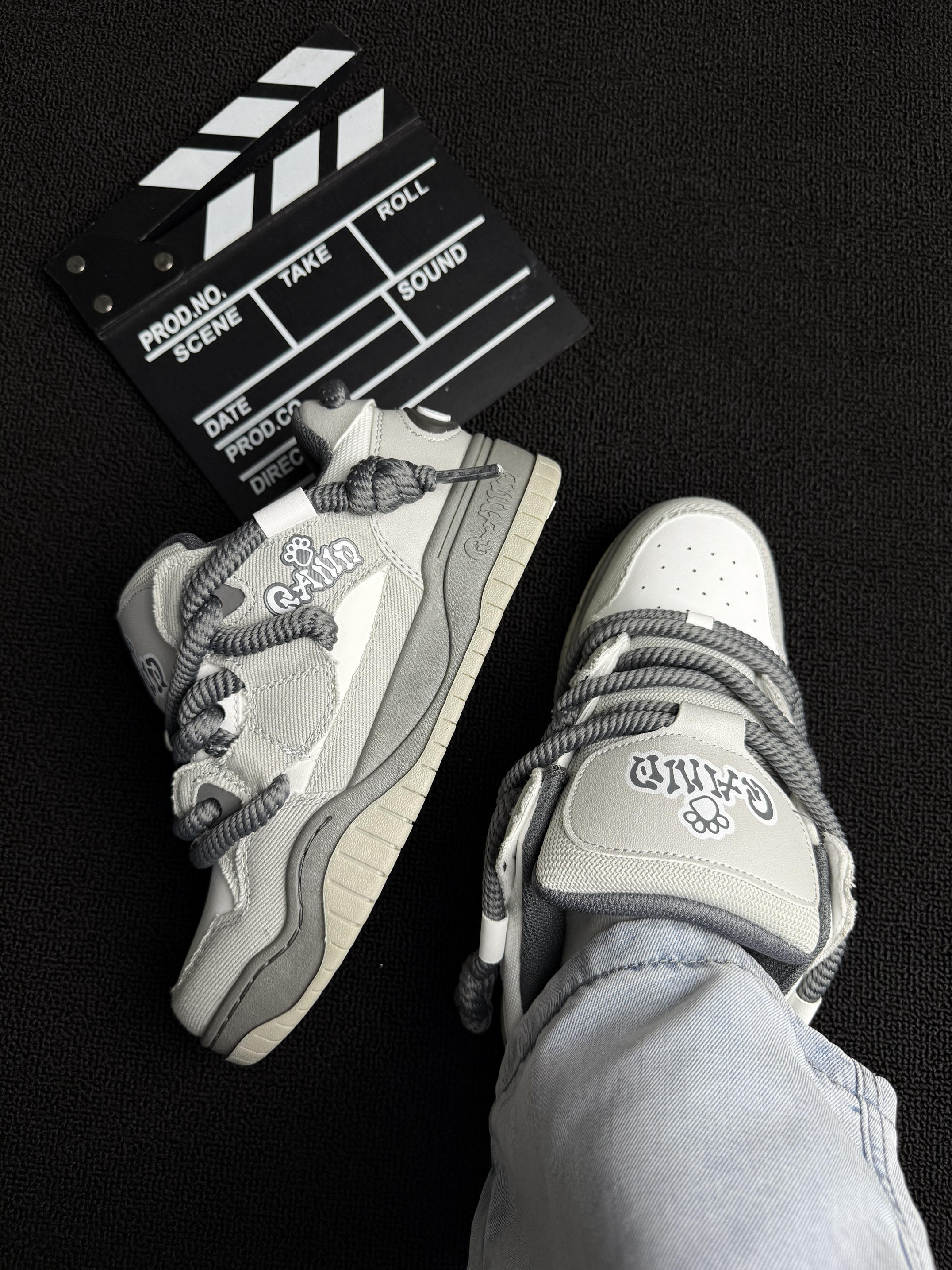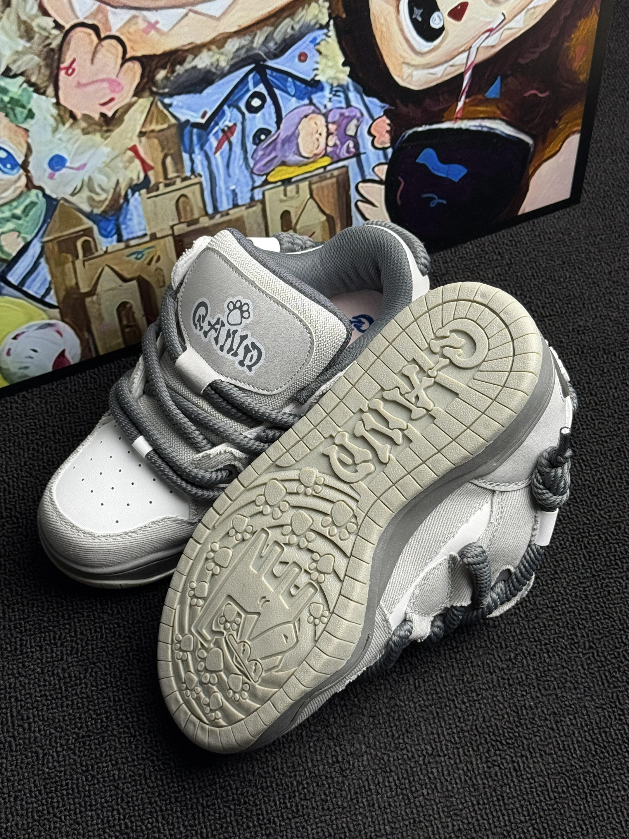 这双 Q-AND 板鞋👟暗影灰绝了!粗鞋带+后跟logo设计超戳我~奶酷奶酷的!上脚像踩舒芙蕾🍰软fufu不磨脚🦶,暴走逛吃都没在怕!配牛仔裤或者休闲裤就出门,学生党🎒上班族闭眼冲!可爱百搭还耐造,疯狂心动💓