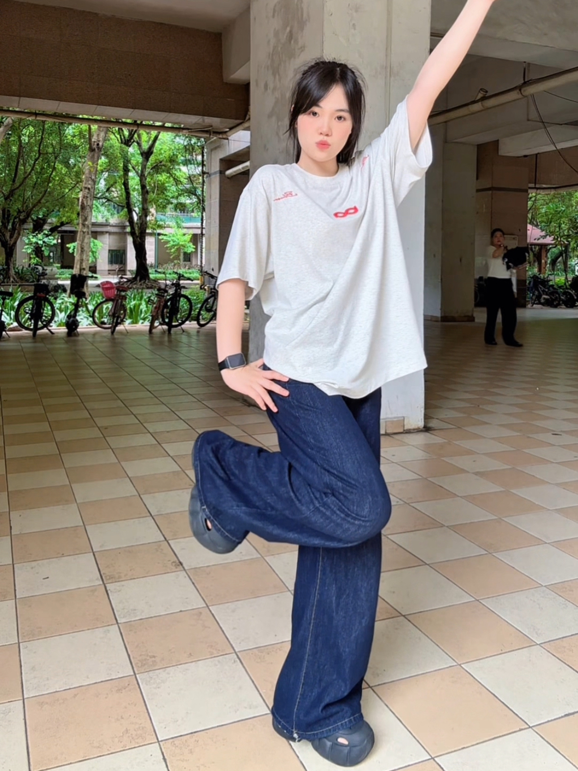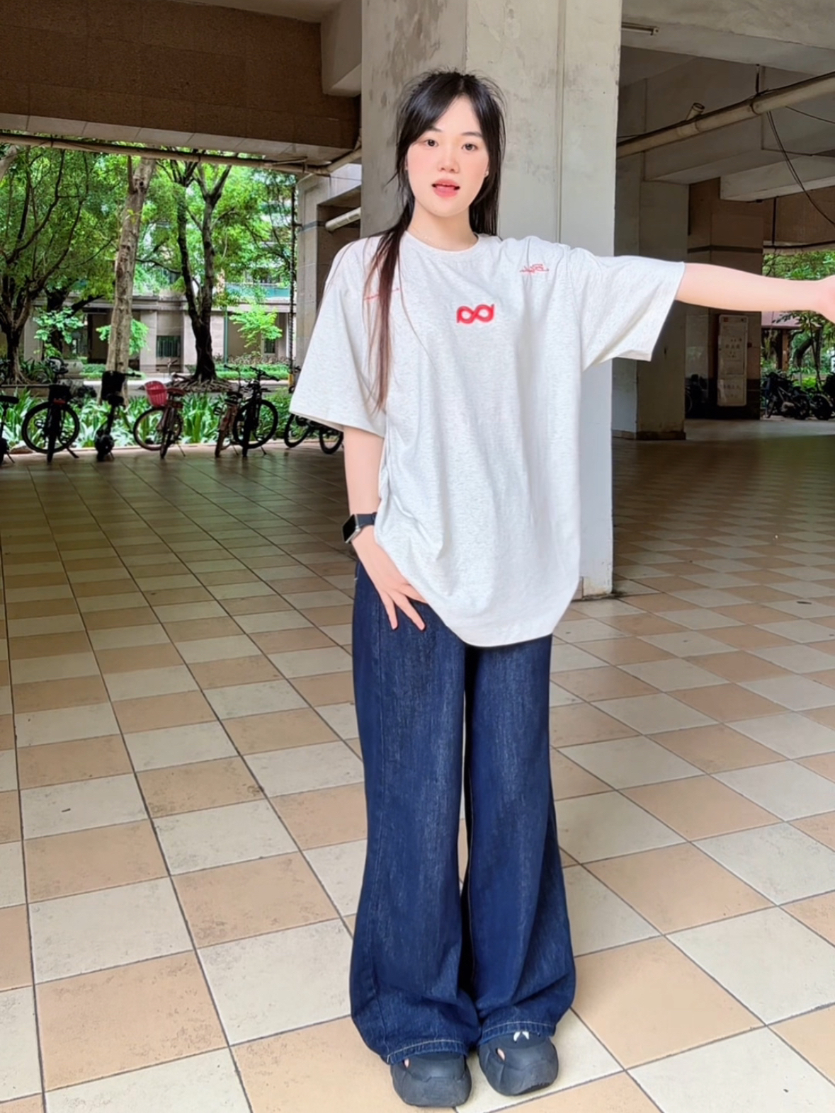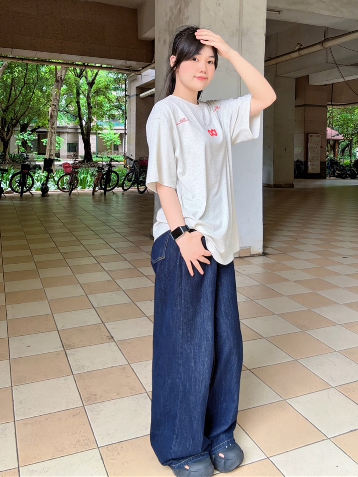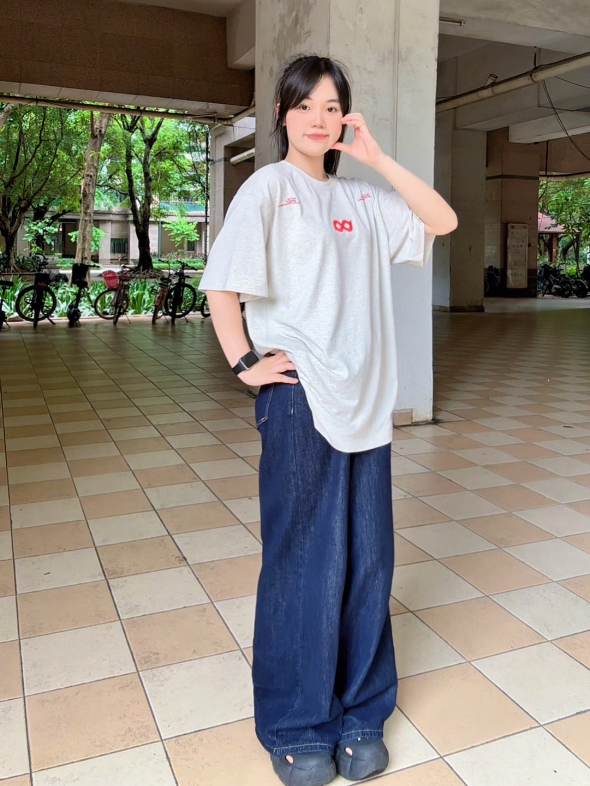 👋姐妹们,今日份ootd是灰色T恤➕深蓝的阔腿牛仔裤 突发奇想半扎 搭配还挺温柔的🥰 📝感觉衣柜里的黑白灰最多了 这件花灰色T恤也是最近心头爱 一拿到手就感觉到了它的质感 是💯纯棉的面料 穿上身柔软又亲肤 关键是刺绣logo设计很简约时尚,夏天我最怕的就是衣服闷热不透气 但这件就不会 透气性没得说✨版型很正呀 不会显胖 宝宝们真的不要错过它❗️ 🍟子碎碎念:赶紧安排上这件好看又好穿的T恤吧 一起做...