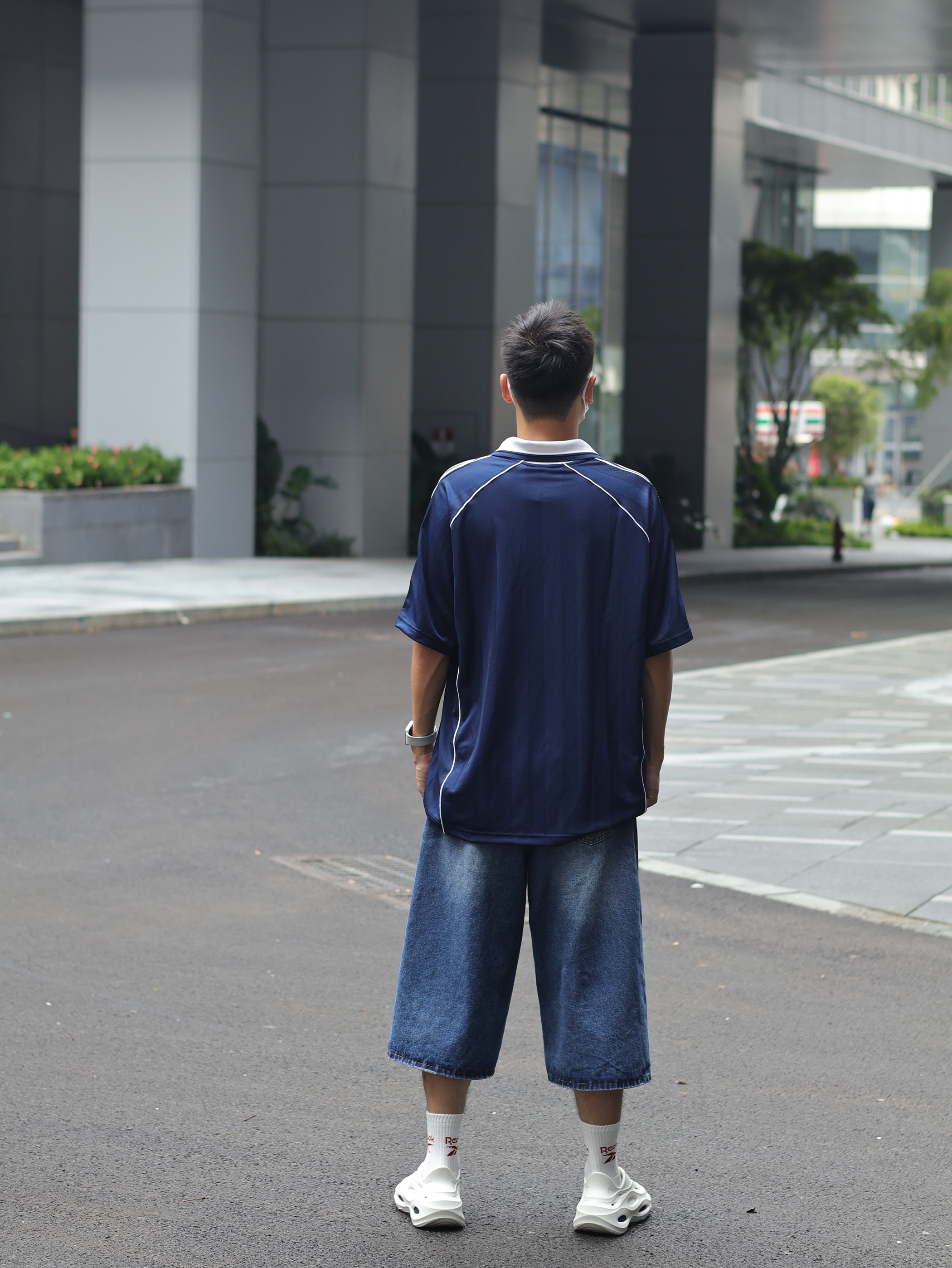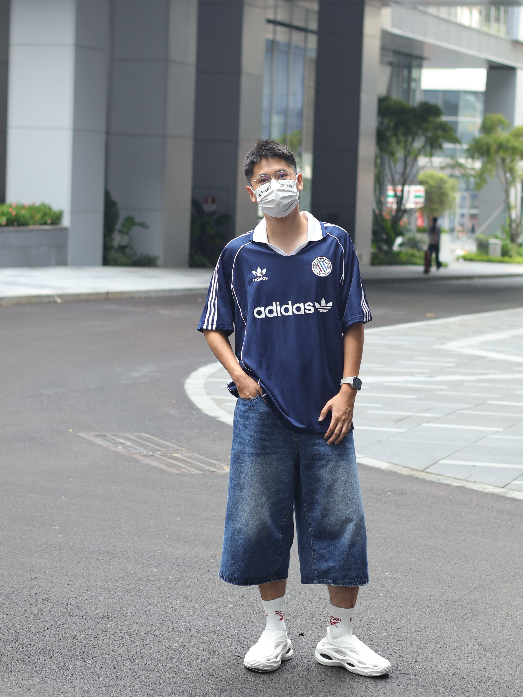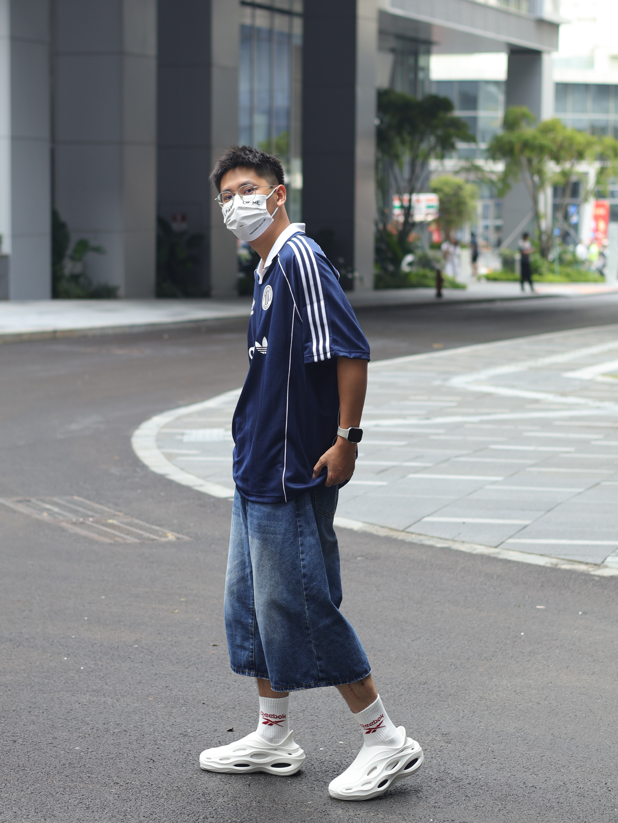 Hi 大家好,这里是Ivan的穿搭分享~ 趁着台风的空隙,今天难得松弛一下 出门就穿这套溜弯吧 👕上衣来一件王安宇同款的阿迪足球衫 🩳裤子搭配同色系牛仔中裤 👟上脚一双白袜搭配白色洞洞鞋,夏天必备呀