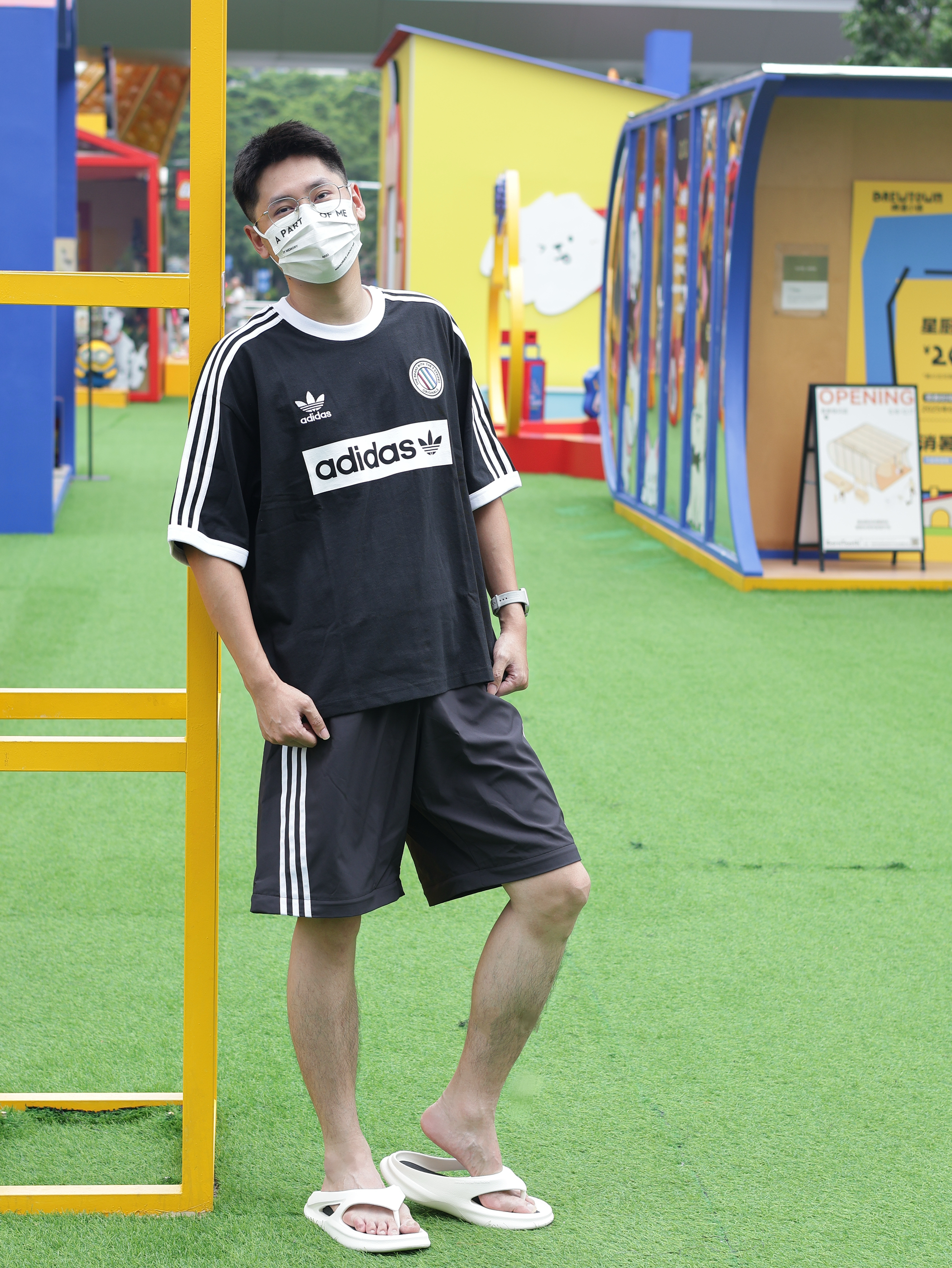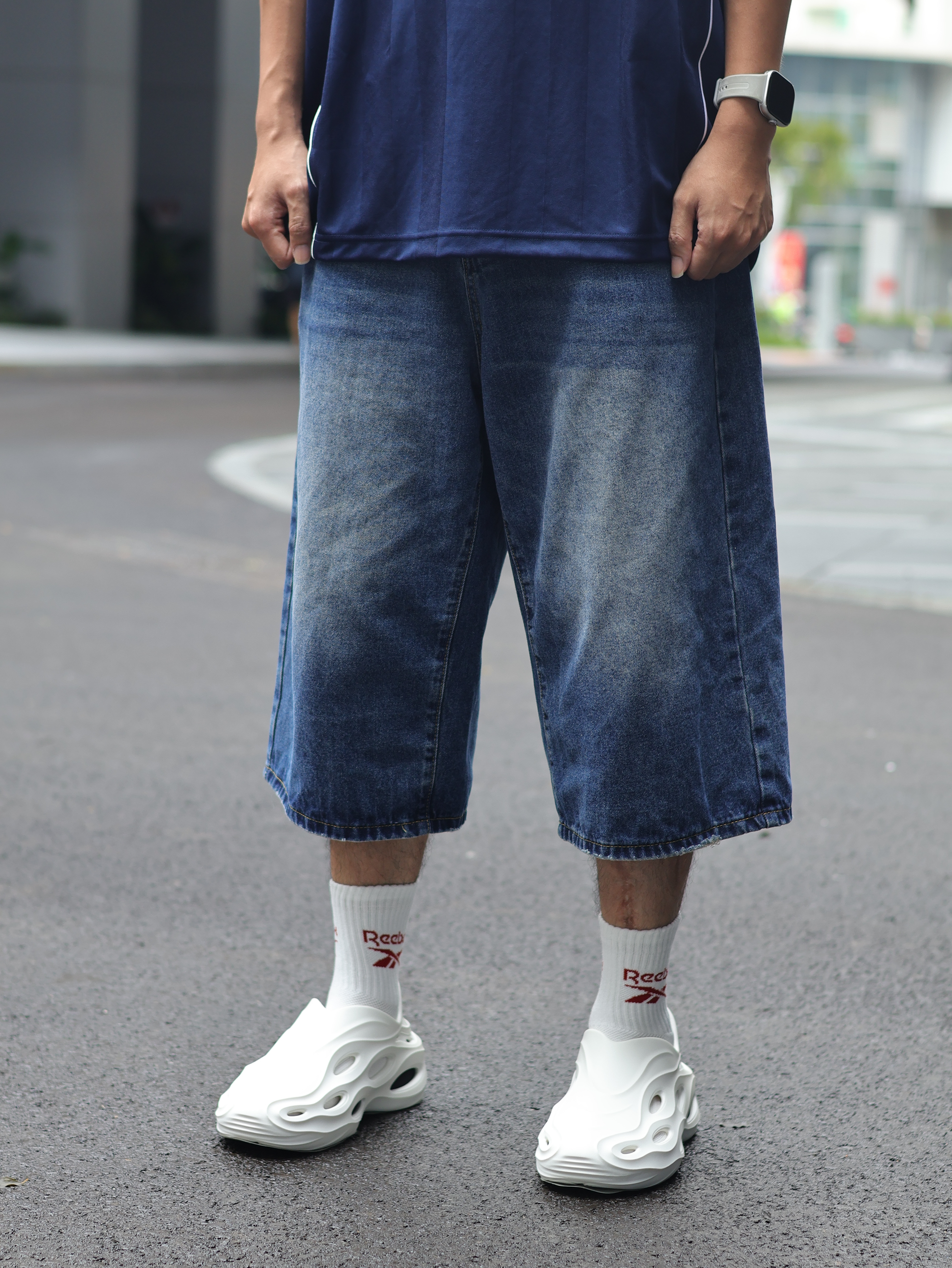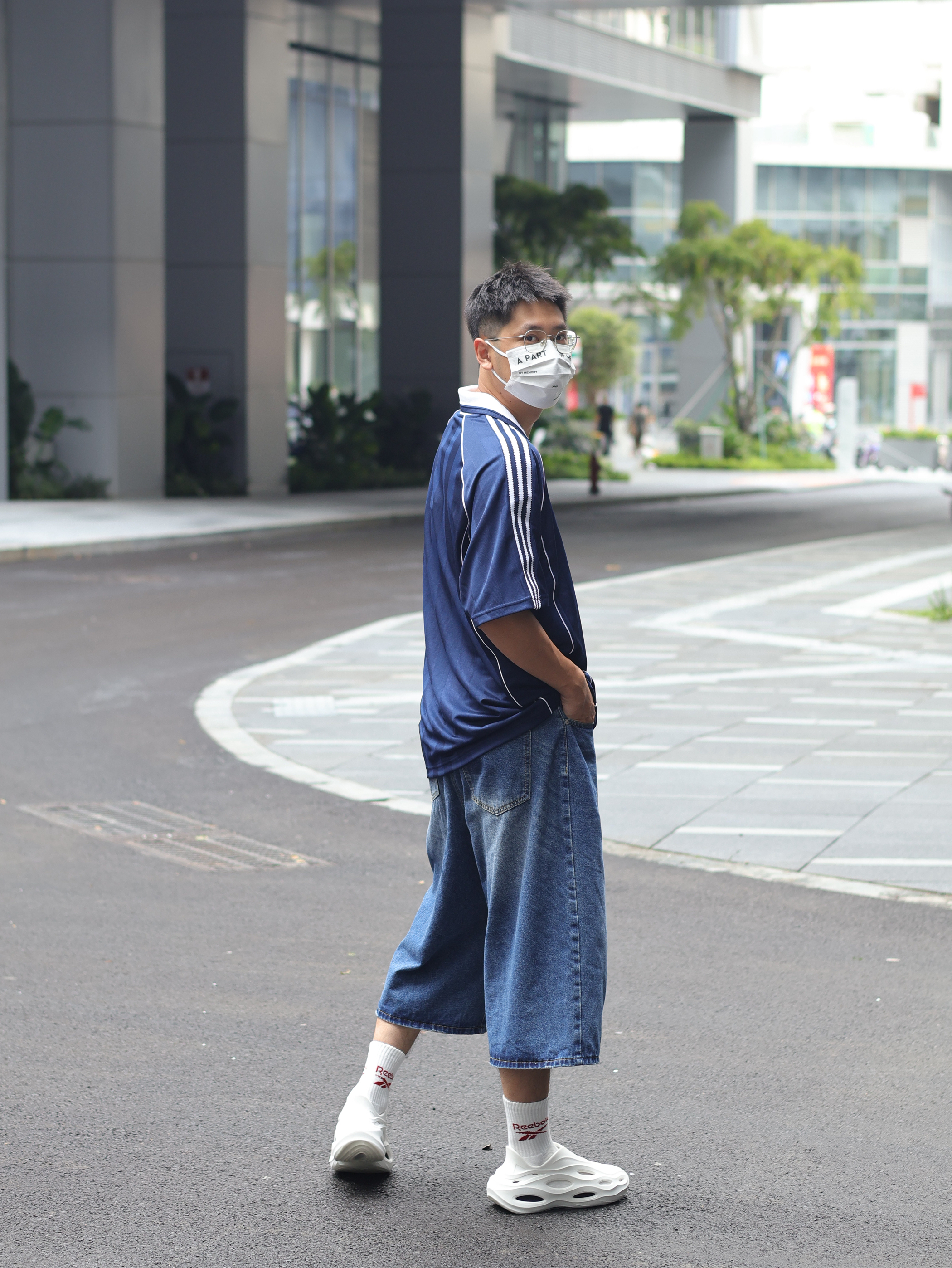 Hi 大家好,这里是Ivan的穿搭分享~ 趁着台风的空隙,今天难得松弛一下 出门就穿这套溜弯吧 👕上衣来一件王安宇同款的阿迪足球衫 🩳裤子搭配同色系牛仔中裤 👟上脚一双白袜搭配白色洞洞鞋,夏天必备呀