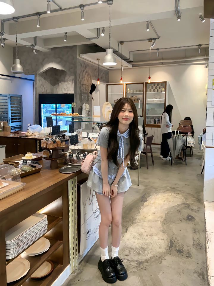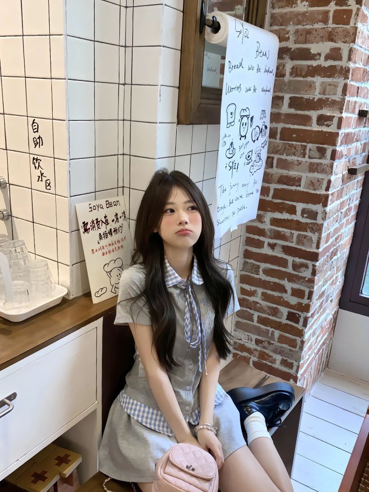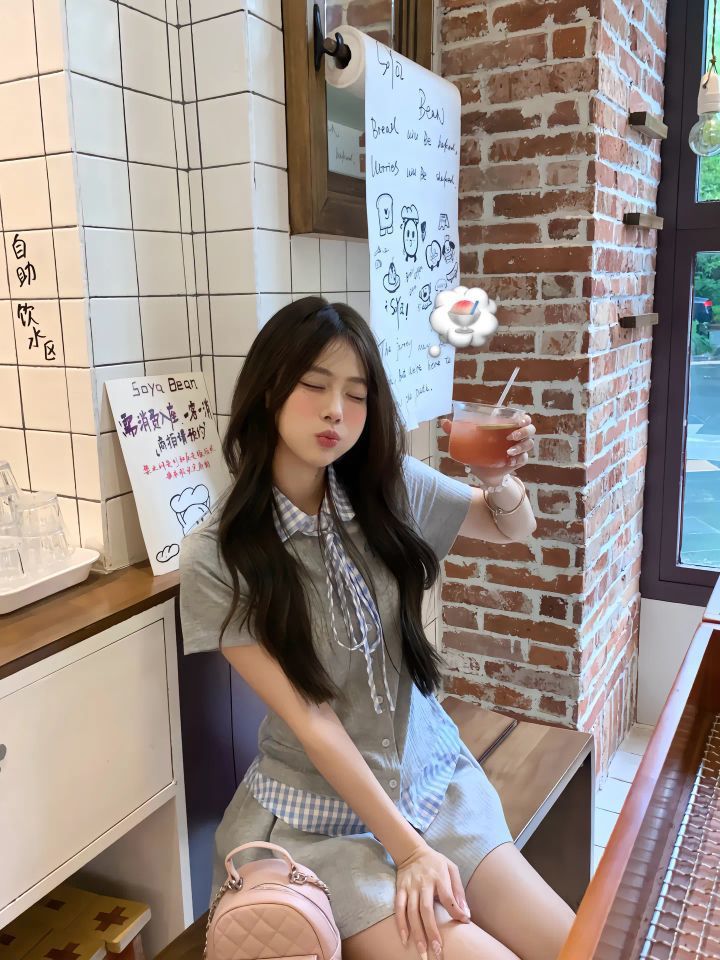 宝子们,谁能拒绝这套韩里韩气的穿搭呀!走进咖啡店,直接化身韩剧里的温柔学妹,氛围感拉满💘 👚上衣:细节控的心头好 浅灰色短袖自带清冷感,格纹领结设计是点睛之笔,给整体增添了几分俏皮与精致。面料柔软亲肤,夏天穿一点都不闷热,贴身穿舒适度满分。短袖的版型宽松又不失利落,能够很好地修饰身形,无论什么身材都能轻松驾驭,而且还带着一股随性的慵懒感 。 👗下装:甜酷风的完美诠释 搭配的浅灰色短...