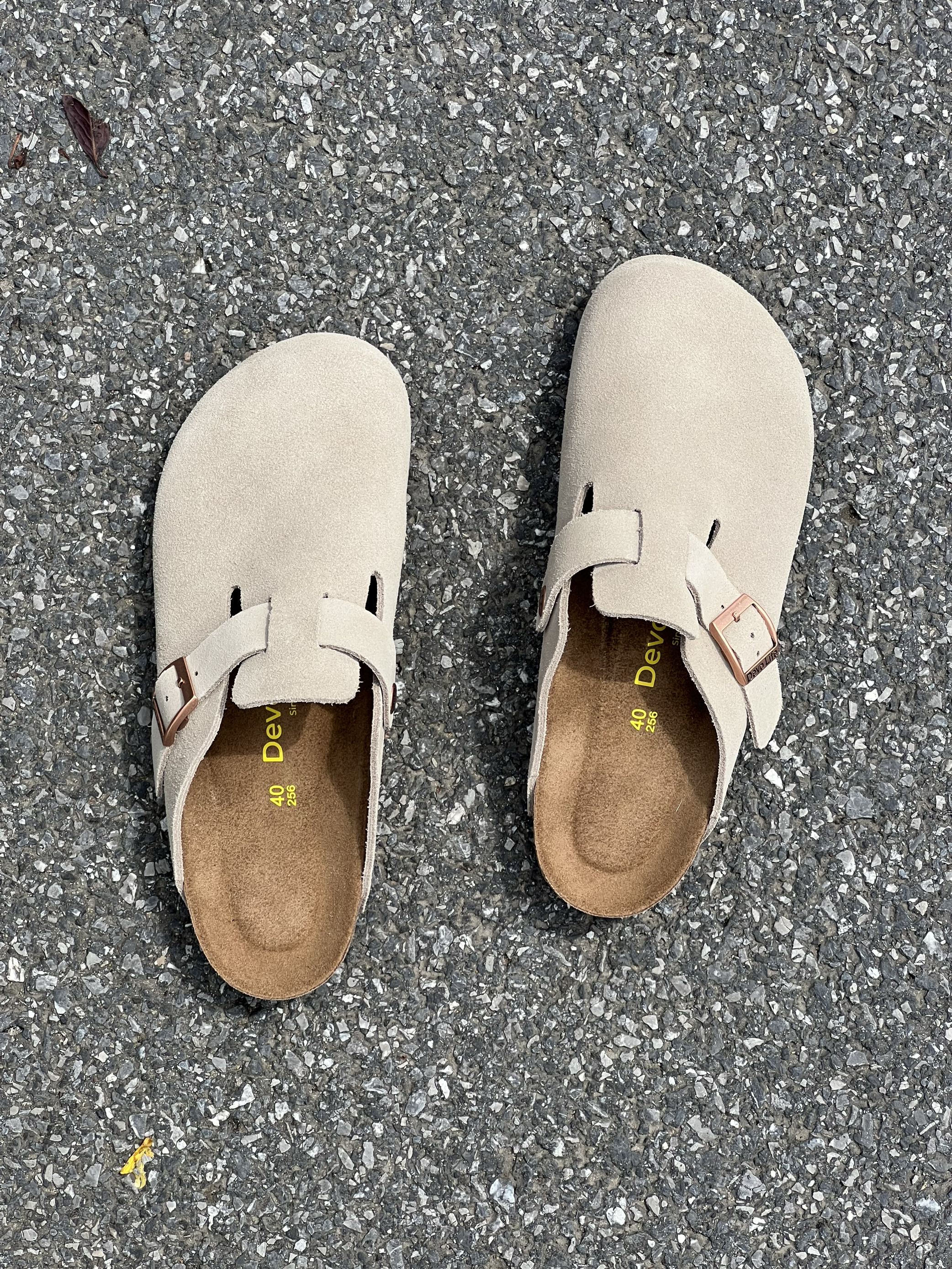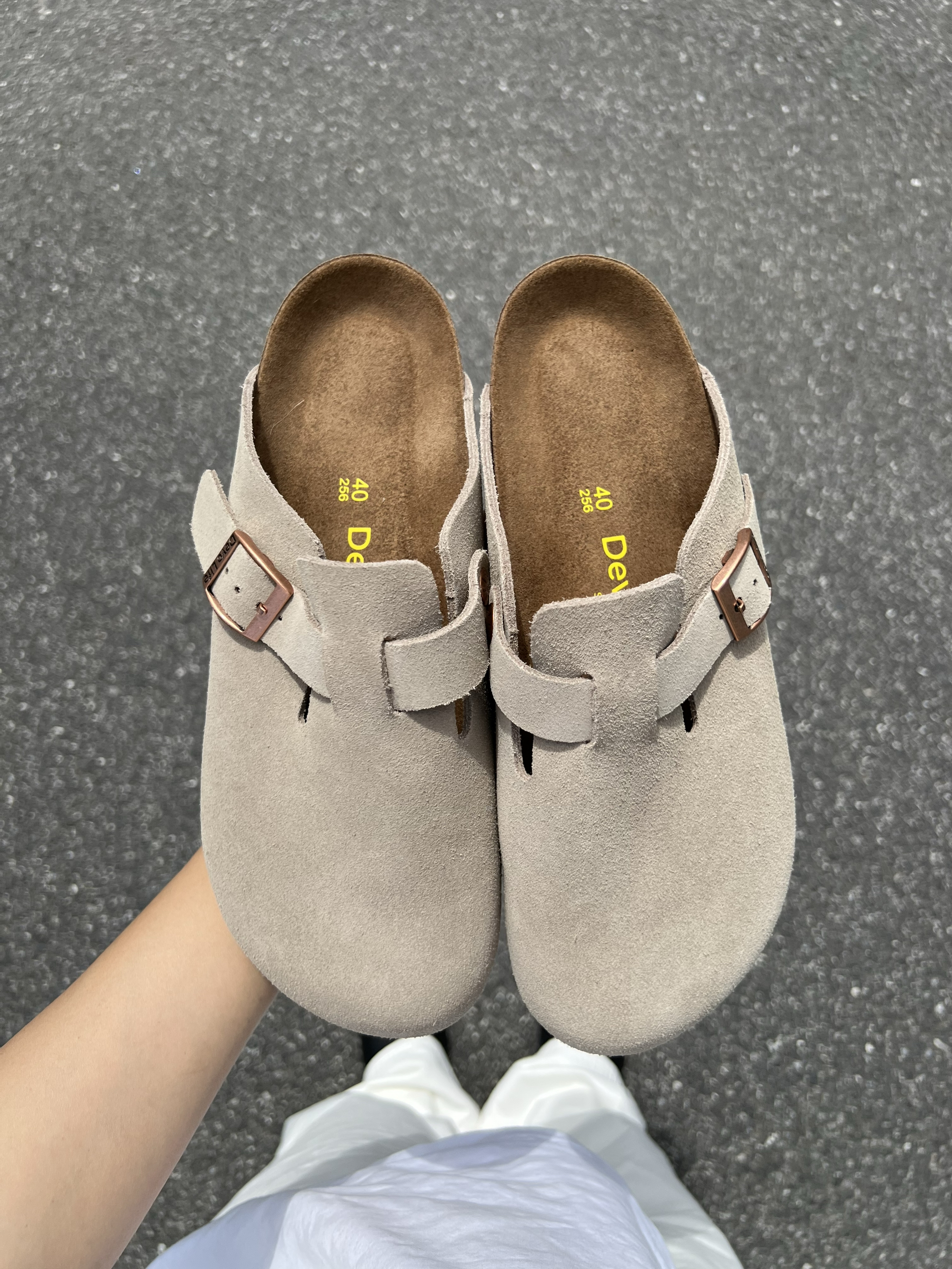 本篇笔记关联了Devo/的沃 软木 复古法式绒面 包头 外穿 磨砂皮 反绒皮 一脚蹬 半拖鞋 灰色等商品,为用户提供真实的使用体验和购买参考。