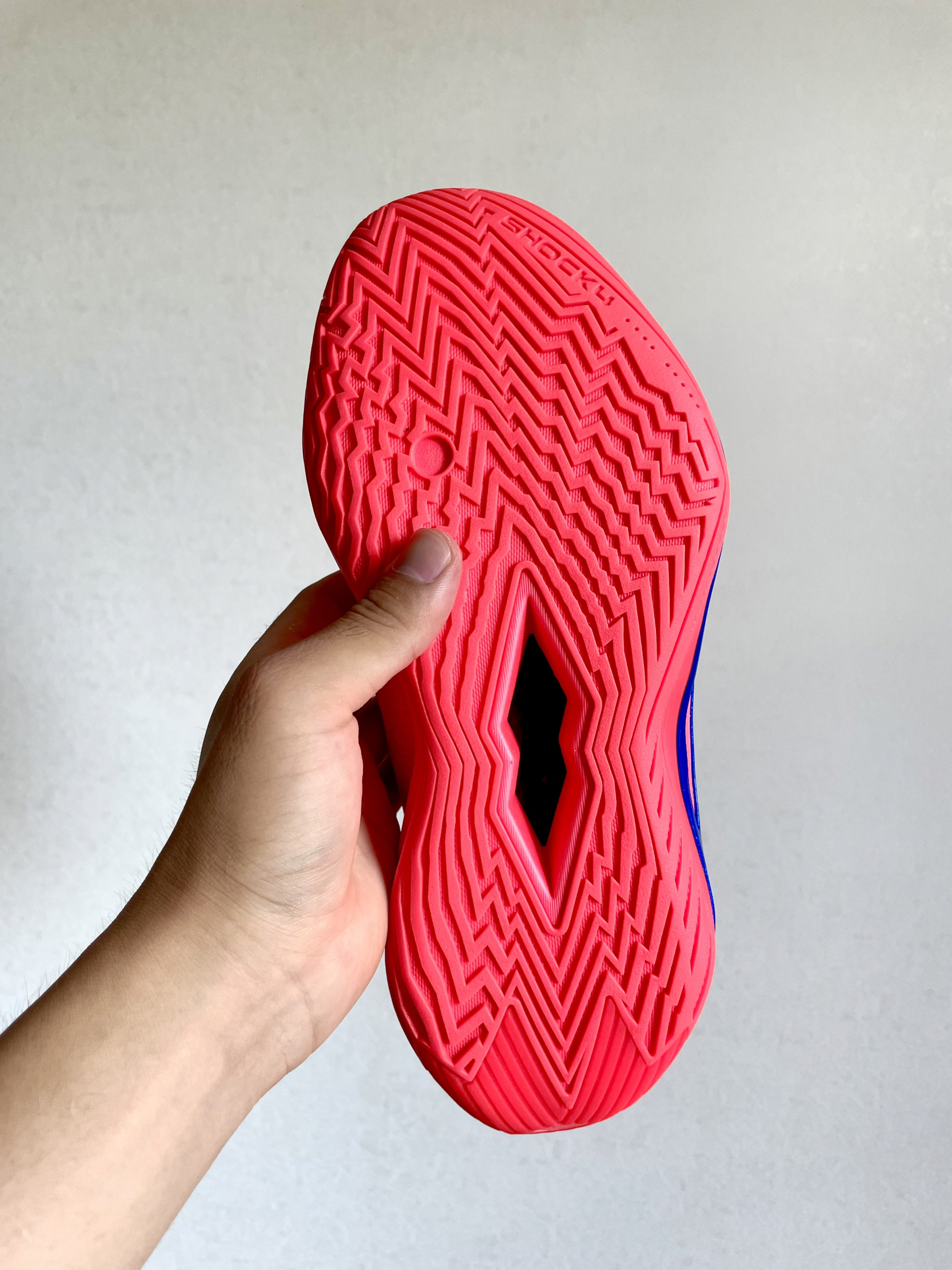 上脚瞬间被包裹住,前掌软弹后跟稳,跑全场不顶脚。上周比赛是在塑胶场上,急停吱吱响,抓地稳得像钉在场上!跳投落地稳,后跟软弹。穿着俩月了,鞋底纹路还深着,水泥地扛造。