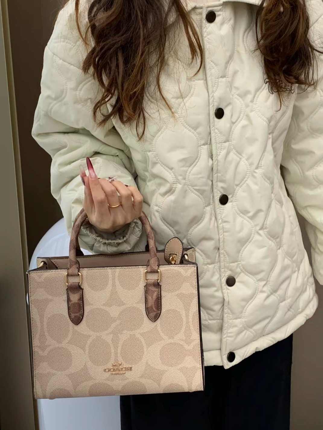本篇笔记关联了Coach Rowan 18 小号 涂层经典老花印花拉链开合PVC拼皮单肩斜挎手提包 奶茶拼白等商品,为用户提供真实的使用体验和购买参考。