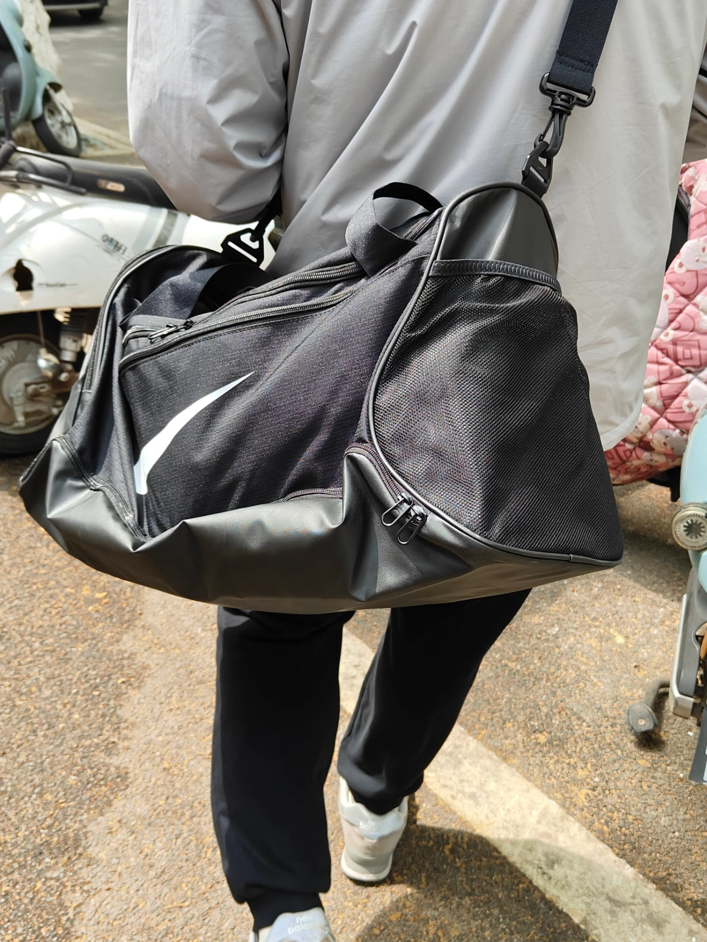 🌟被健身搭子种草的耐克Brasilia包真的绝!之前的包总装不下瑜伽垫和运动鞋,这个大容量款直接解决痛点。 🌟实测能塞下瑜伽垫、两套换洗衣物、运动鞋、水杯和洗漱包,分层设计超贴心,干湿分离袋放汗湿衣服不串味。 🌟单肩、斜挎、手提三种背法切换自如,健身完直接背着去约会也不违和。黑色耐脏又百搭,大Logo低调有质感。