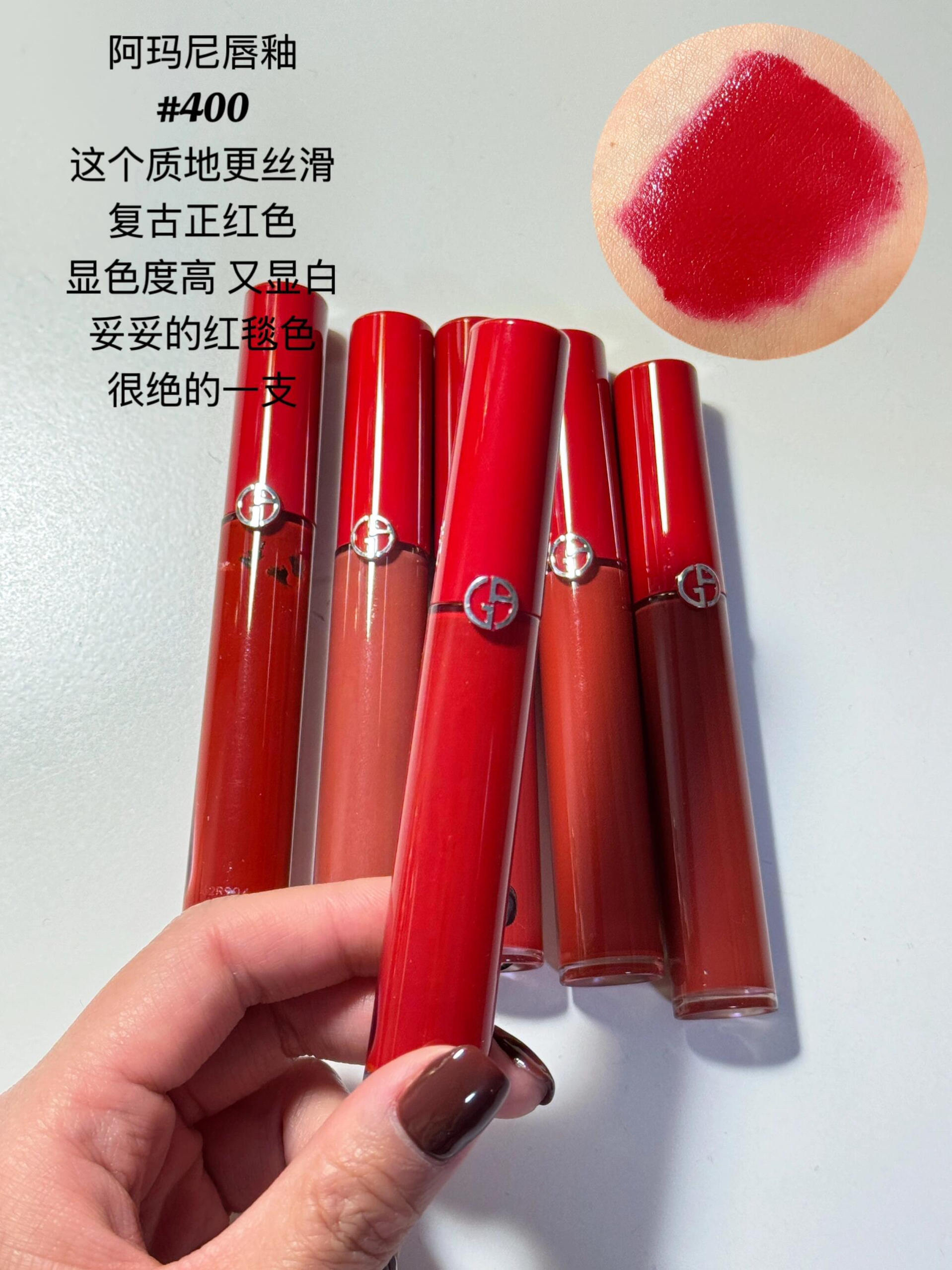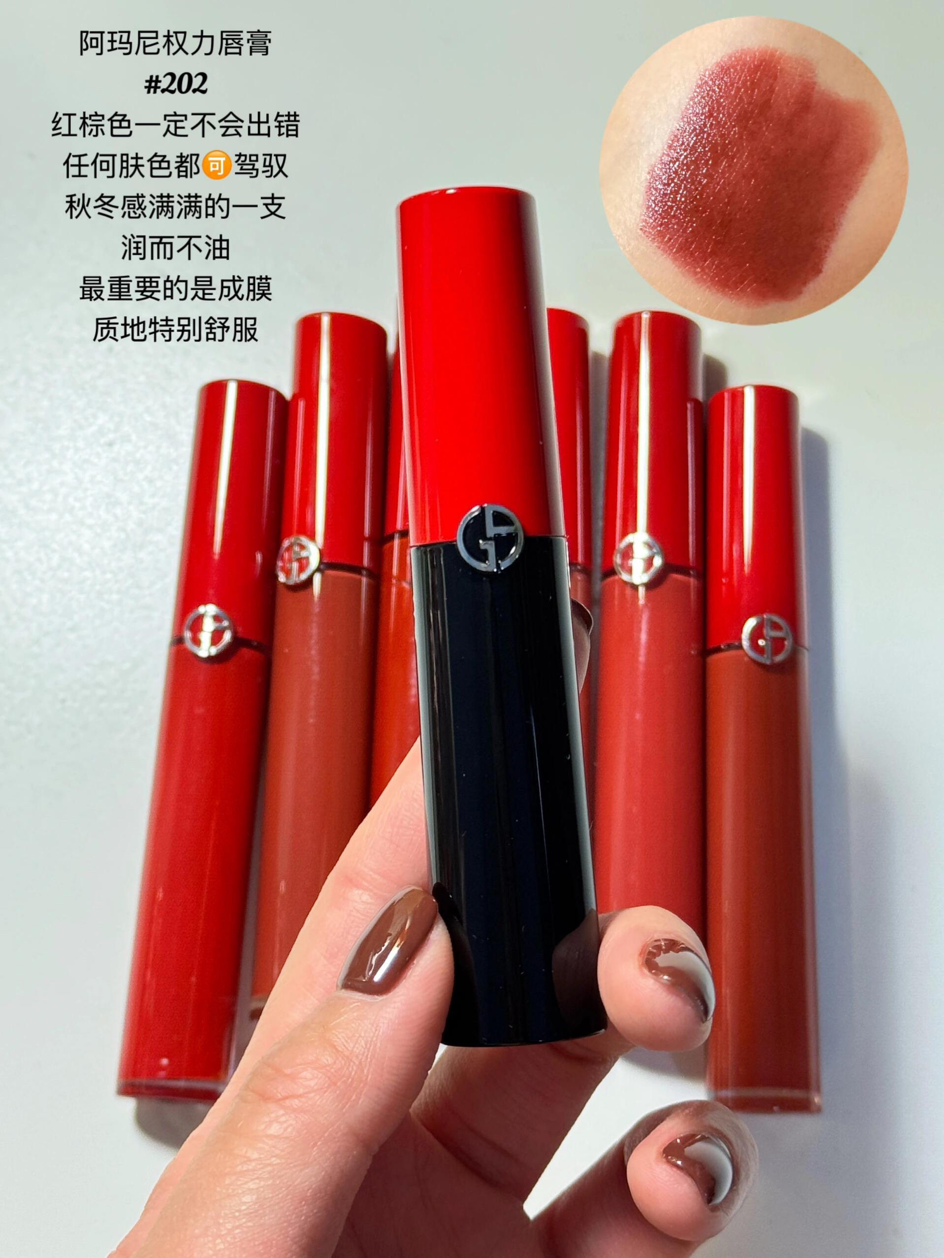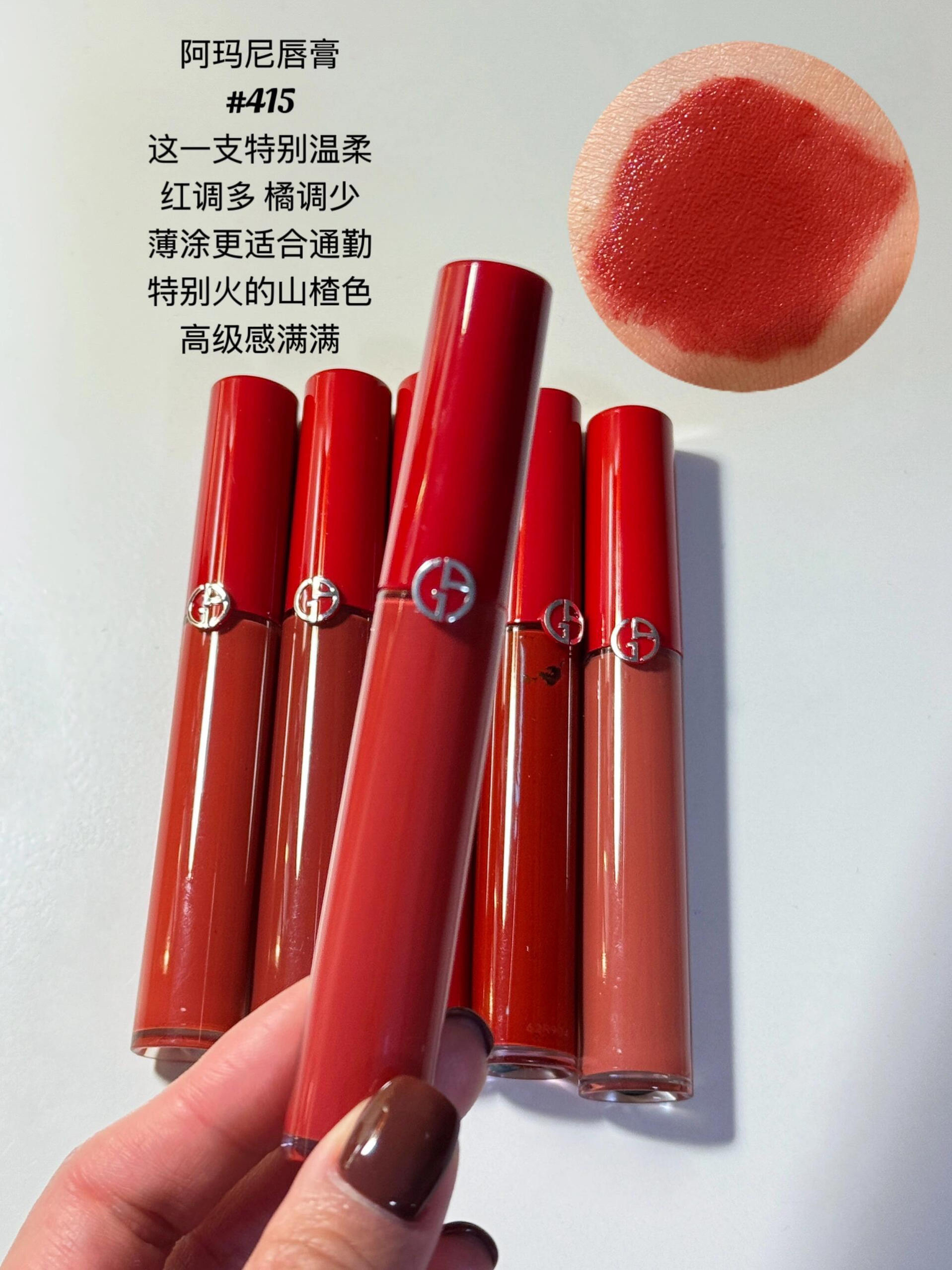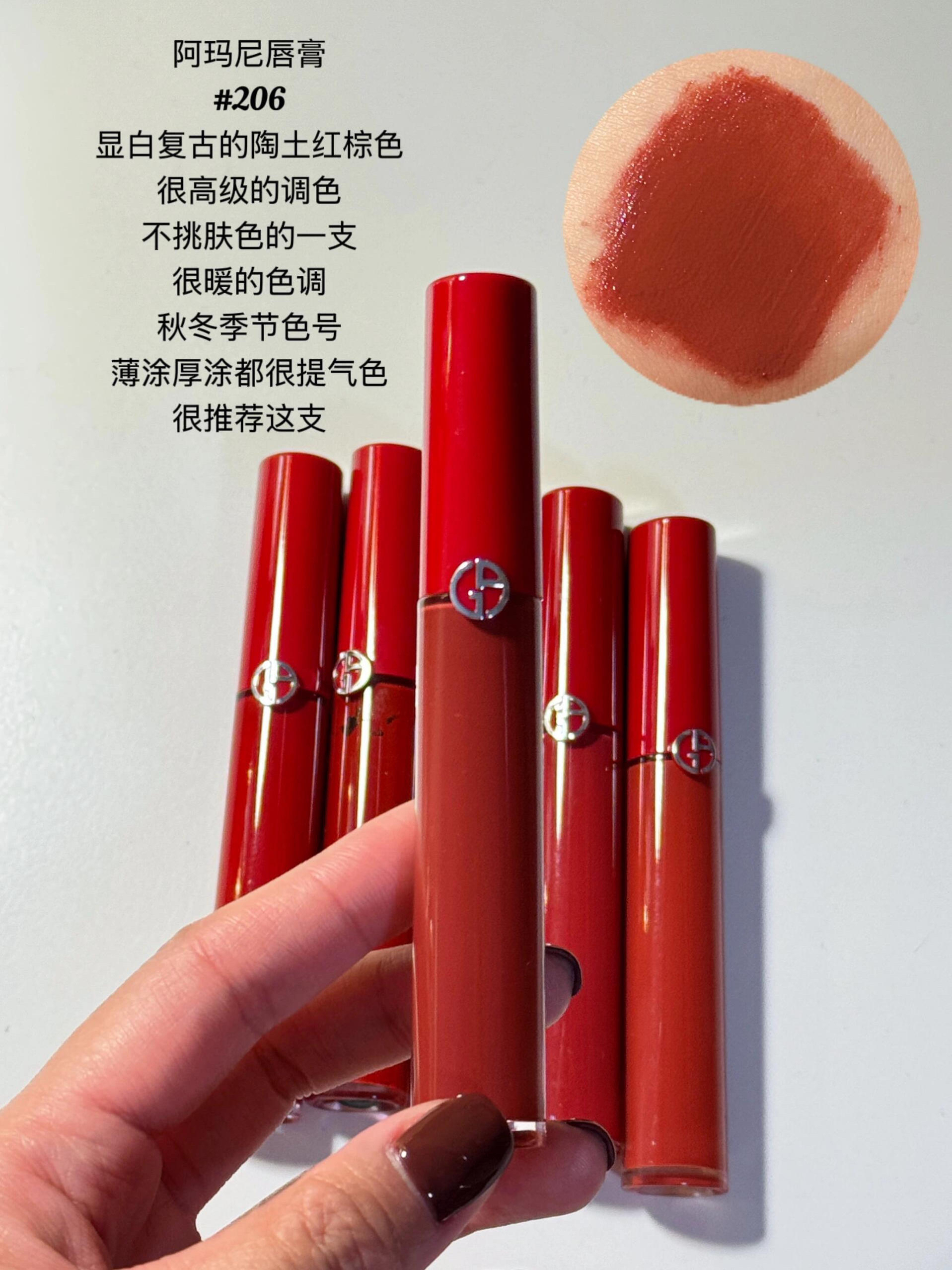 本篇笔记关联了GIORGIO ARMANI/阿玛尼 红管系列臻致唇釉 柔雾丝绒哑光显白雾面 6.5ml 206陶土红棕CEDAB、GIORGIO ARMANI/阿玛尼 红管系列臻致唇釉 柔雾丝绒哑光显白雾面 6.5ml 415山楂红REDWOOD、GIORGIO ARMANI/阿玛尼 红管系列臻致唇釉 柔雾丝绒哑光显白雾面 6.5ml 400阿玛尼红THE RED等商品,为用户提供真实的使用体验和购买参考。