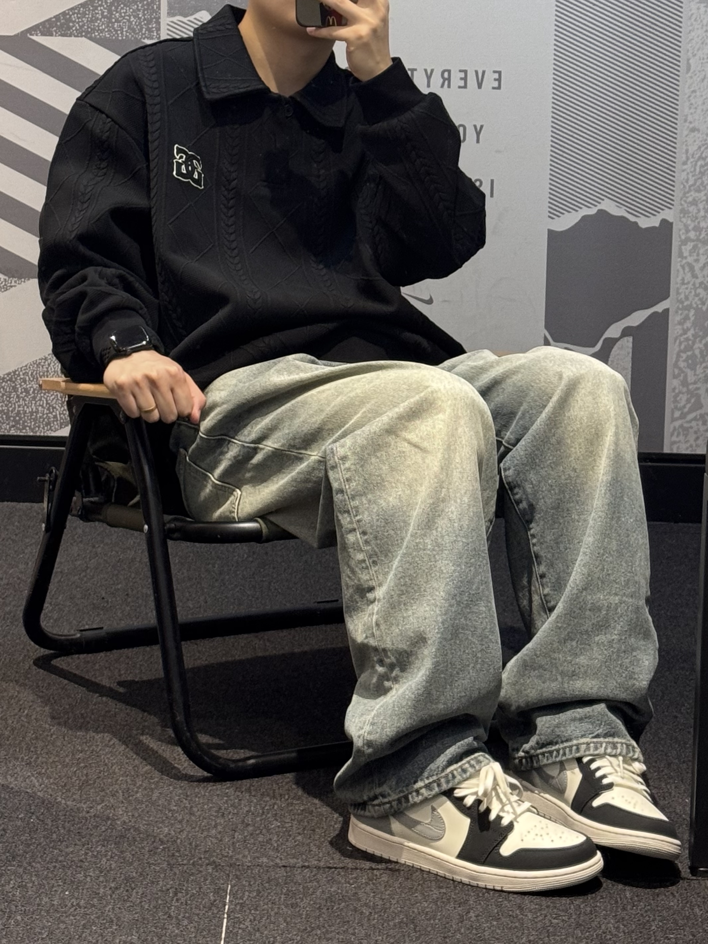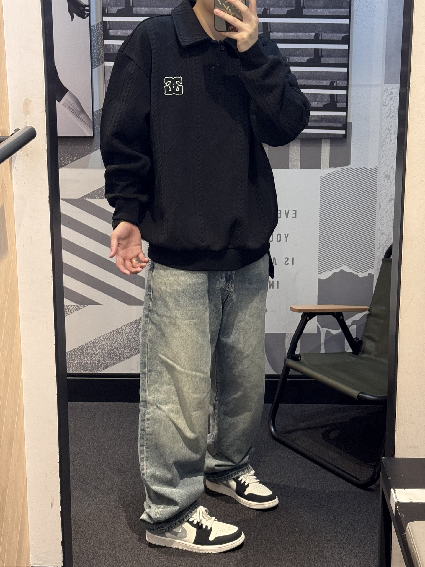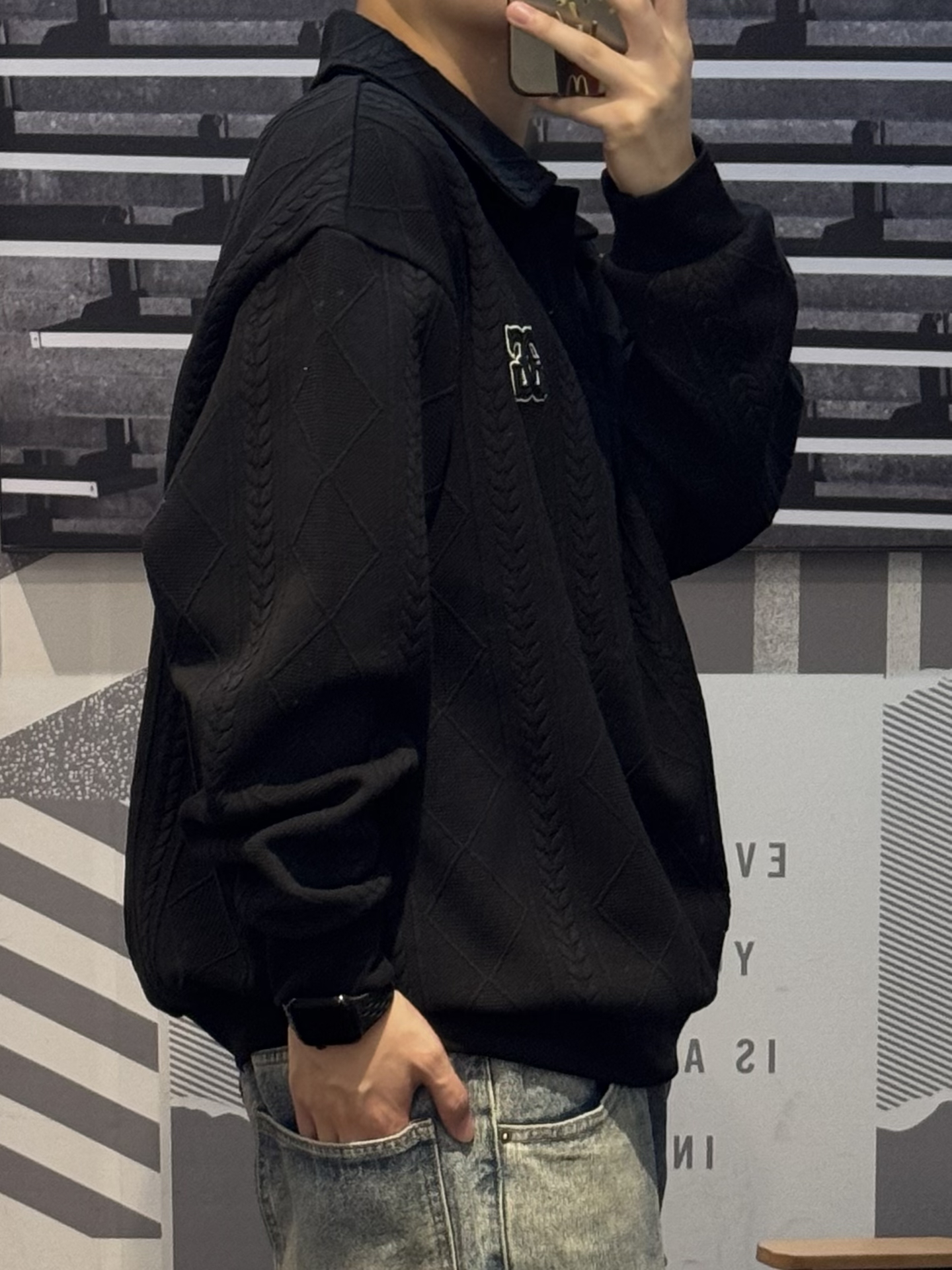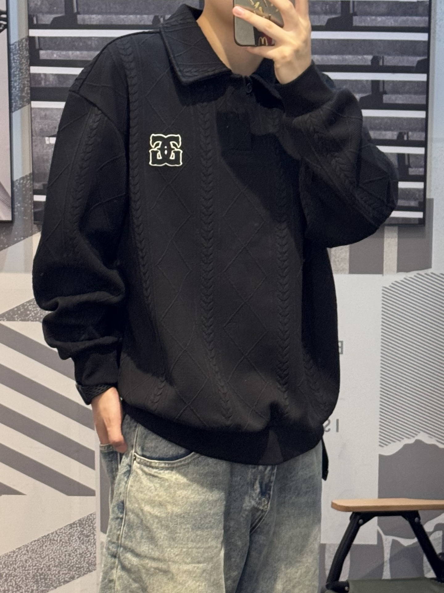 已经在狠狠地期待秋天了🍂 今天分享一件polo卫衣 黑色上身酷酷的 暗花纹理 自带层级感~ 落肩宽松版型 完全不挑身材 谁穿都好看😌 上身嘎嘎显瘦 内搭一件白色T恤更干净 搭配牛仔裤➕同色系aj 轻松get清爽男友穿搭🖤 #上班穿GXG刚刚好 #剪吊牌最快的一次 #酷暑穿搭不重样 #夏日gymfit #热夏必备通勤装