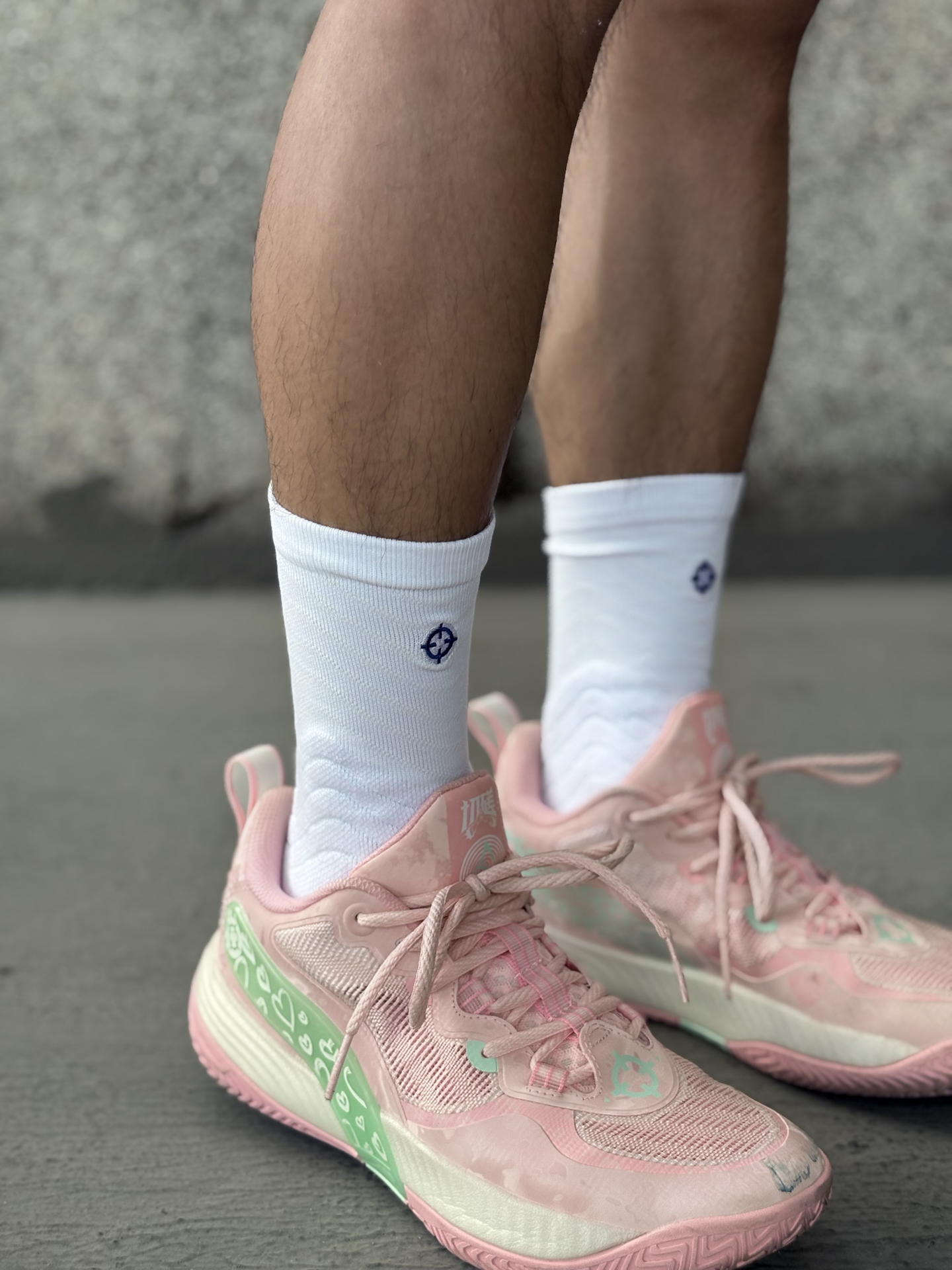 今天给大家分享这款 #准者 RIGORER 波杰同款实战篮球袜,前面是一个准者logo,后跟处做了一个波杰的logo,细节感满满! 正双篮球袜是毛巾底的材质,穿起来感觉还是比较舒服的,而且透气性也是比较在线,夏天穿也不会因为闷热而臭烘烘的,性价比还是非常高的! 👟 准者 切磋2