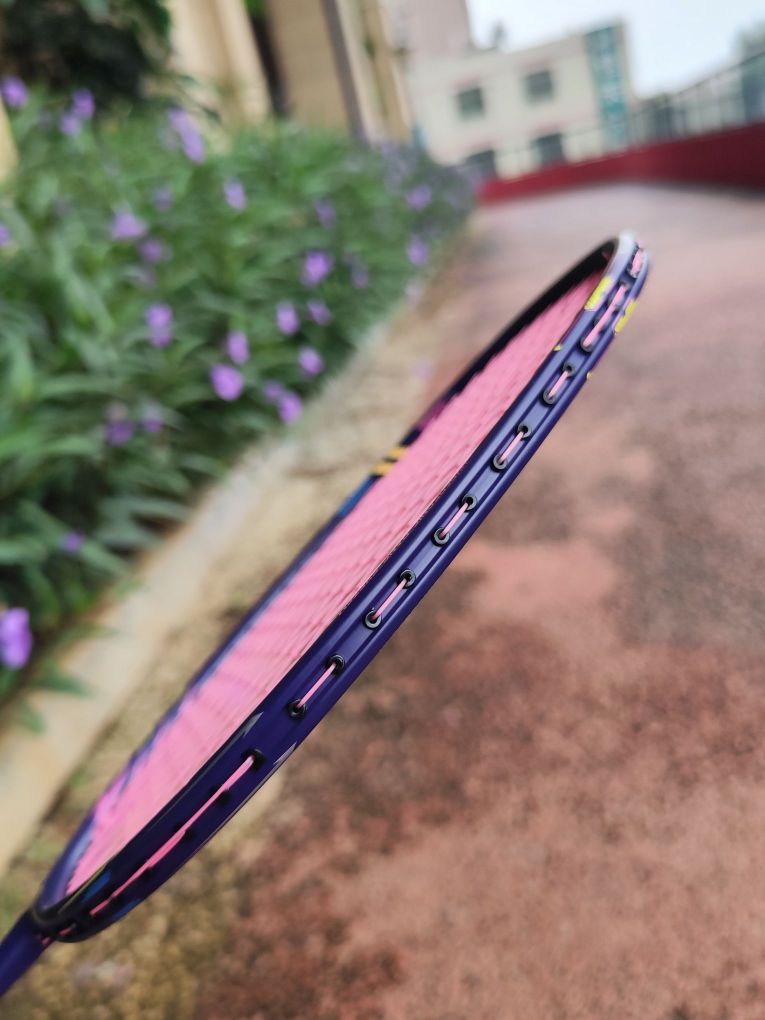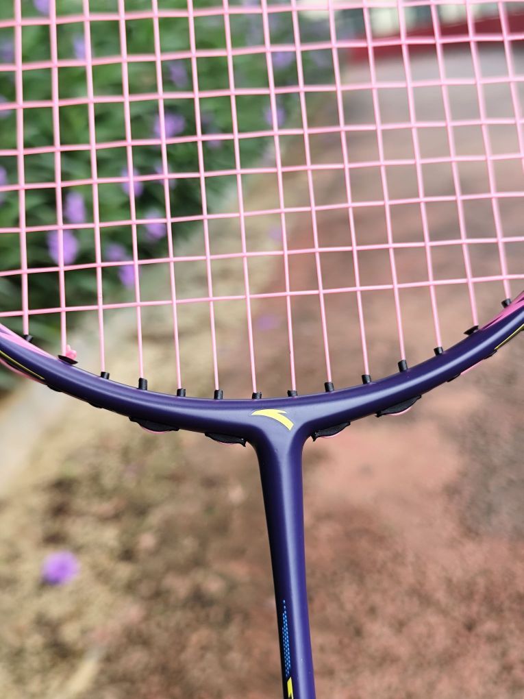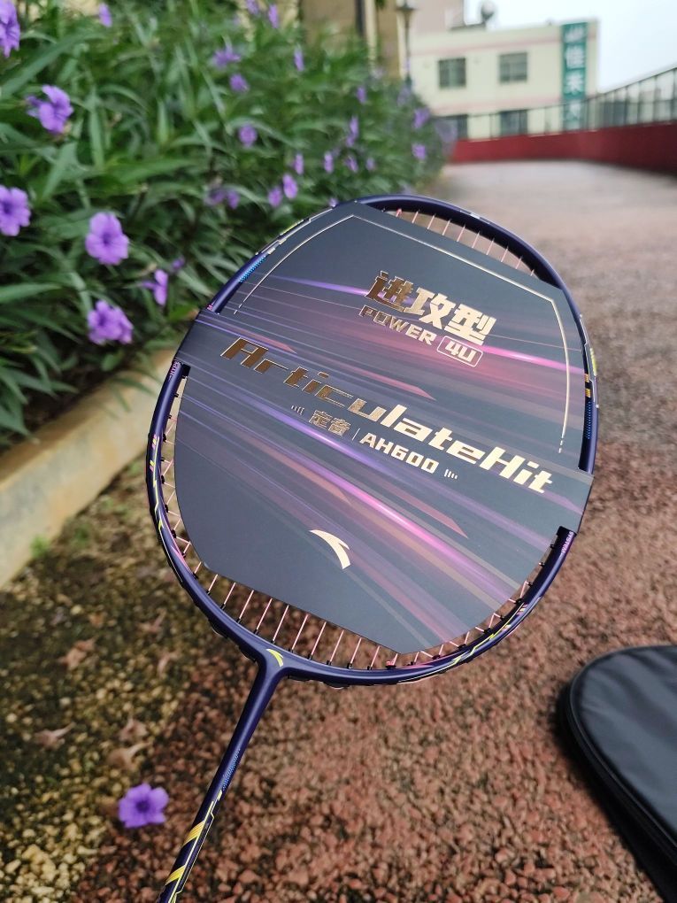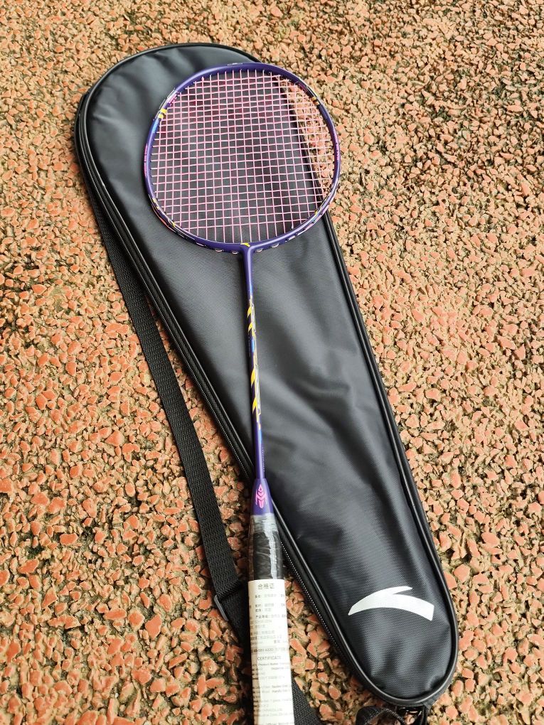 新入手的安踏 定音AH600 羽毛球拍到了,开箱就被惊艳! 球拍的颜值高,而且满满的科技感! 拍子拿起来手感特别好,很轻。 挥拍试了一下,高弹性碳纤维中杆,回弹速度快,很适合连续进攻! 球拍设计了76孔穿线,线格均匀,打感更好,而且扩大甜区设计,可以提高击球容错率。 准备去球场体验一下!