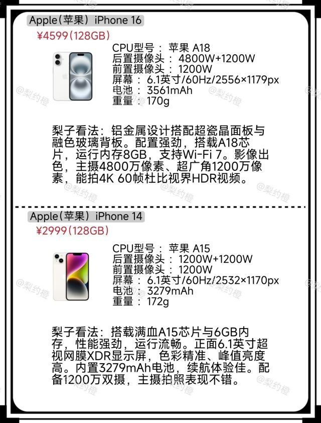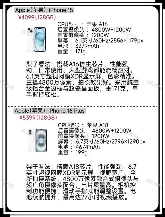 本篇笔记关联了Apple/苹果 iPhone 14 5G手机 护眼 双卡双待 星光色、Apple/苹果 iPhone 15 5G 手机双卡双待全网通 蓝色、Apple/苹果 iPhone 15 Plus 5G 手机 双卡双待 全网通 黑色等商品,为用户提供真实的使用体验和购买参考。