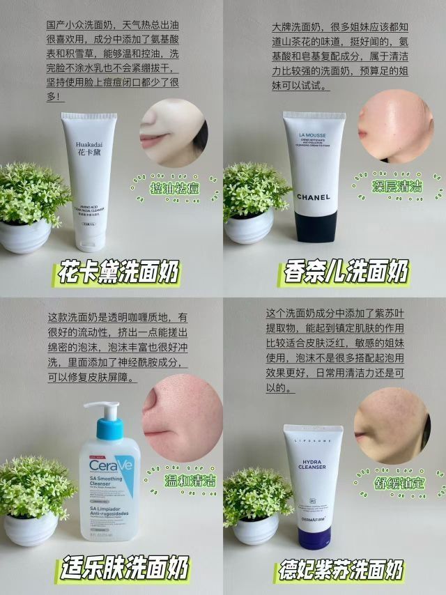 本篇笔记关联了Chanel/香奈儿 山茶花泡沫洁面乳 柔和净肤润泽三合一 【旧版】深层清洁、DERMAFIRM/德妃 紫苏保湿洁面乳 深层清洁控油舒缓补水温和祛痘洗卸合一 2.0、CeraVe/适乐肤 水杨酸温和嫩肤泡沫洁面啫喱 清洁保湿控油祛痘去闭口去黑头去角质疏通毛孔油痘肌 【国产版】0.45%水杨酸等商品,为用户提供真实的使用体验和购买参考。