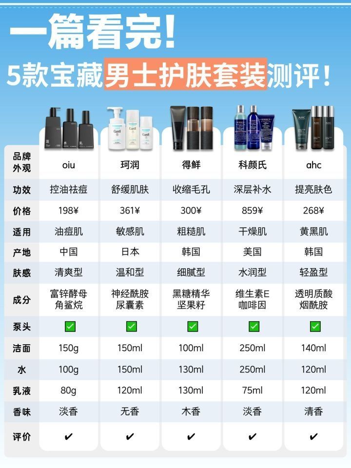 本篇笔记关联了OIU 男士护肤礼盒 控油祛痘 平衡水100ml+修润乳80g+净痘洁面150g、The saem/得鲜 男士矿物护肤套装 洁面霜100ml+护肤水130ml+护肤乳130ml、Curel/珂润 护肤套装 补水保湿柔和改善干燥 II号水150ml+乳120ml+洁颜泡沫150ml等商品,为用户提供真实的使用体验和购买参考。