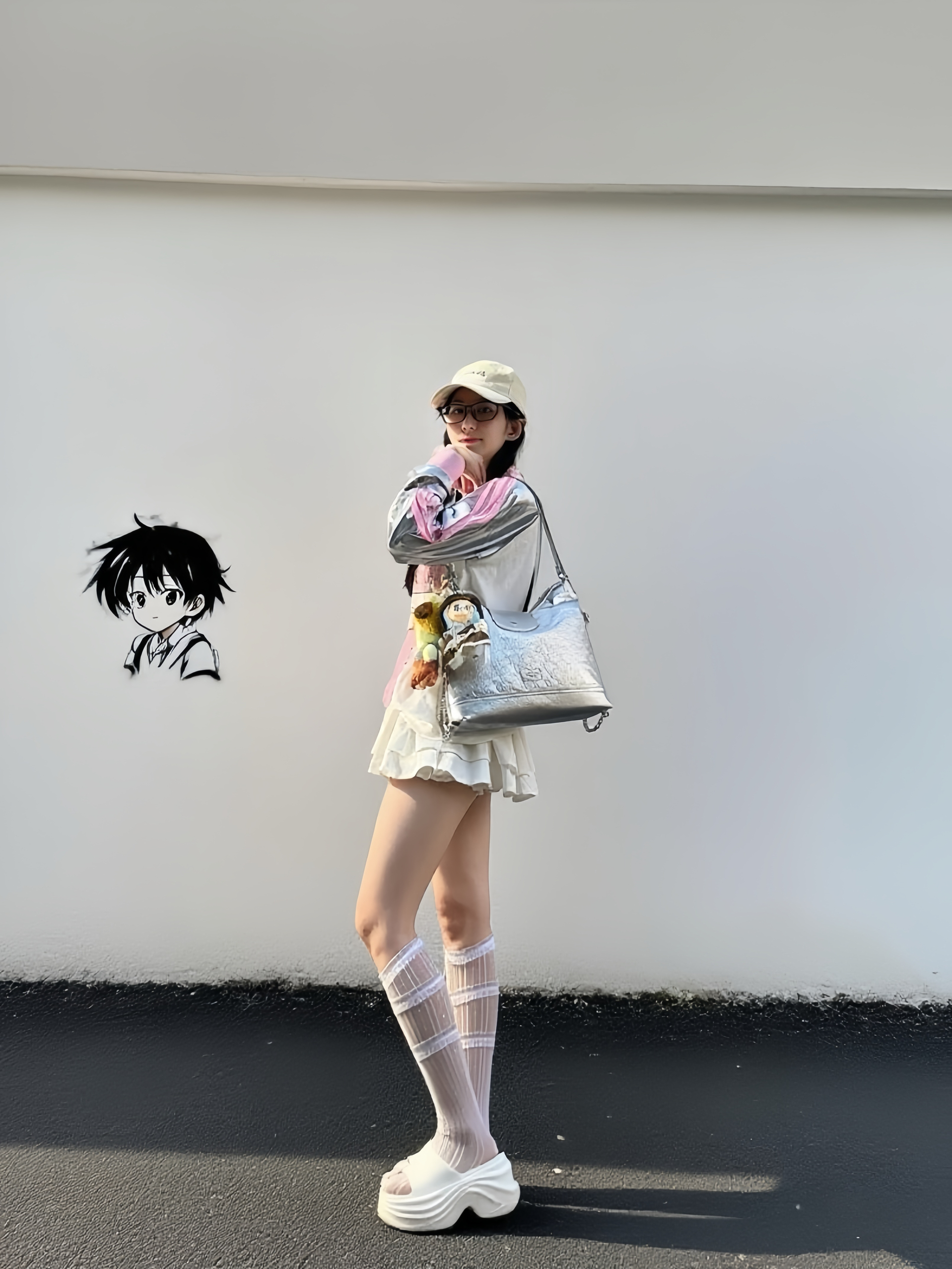 163cm 44kg 这款月光银包包也太戳我了吧✨ 浮雕满印设计自带潮酷气场,月光银调在阳光下还泛着细腻光泽,回头率绝啦💫 PU皮材质质感在线,摸起来顺滑又耐造,日常随便造都不心疼~🐈 最爱的是它既能斜挎又能双肩的双背法,通勤赶地铁单肩甩着走超利落,周末出游双肩背着解放双手,实用性直接拉满🎒 简约中藏着小心机,怎么背都好看呀🆕